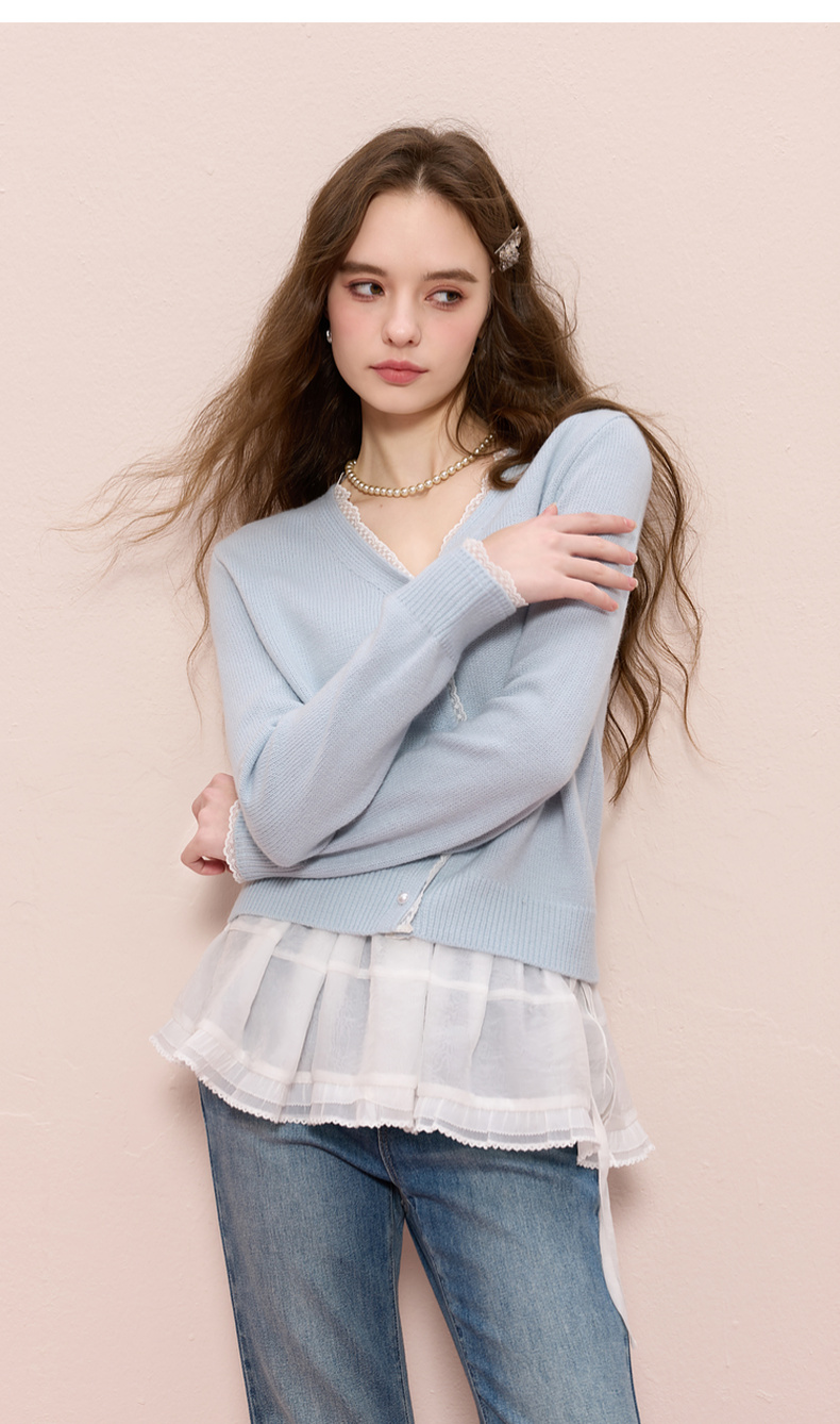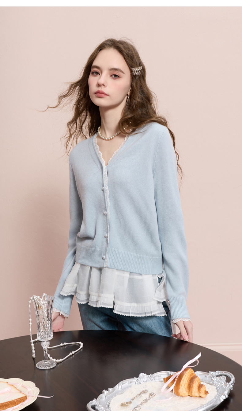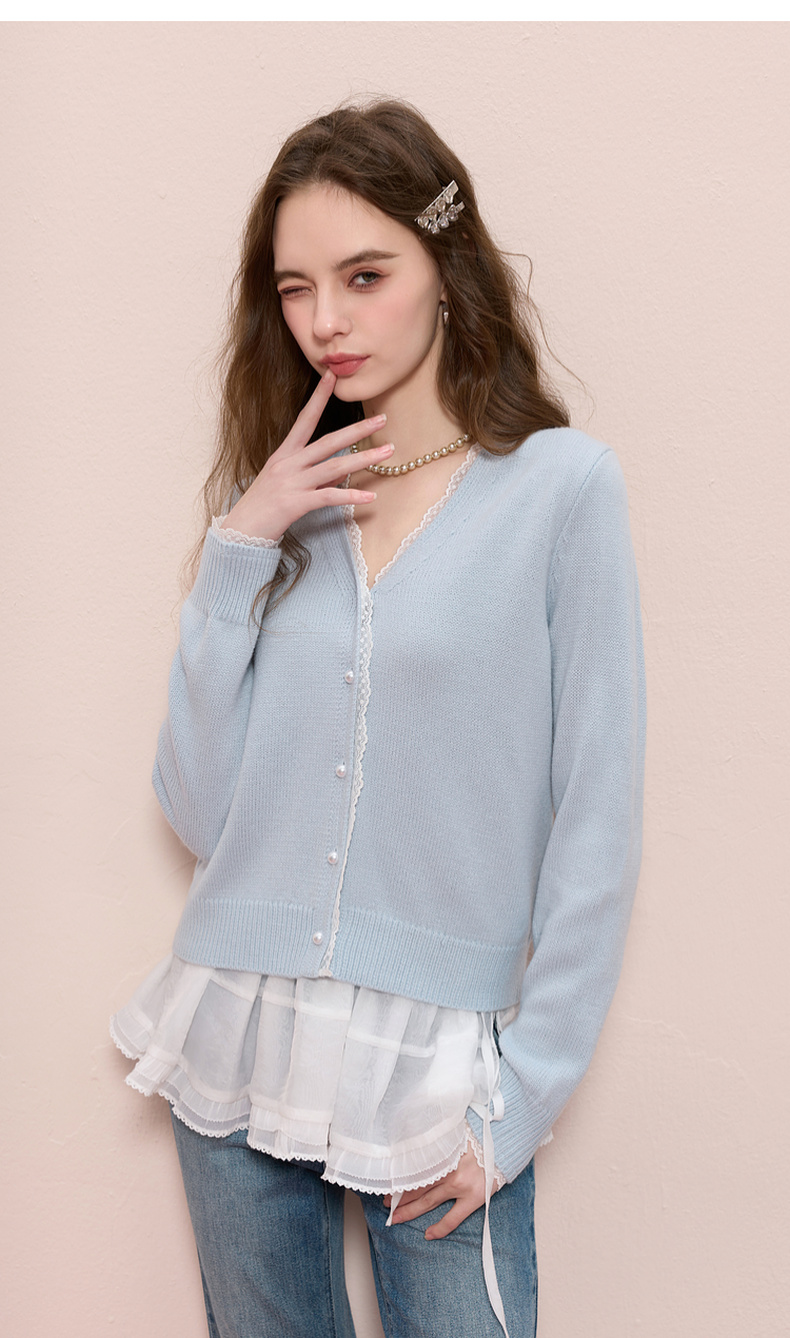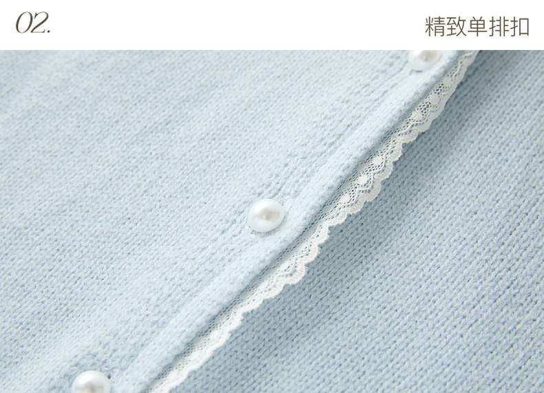 三彩2025冬季新款花边拼接针织衫V领毛衫开衫外套M