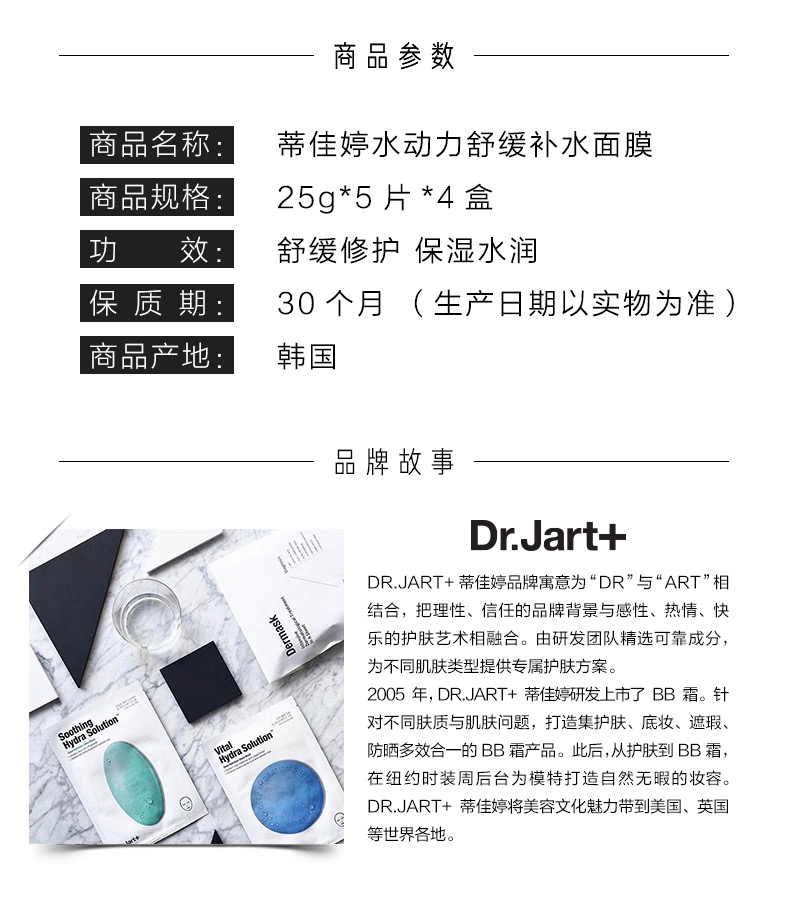 品名: Dr.Jart+蒂佳婷药丸面膜补水舒缓4盒蓝色/绿色保湿面膜贴