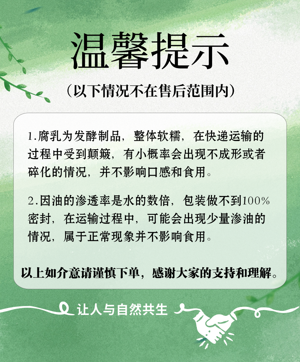 公平田野生态毛豆腐乳,采用有机原材料,两次发酵,黄山毛豆腐乳以有机大豆为原料,竹盐为辅料,借由黄山独特的地理单元和温润的气候经两次发酵而成。豆腐中的毛霉菌分泌蛋白酶,让植物蛋白降解小分子胨类、多肽和氨基酸。毛豆腐乳口感绵柔是佐餐之佳品。