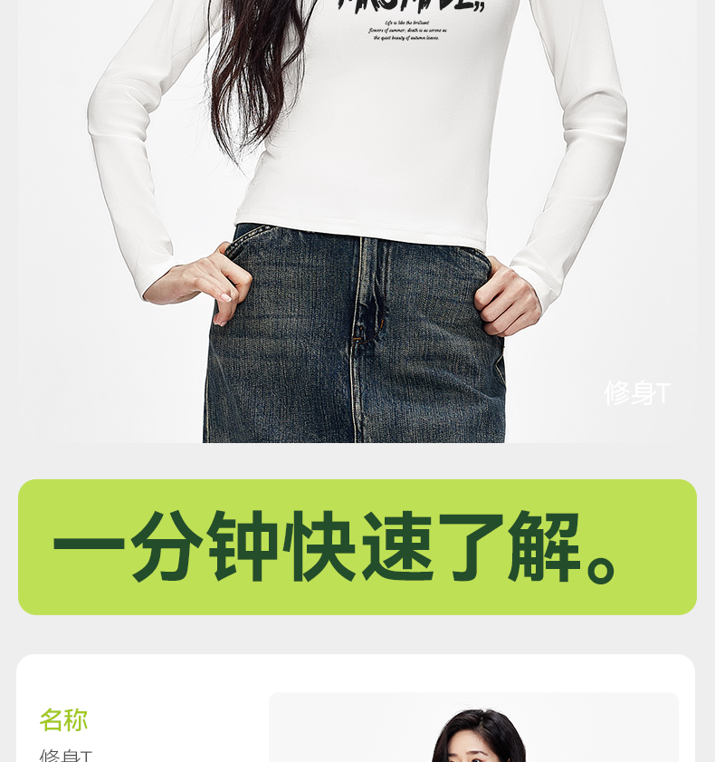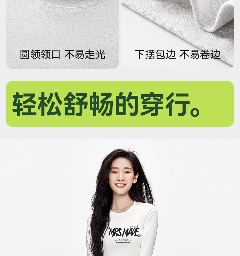「棉的美学」 白色显瘦圆领长袖T恤女字母印花校园风内搭打底衫