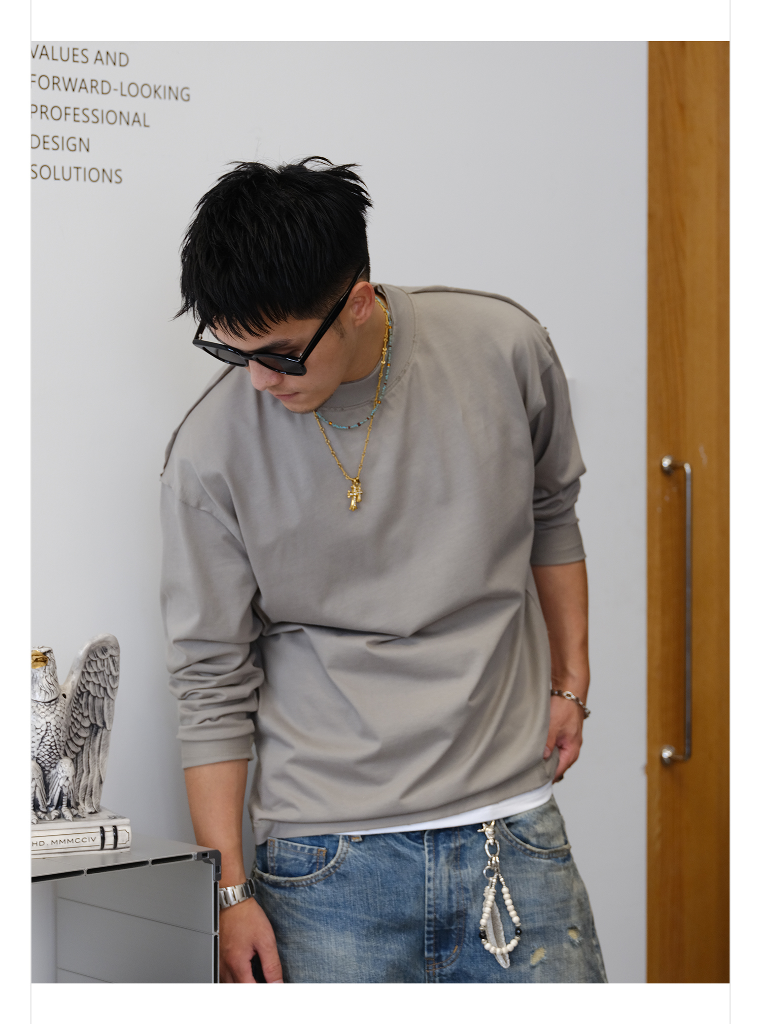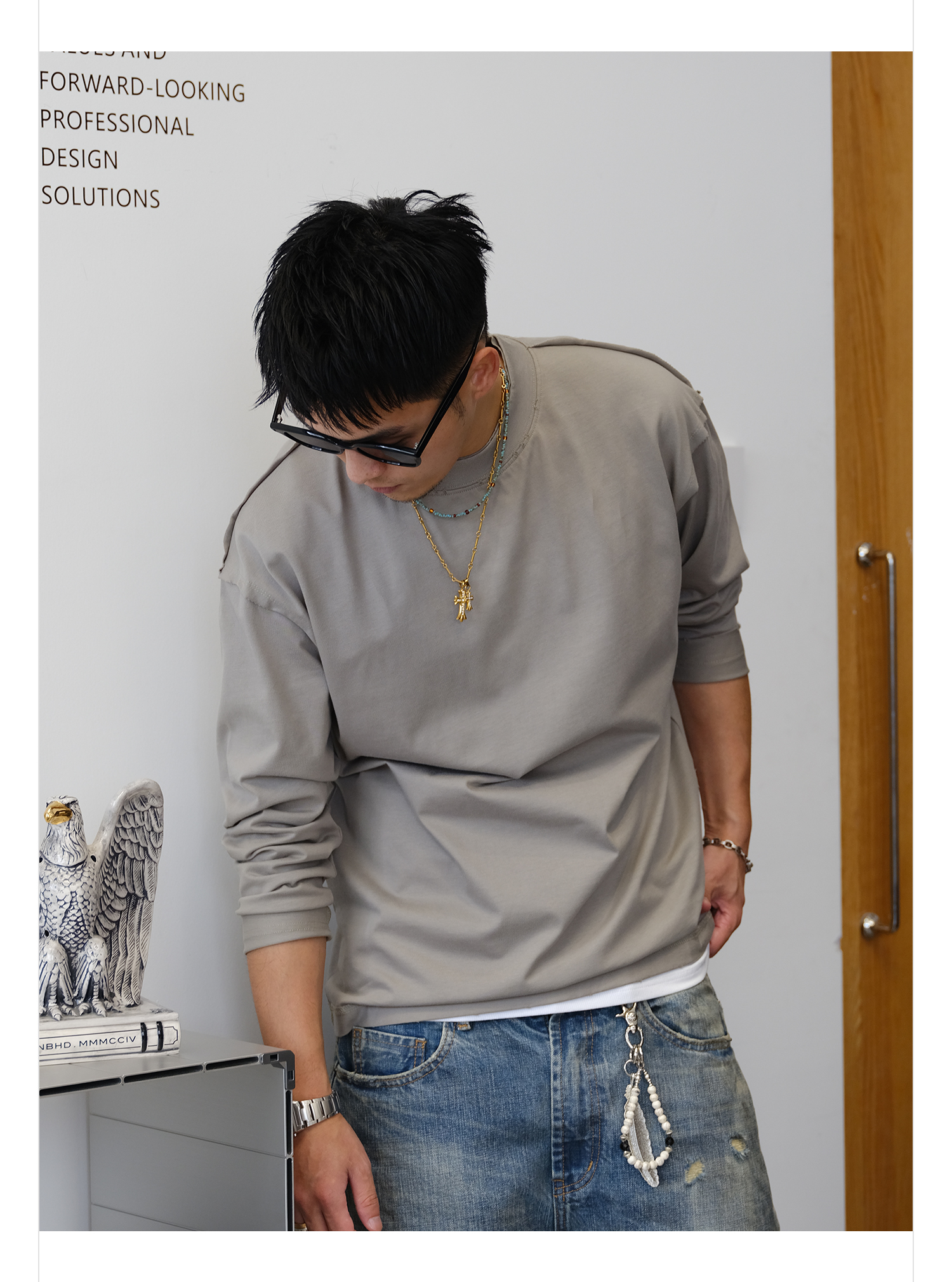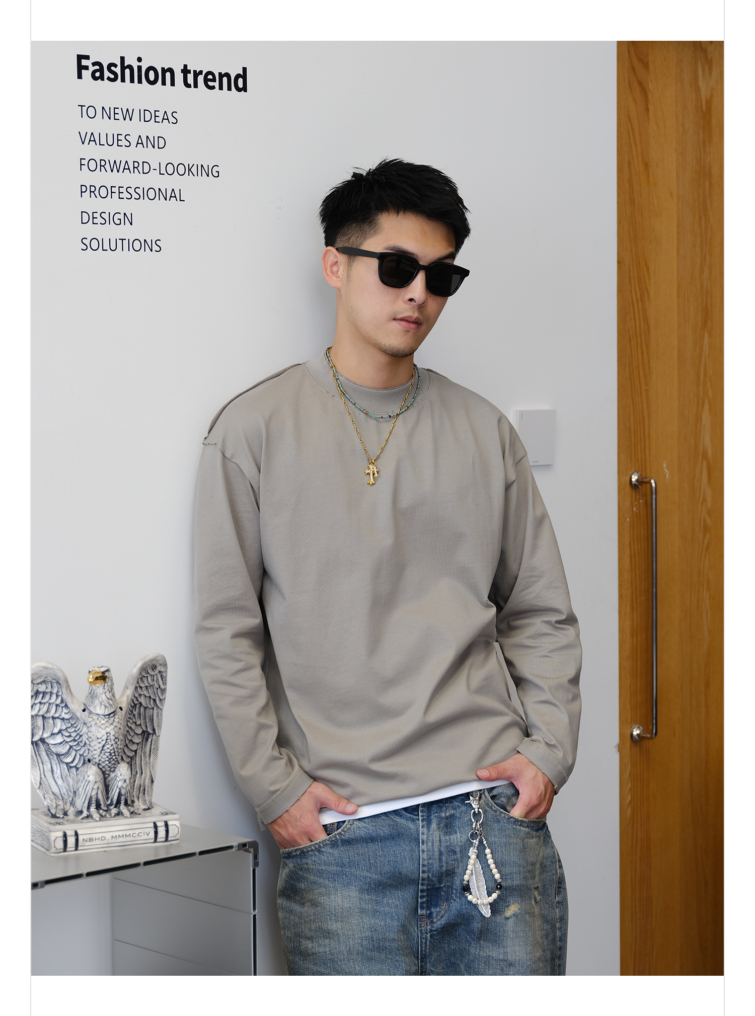 徐太浪260g亲肤透气纯棉长袖T恤男2025新款春秋通勤打底大码上衣