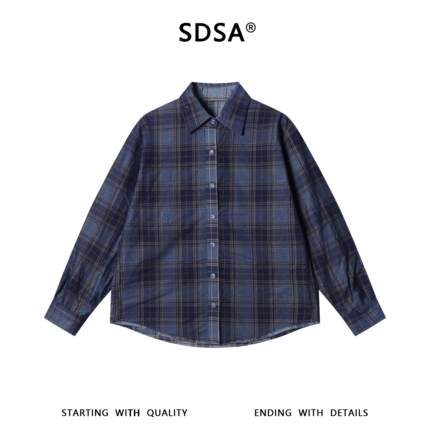 26CS32SDSA男装2026新款高贵轻奢美式复古撞色格纹格子翻领长袖衬衫百搭