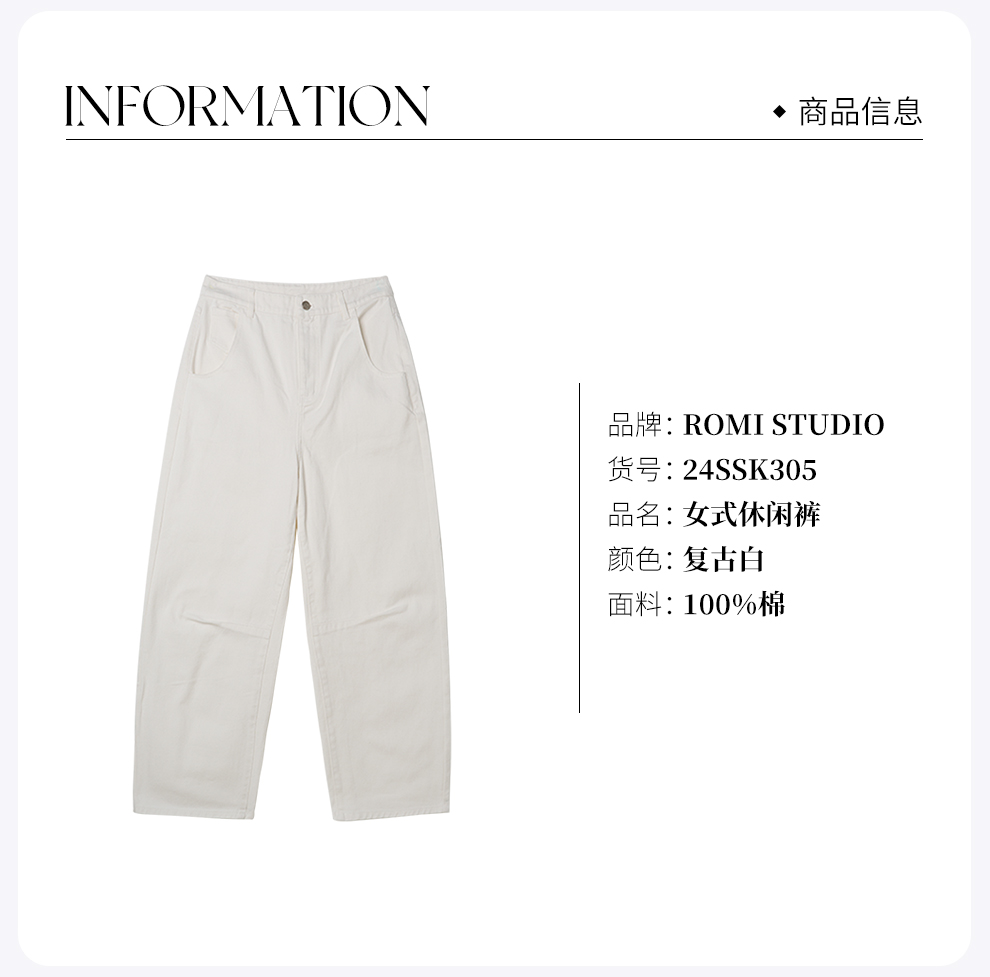 ROMI STUDIO“云感至上”100%棉斜纹肌理哑光白弯刀牛仔裤 24SSK305