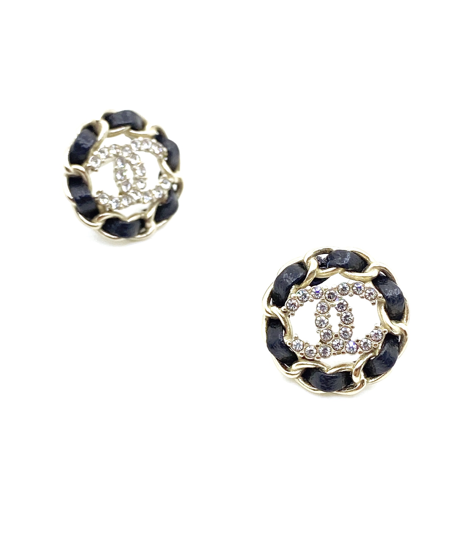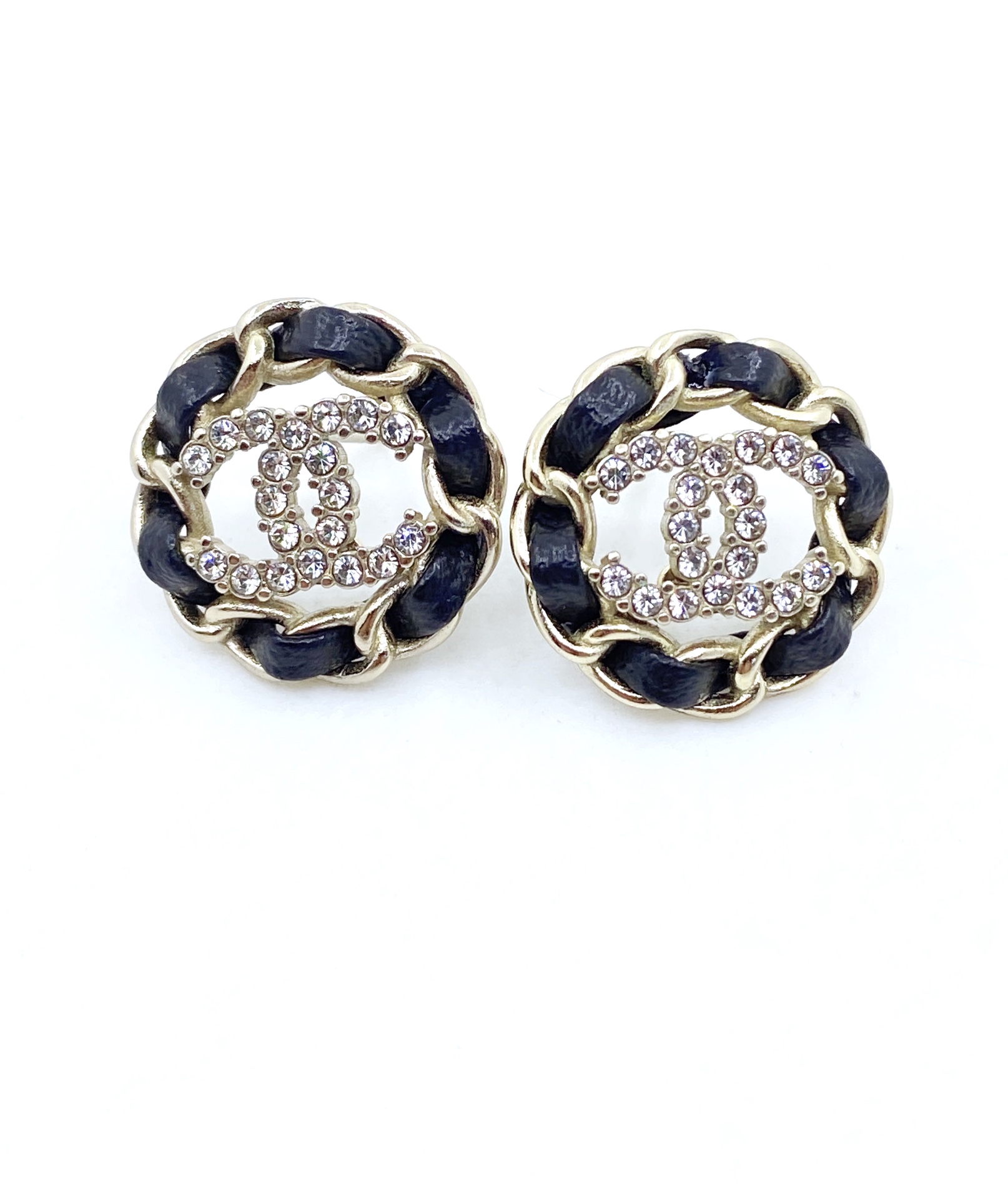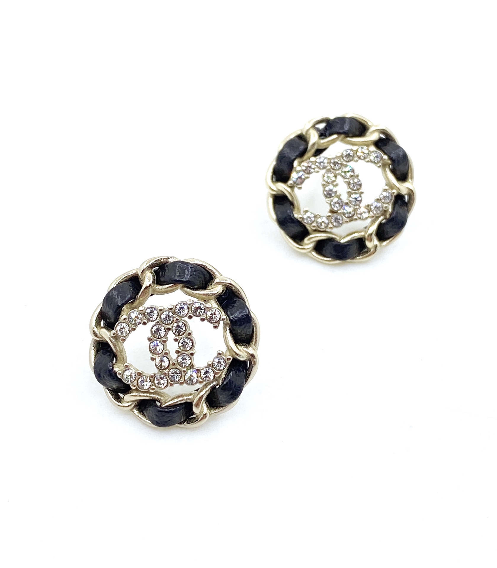 chanel 香奈儿 小香 新款小羊毛穿皮镶钻圆形耳钉