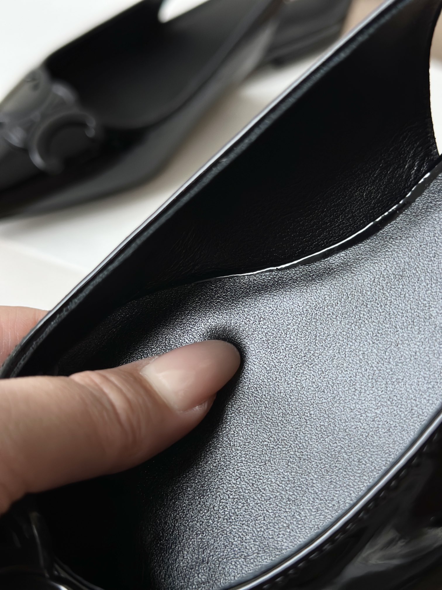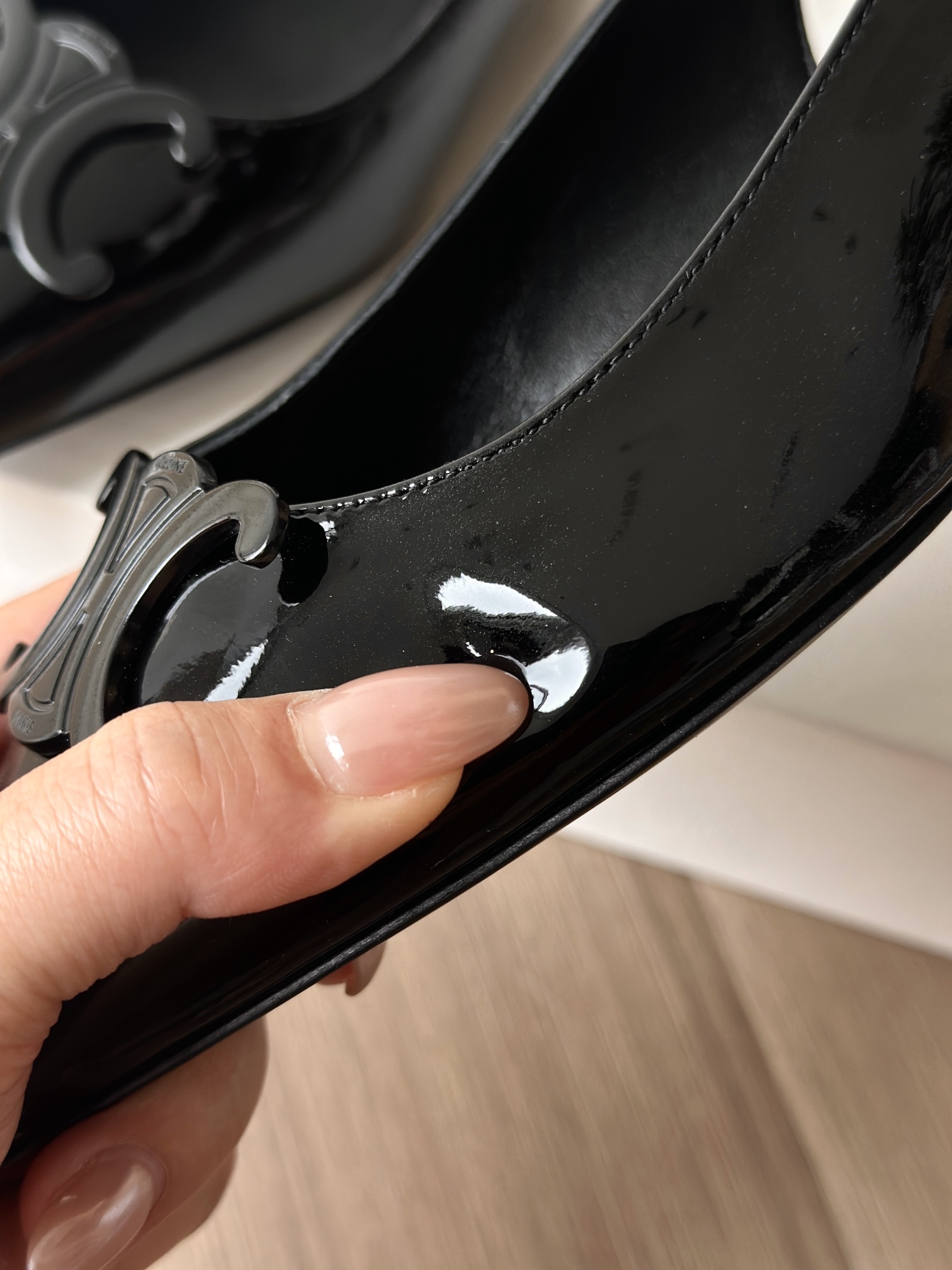 黑色款是软牛漆皮鞋面,钢琴黑漆皮的质感是绝对的满分💯 绝对的镜面亮感绝对是它满满的加分项,日常搭理也不用特别麻烦,简单一擦,锃亮如新!