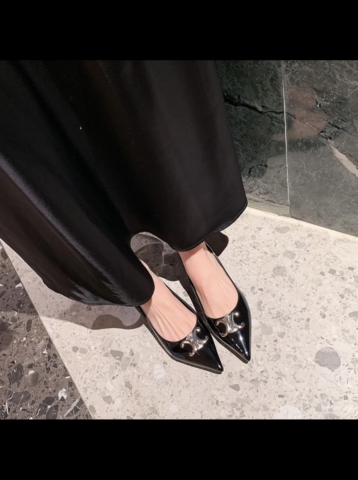 噌噌亮的牛皮和尖形鞋头搭配显眼包凯旋门logo 还是银扣 !又是冲击心灵的黑银配置!!怎么可以做到这么绝呢 没上脚就已经脑补三百万种穿搭了! 两个颜色分享!黑色更百搭,雾霾蓝更清新。 size:35-39