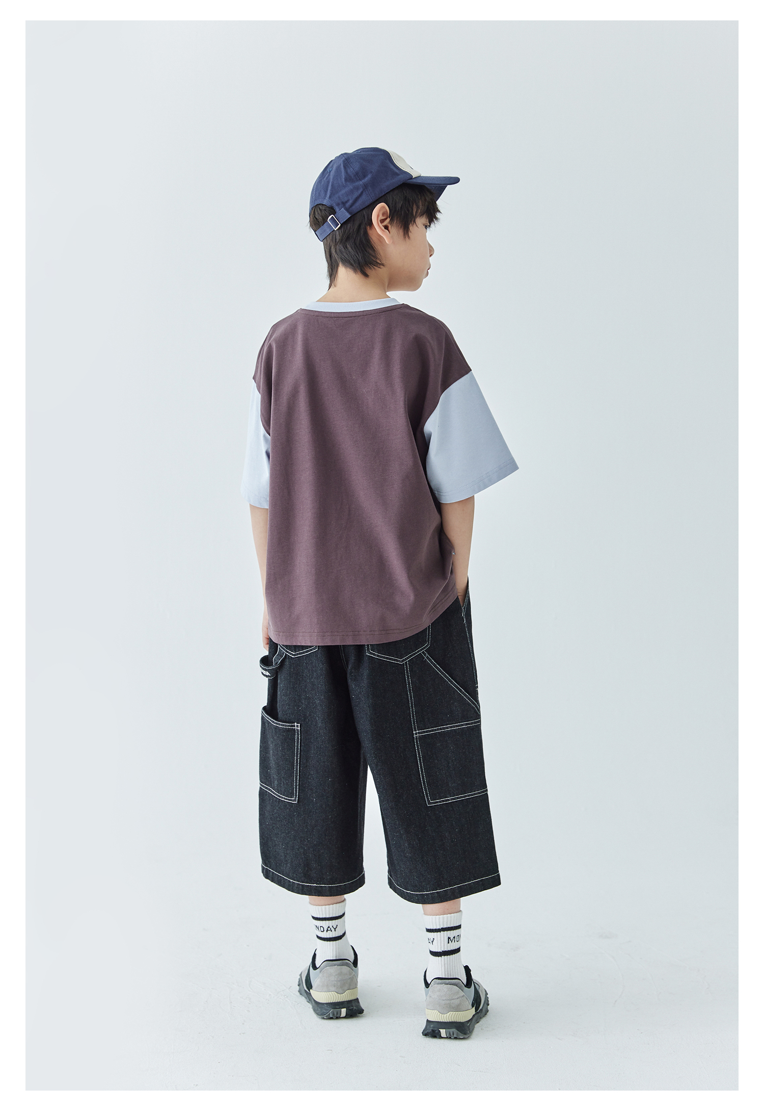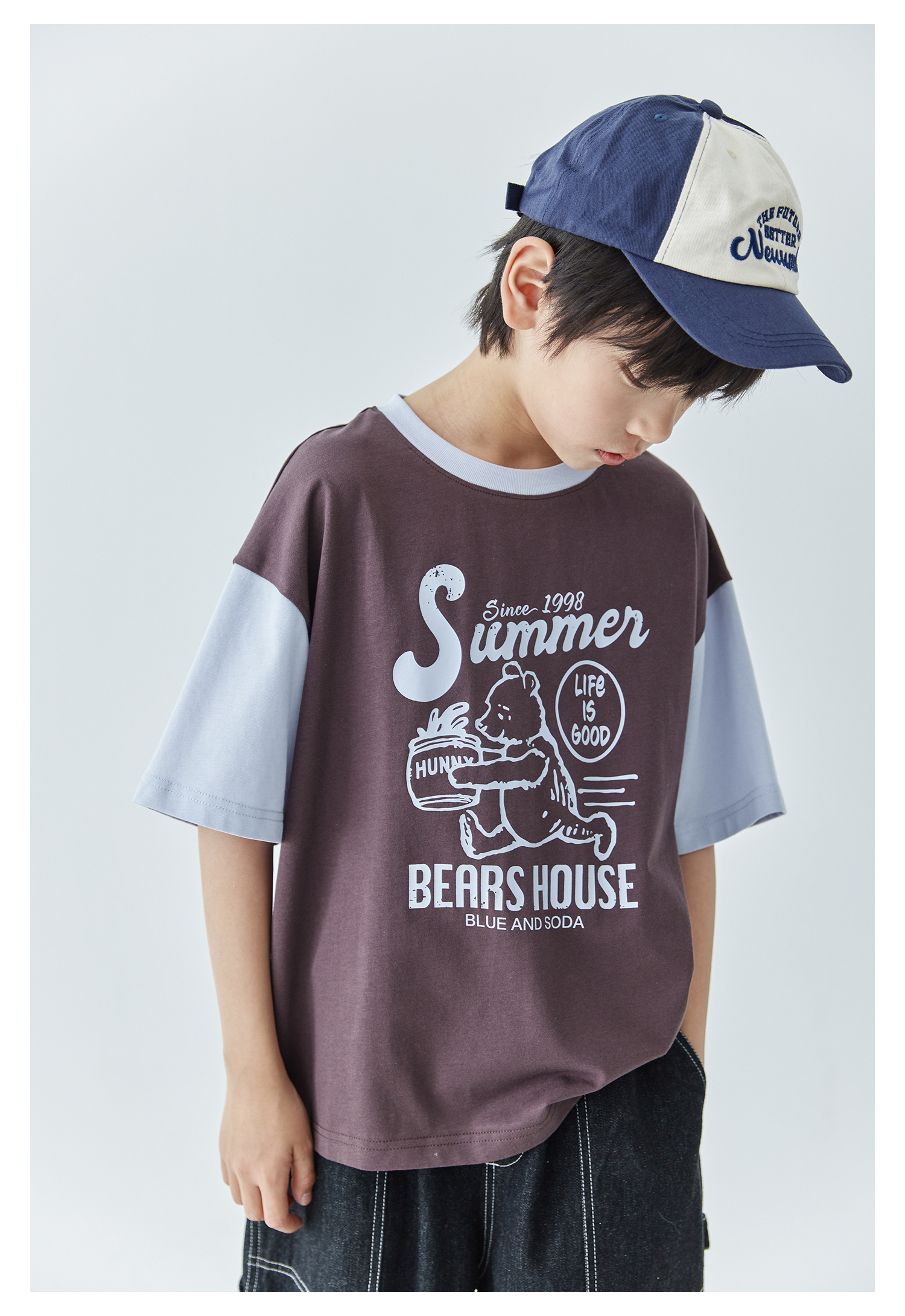 【品名】蓝汽水 844B24420 拼色短袖T恤