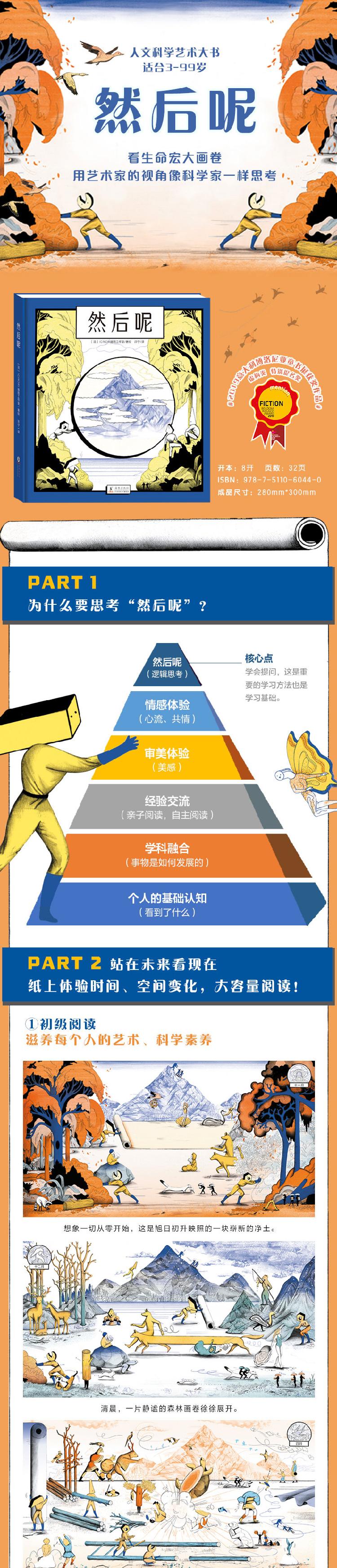 这本图画书呈现了一系列超现实的双重展开的场景,这些场景由充满幻想又焦虑不安的工具人忙于建设文明所构成。这个反乌托邦的故事是关于人类对改变地球的永恒痴迷,其中充满了对艺术的借鉴,比如希罗尼穆斯·博斯和20世纪的超现实主义。故事的时间跨度从当年9月一直到次年8月。这本书的核心问题是调查技术进步和可持续未来的问题,然后呢?本书提出了这个问题,但并没有回答这个问题。而是引发孩子和成年人一同去思考,去想象,因为未来是具有无限可能的,而每一位读者一旦开启了这样严肃认真的思考,希望会对他们的学习生活有所帮助,不断的学习、内省是人类文明进步的基础,一个好问题远比已知答案更加重要。