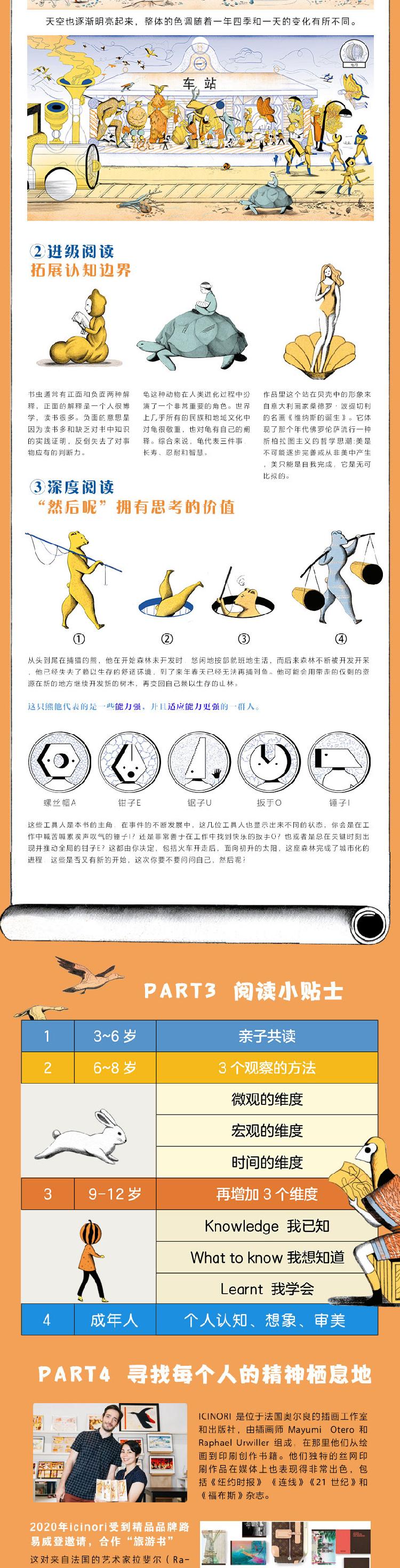 *这是一本图画书,但(不等于)≠童书,这是一本全年龄向的书*喜欢ICINORI 作品的不解释,可以闭眼冲*有难度、深度的书会激发你独立思考的宝贵能力*这本书没有所谓“正确的解读”,我们做的仅是提供读本,激发读者的自我建构*东方美学、古典主义和超现实主义,这是一本值得收藏的小众图画书*我们希望能在茫茫人海中遇到喜欢这本书的知音,这是特别为你而做的书