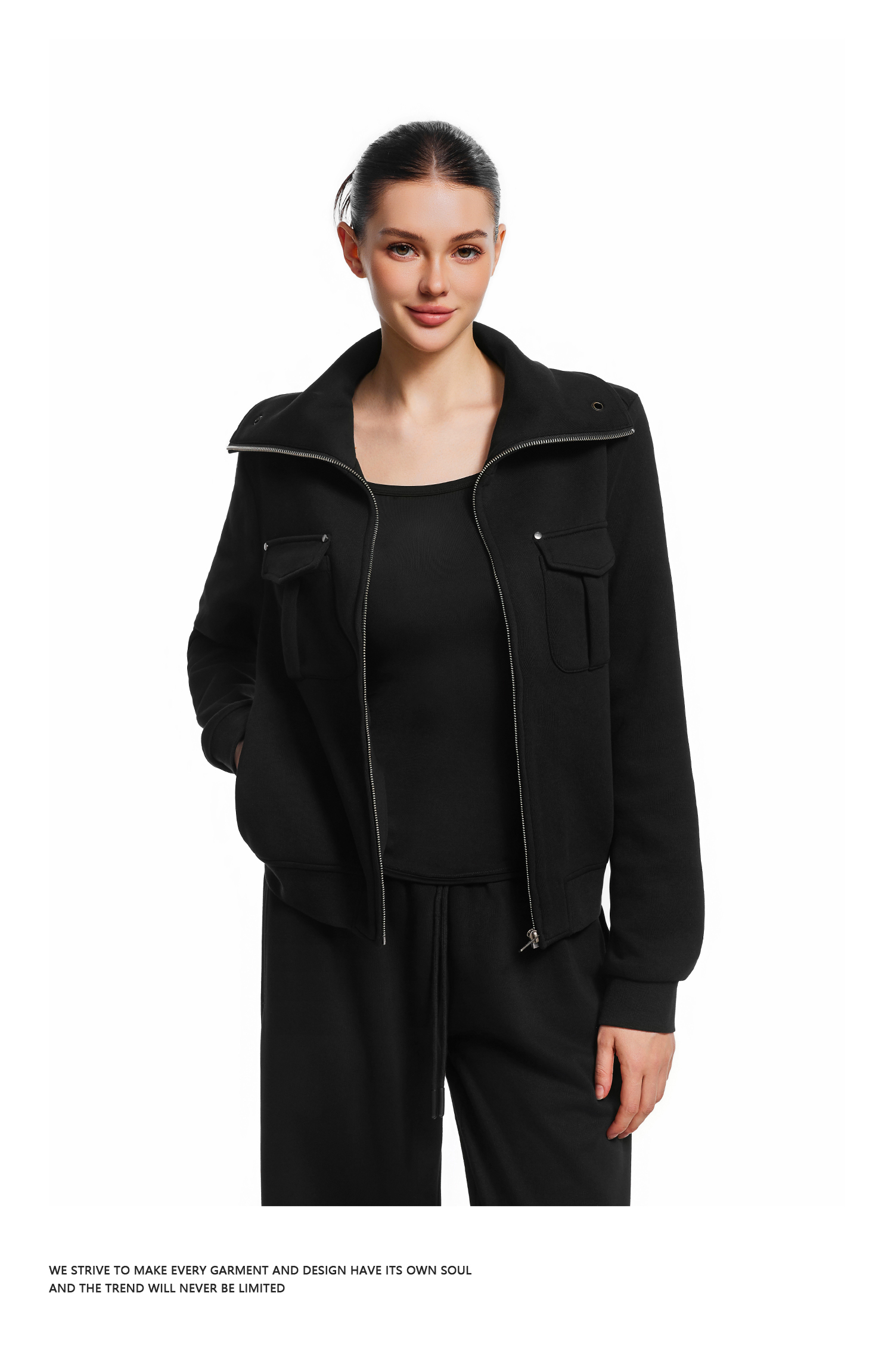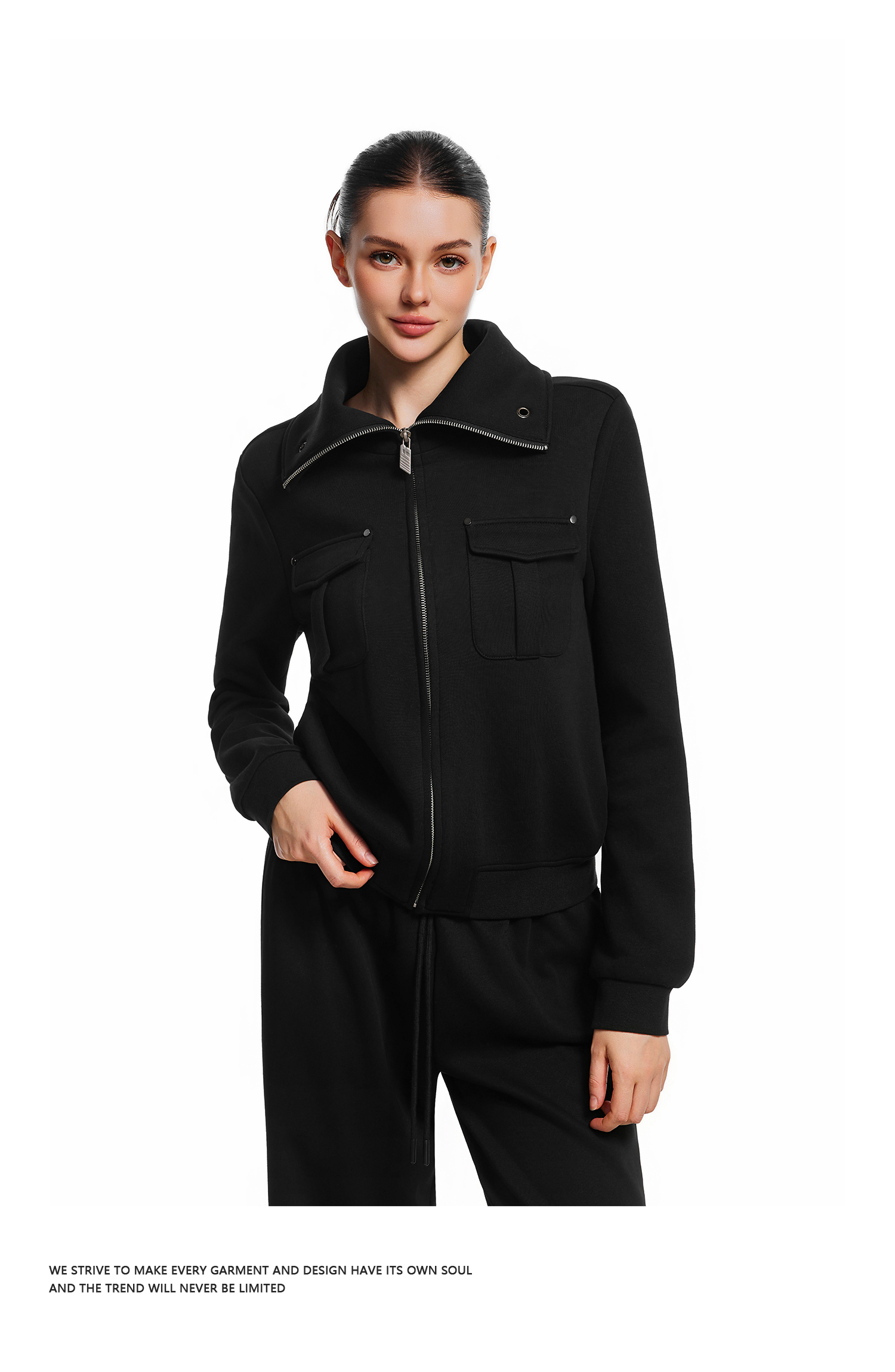FDR官方店 立领拉链短款卫衣女秋季保暖宽松休闲运动开衫上衣外套