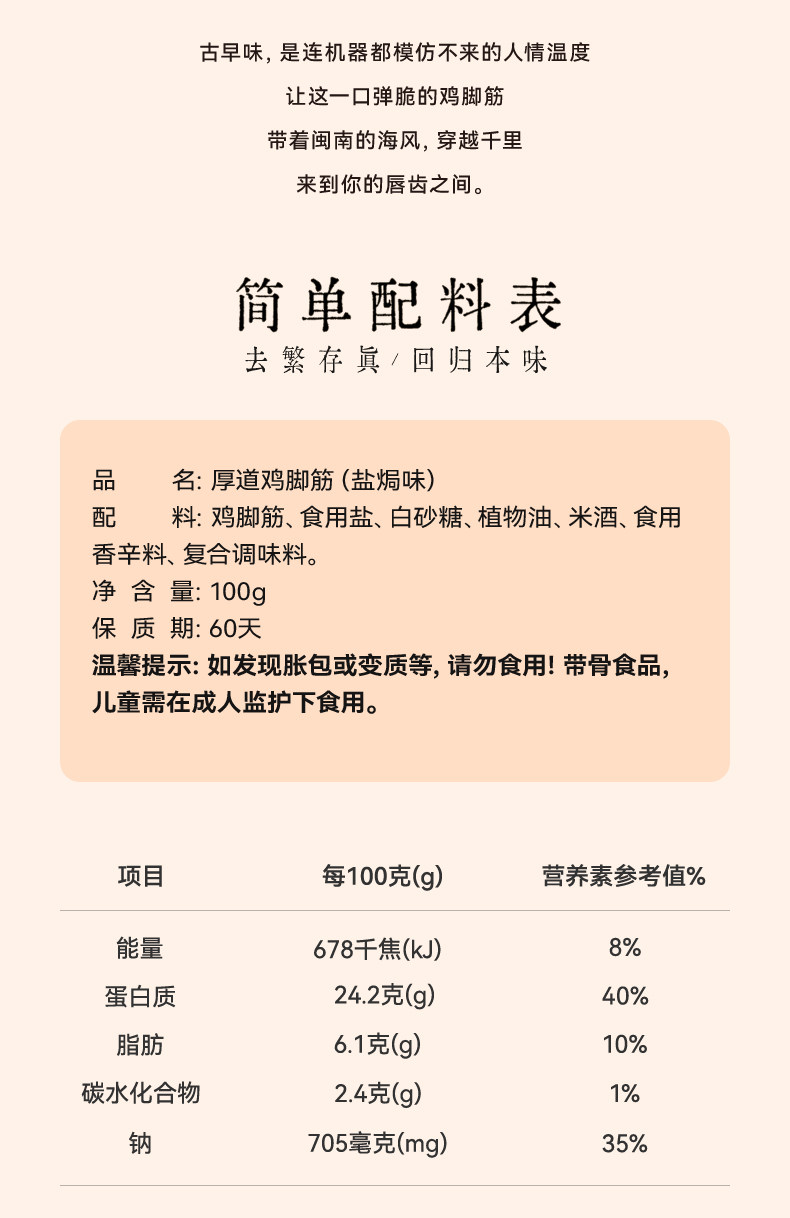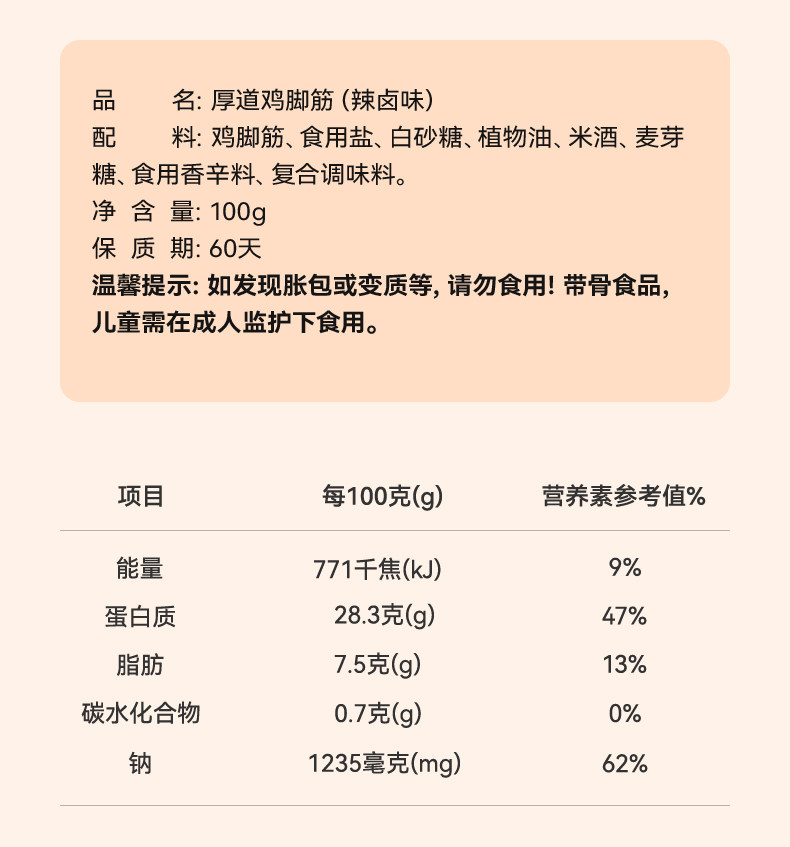 米惦厚道鸡脚筋香辣盐焗鸡脆骨熟食解馋无骨鸡爪开袋即食小吃零食
