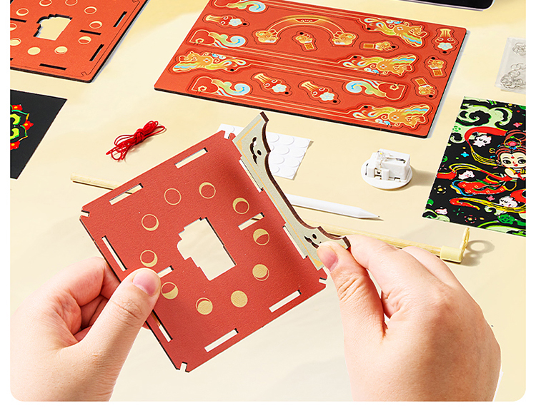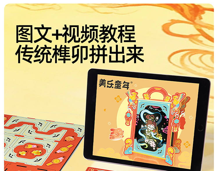 美乐童年新年非遗手工琉璃灯笼儿童玩具彩灯diy制作刮画花灯礼物