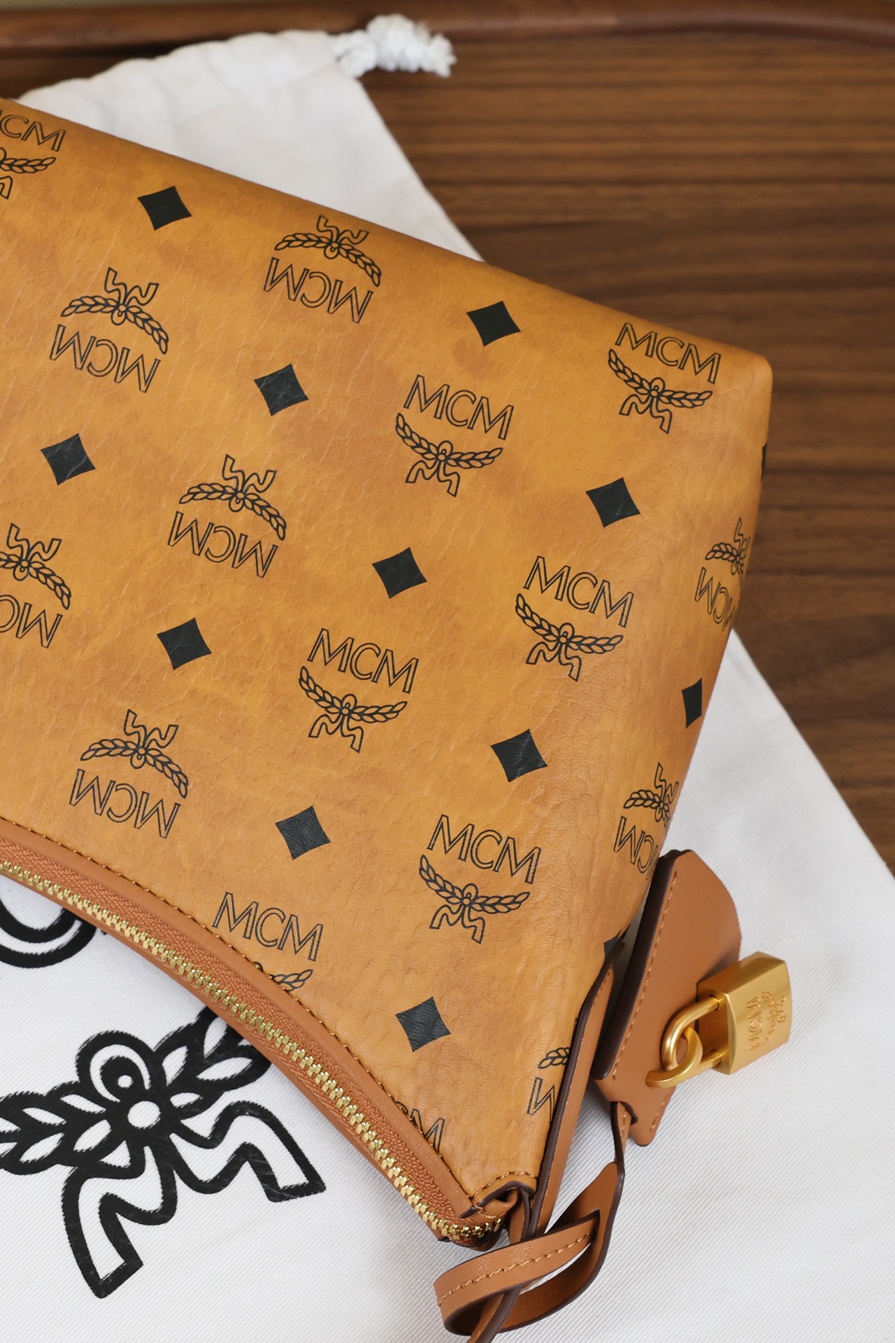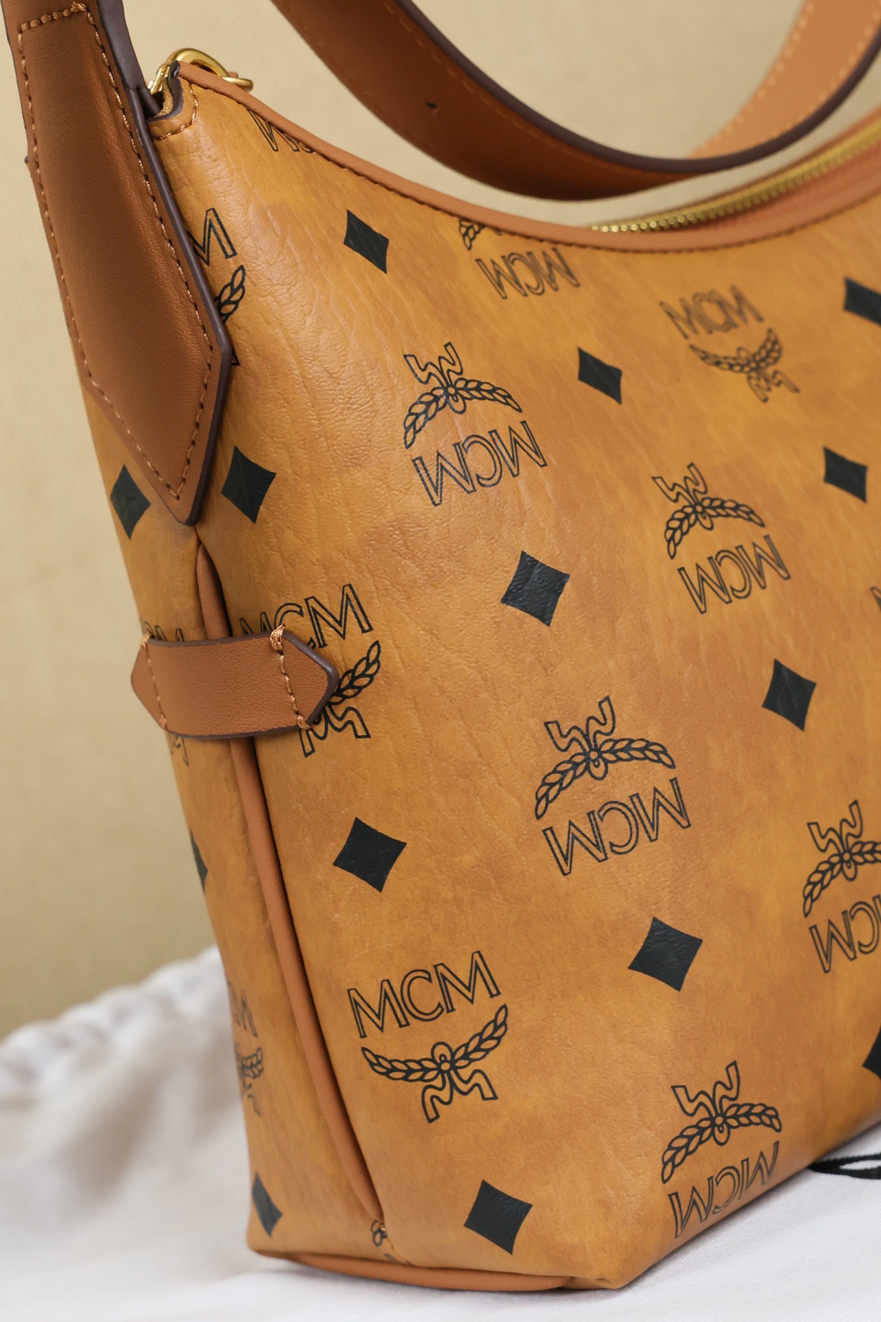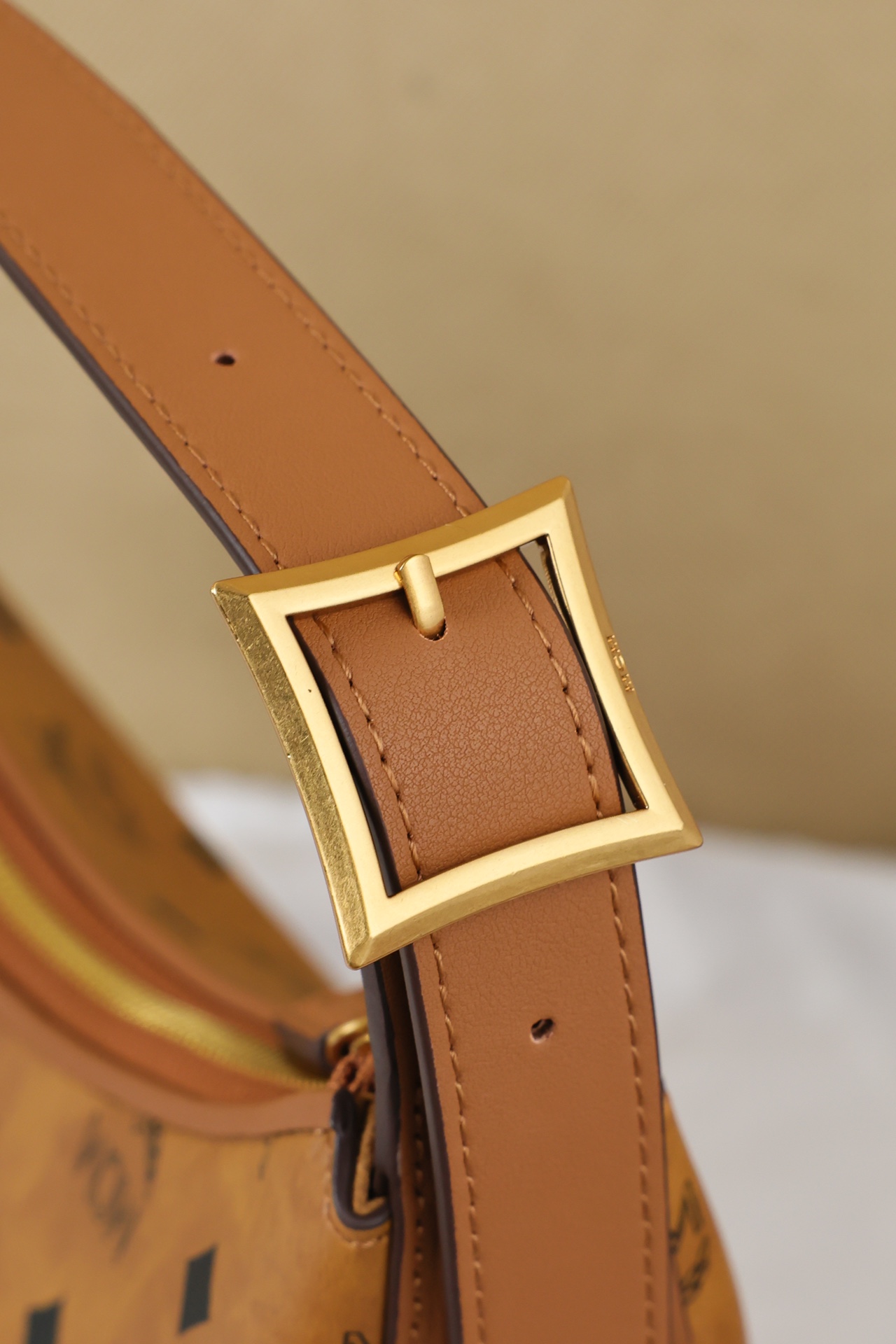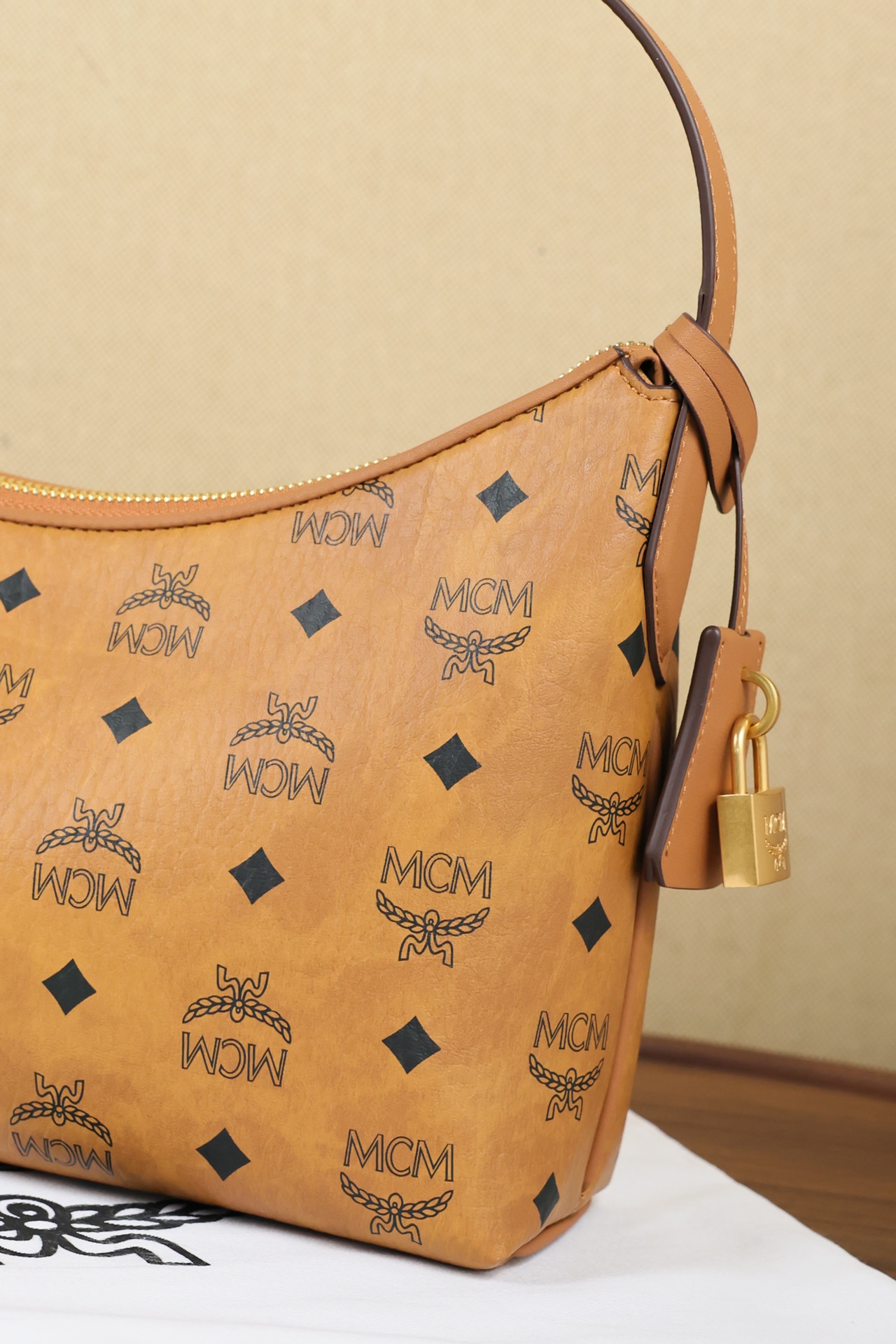 这款单品对经典的休闲款式进行了现代风的全新演绎,在柔软与挺阔之间取得了理想的平衡。这款小号Aren Hobo肩背包采用了传统MCM行李箱的设计元素,包括一个可拆卸皮革吊牌及雕花Logo挂锁,达到锦上添花的效果。