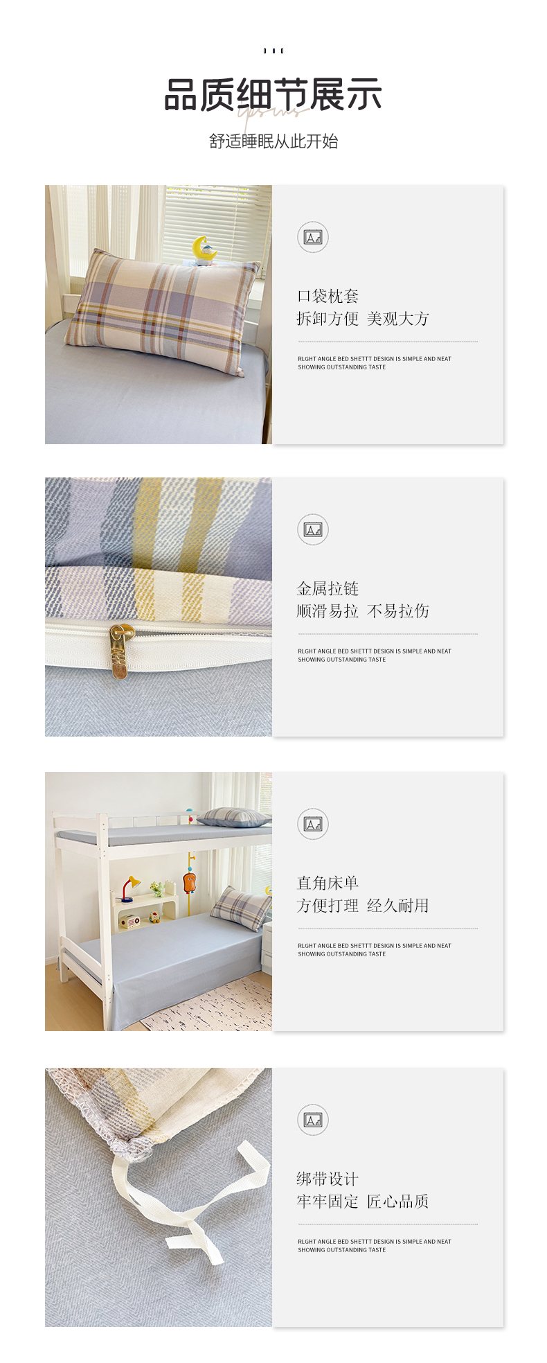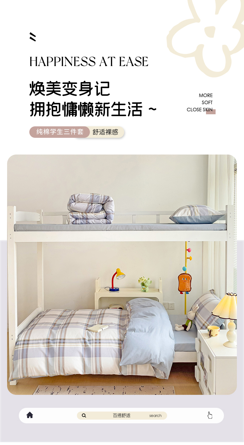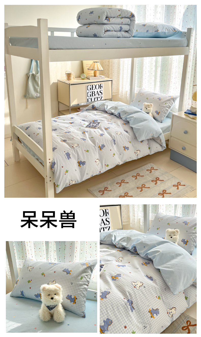 GRACE SPACE格调空间 纯棉学生宿舍用被套枕套床单三件套/床笠三件套