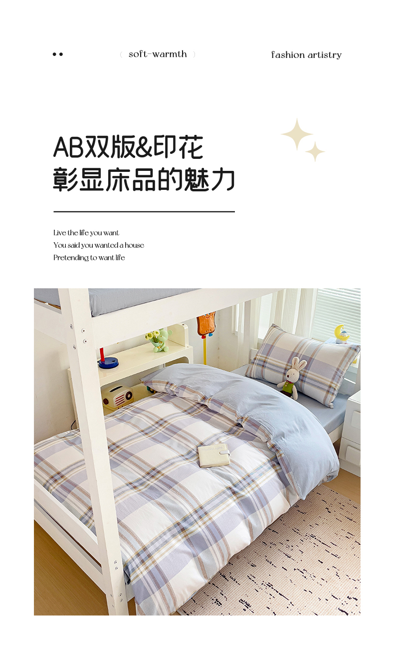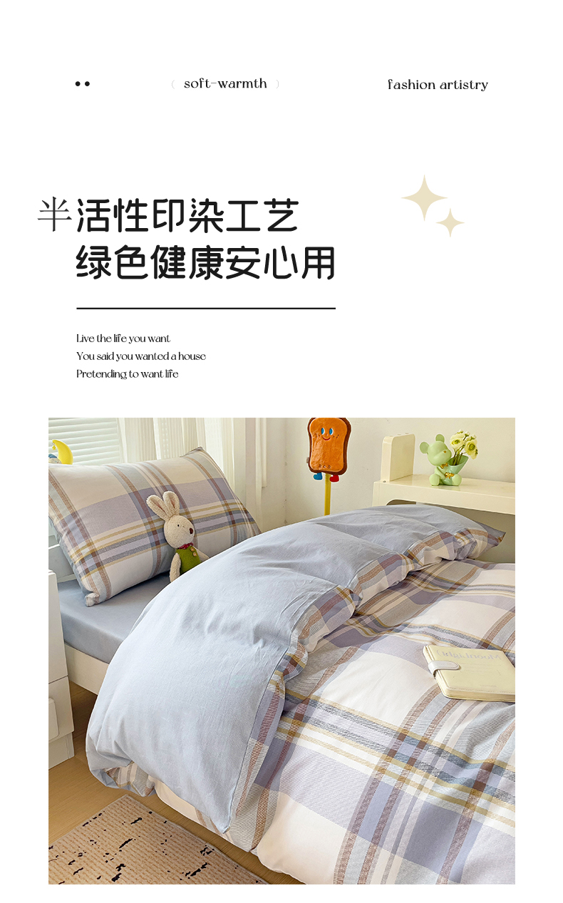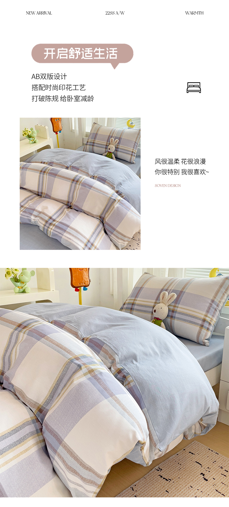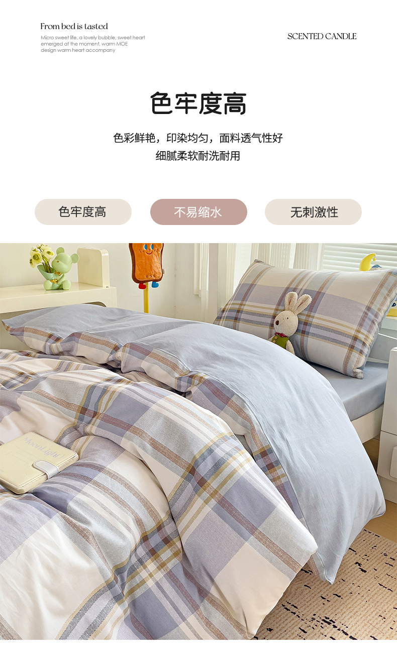 GRACE SPACE格调空间 纯棉学生宿舍用被套枕套床单三件套/床笠三件套