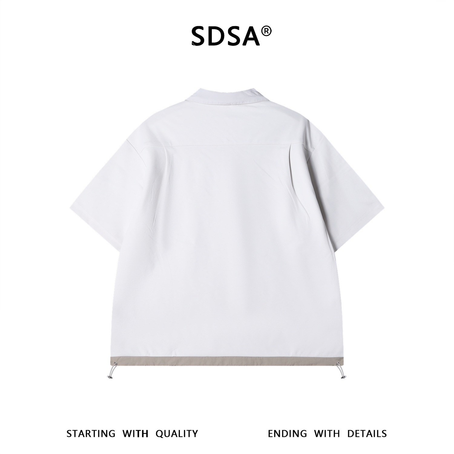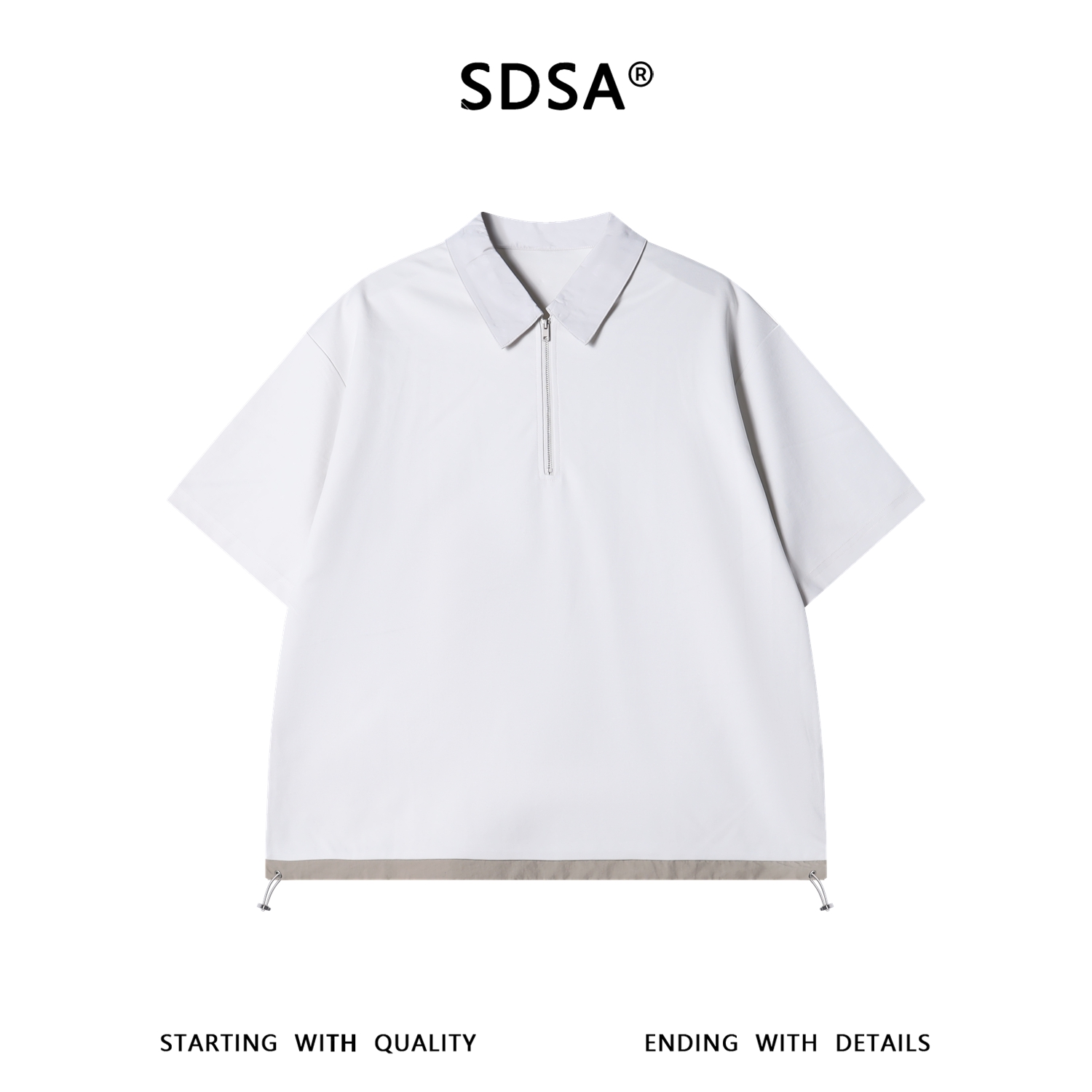 SDSA男装2026新款轻奢潮牌下摆拼接设计半拉链翻领短袖T恤百搭