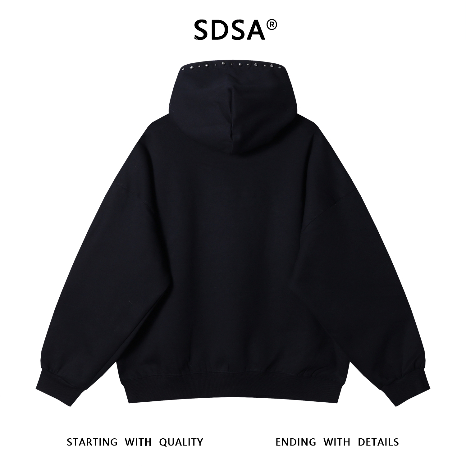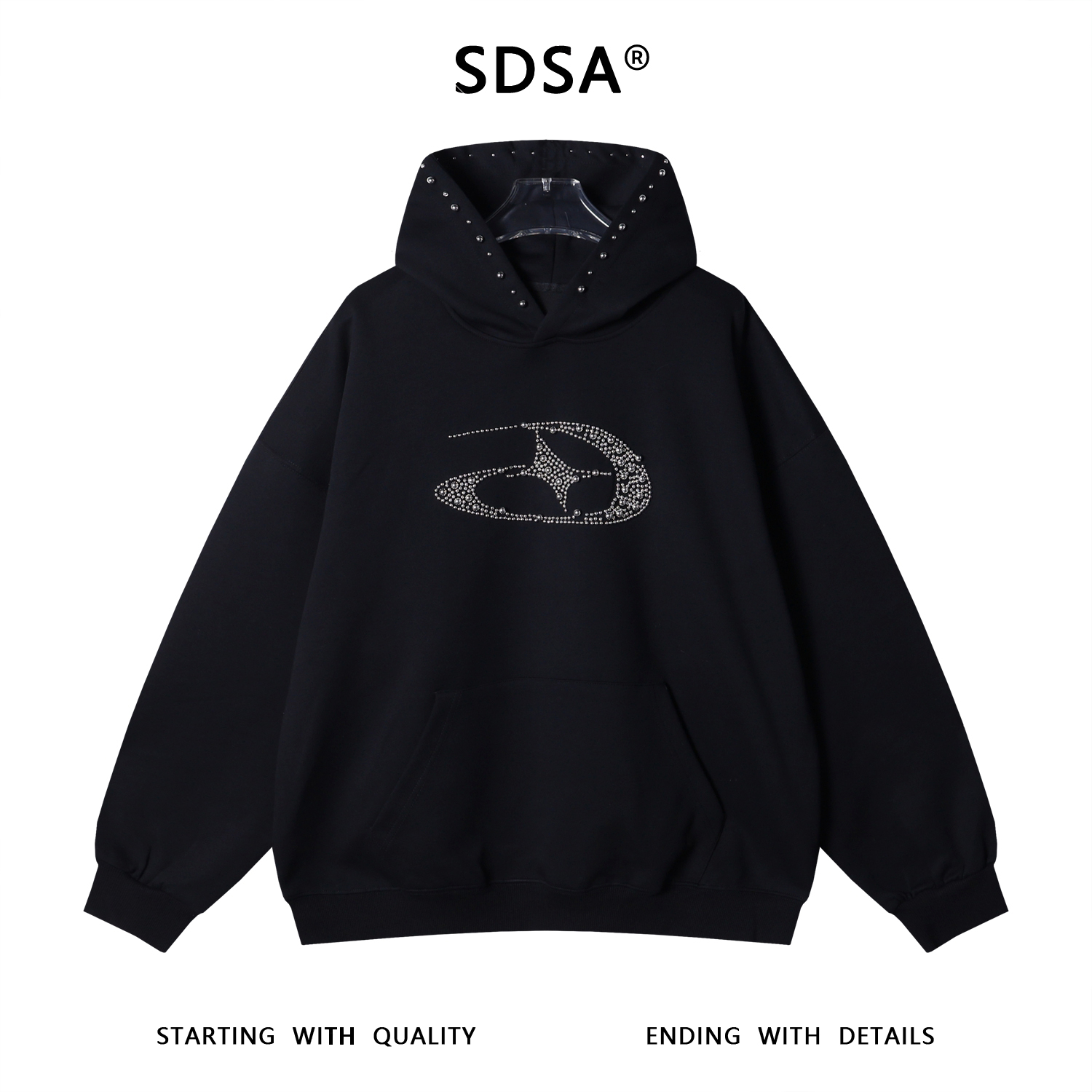 SDSA男士秋冬新款痞帅男装高街显瘦金属钉珠装饰连帽卫衣时尚百搭