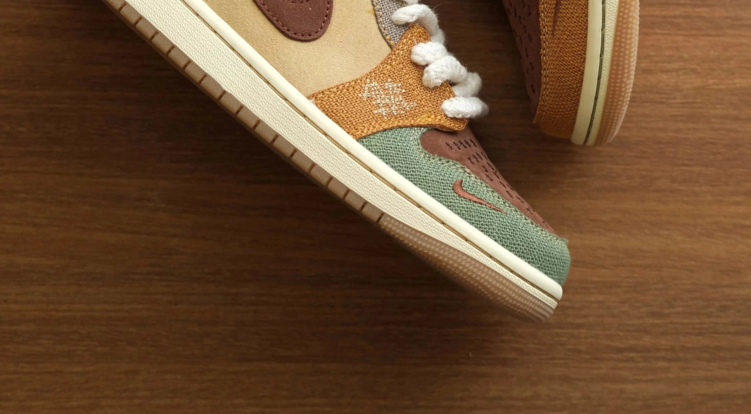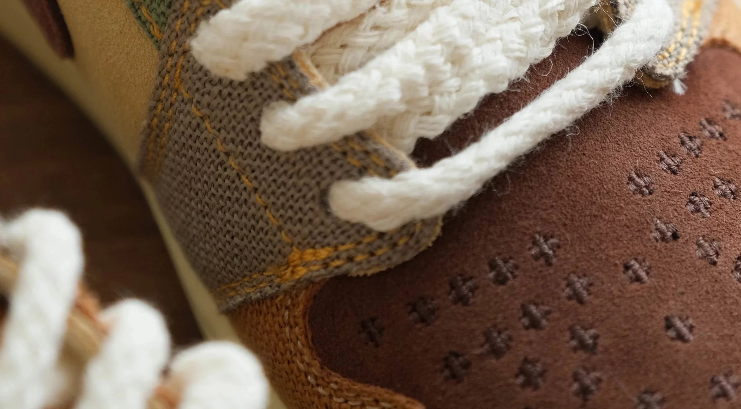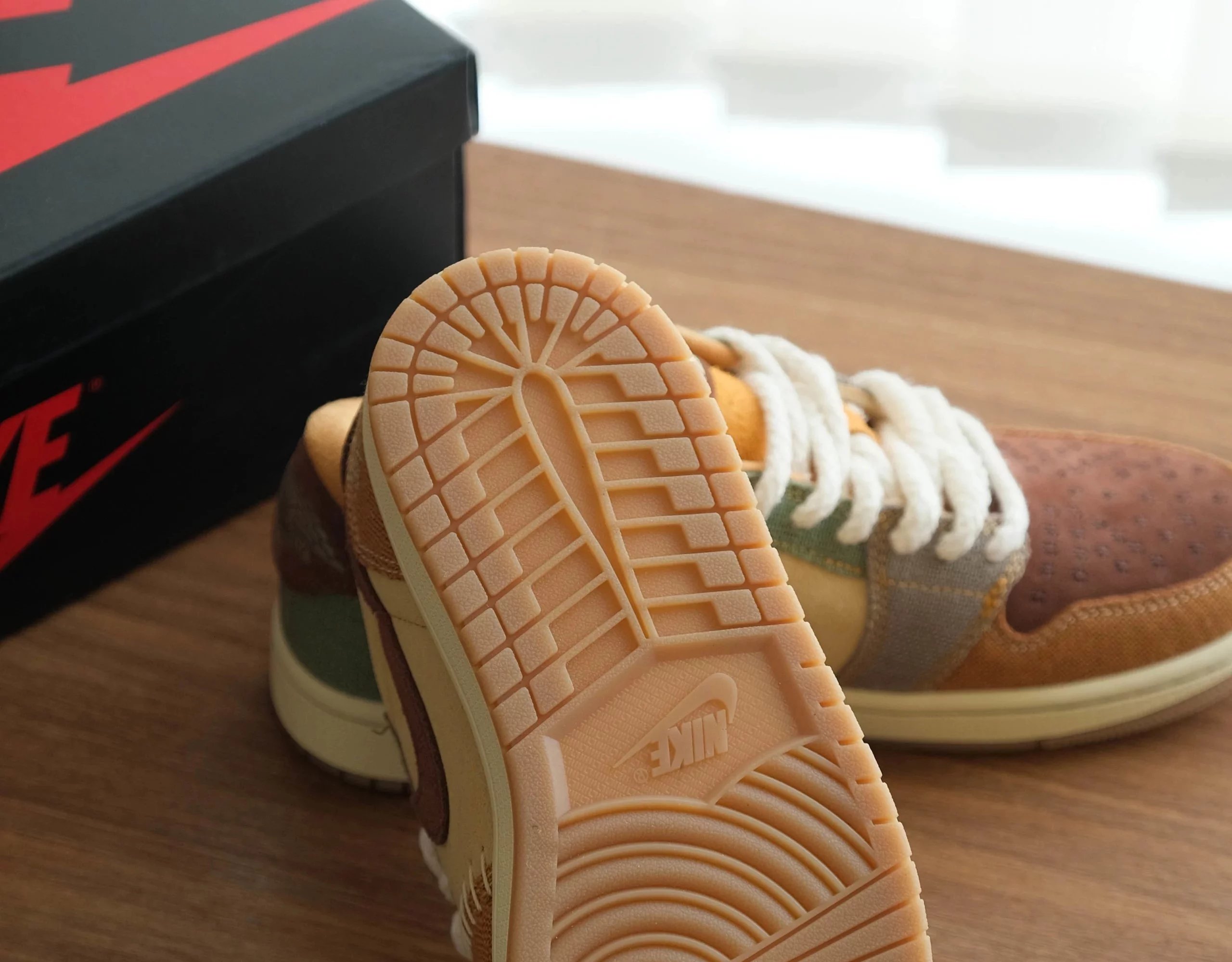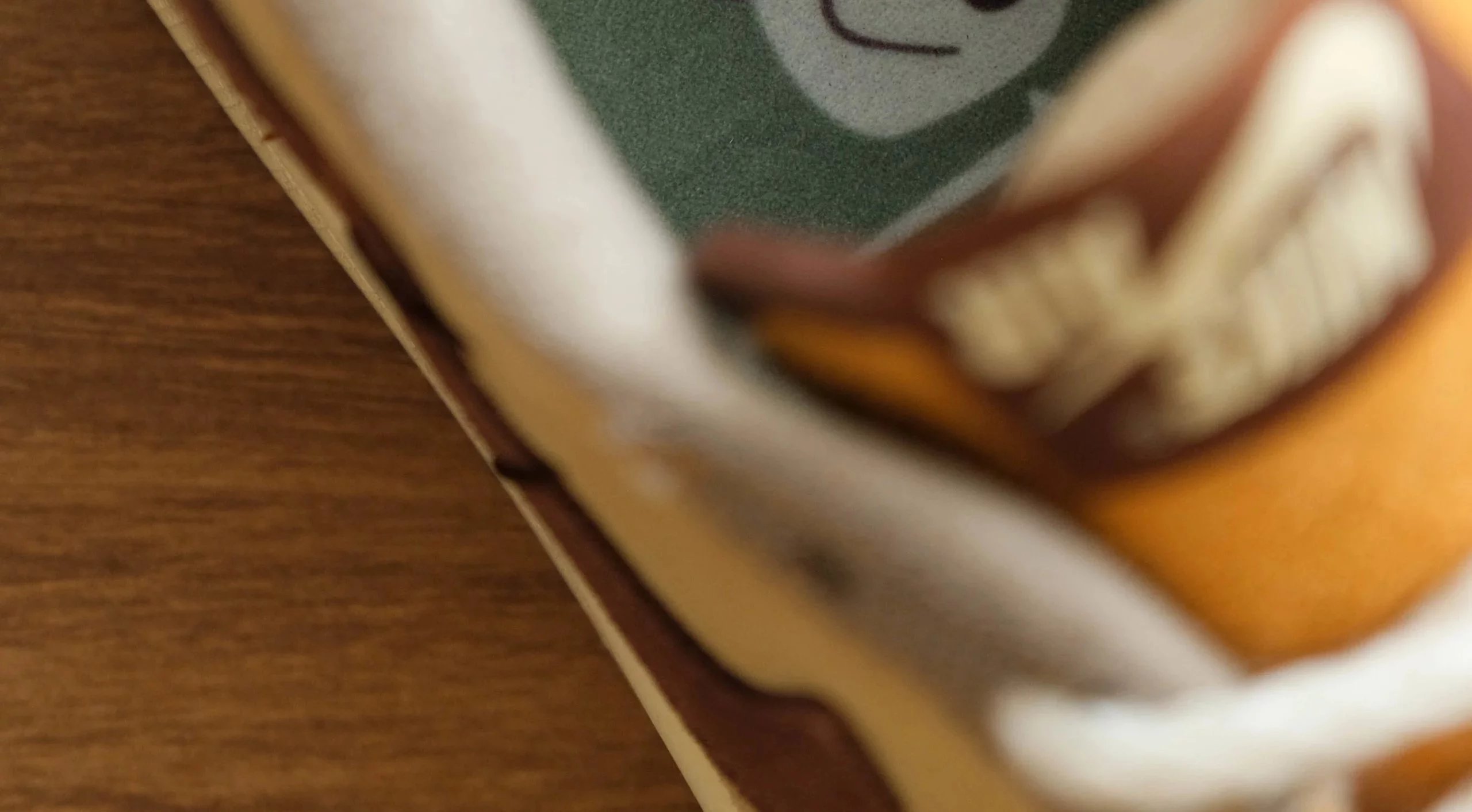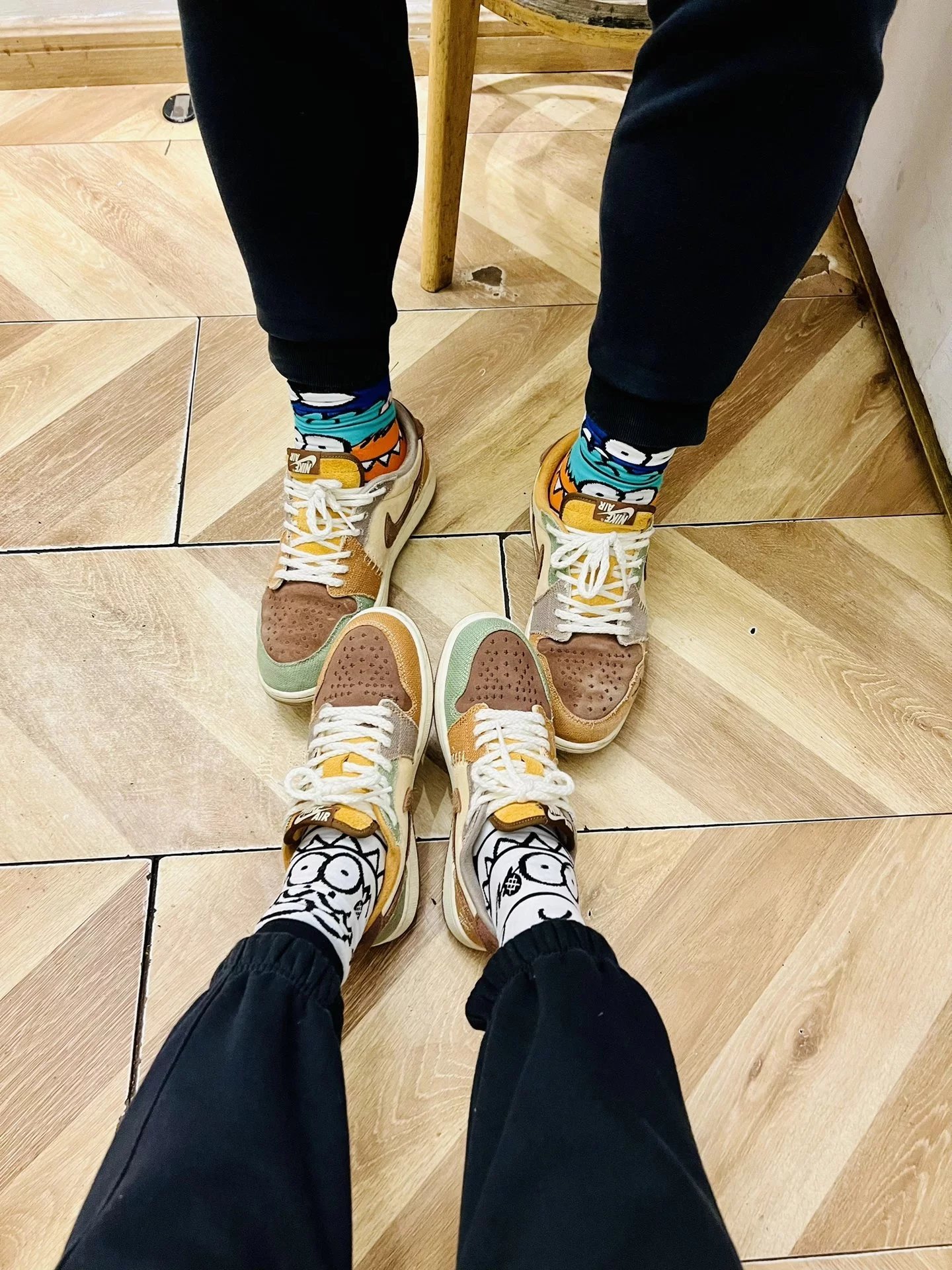 倒勾棕色鸳鸯,整双鞋面采用鹰皮,左右鸳鸯设计,搭配粗布材质打造,多种颜色拼接出层次感,呈现出酷似手工制作巫毒娃娃的视觉效果,后跟外侧还有骼髅头造型贴片以及纽扣眼点缀,进一步彰显巫毒娃娃主题,鞋头是以十字缝线布局,最后就是超多的细节设计,拼接的缝线、后跟处的鬼脸、后跟以及鞋舌处的LOGO均是反向,最后以米白中底搭配棕色外底完善设计