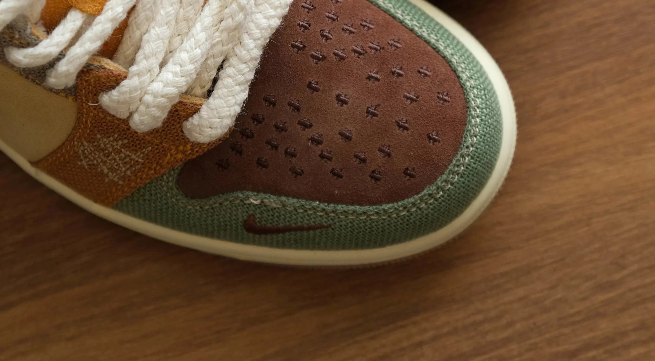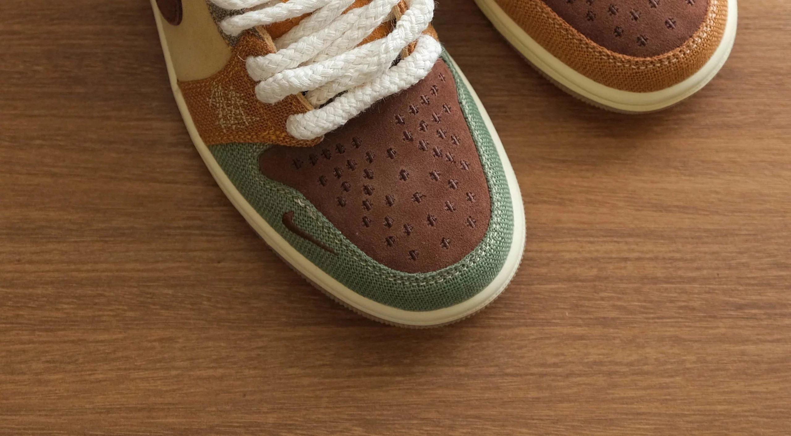 采用翻毛皮组合加粗复合麻布鞋面材质,中底注胶孔内置真Sole气垫,质感、细节直接拉满,市场唯一独家头层皮打造原鞋原档案开发,原厂皮料,原档冲孔鞋头,正确满胶鞋垫,四线拉帮,原厂织啧标b 鞋舌高弹海绵填充