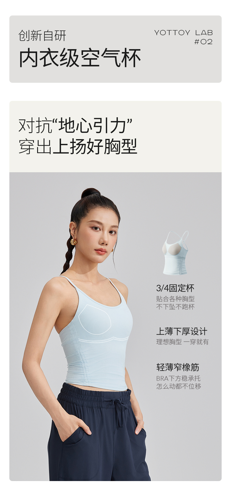 运动背心【YOTTOY】罗纹运动背心女夏薄款美背带一体式胸垫健身瑜伽细吊带外穿