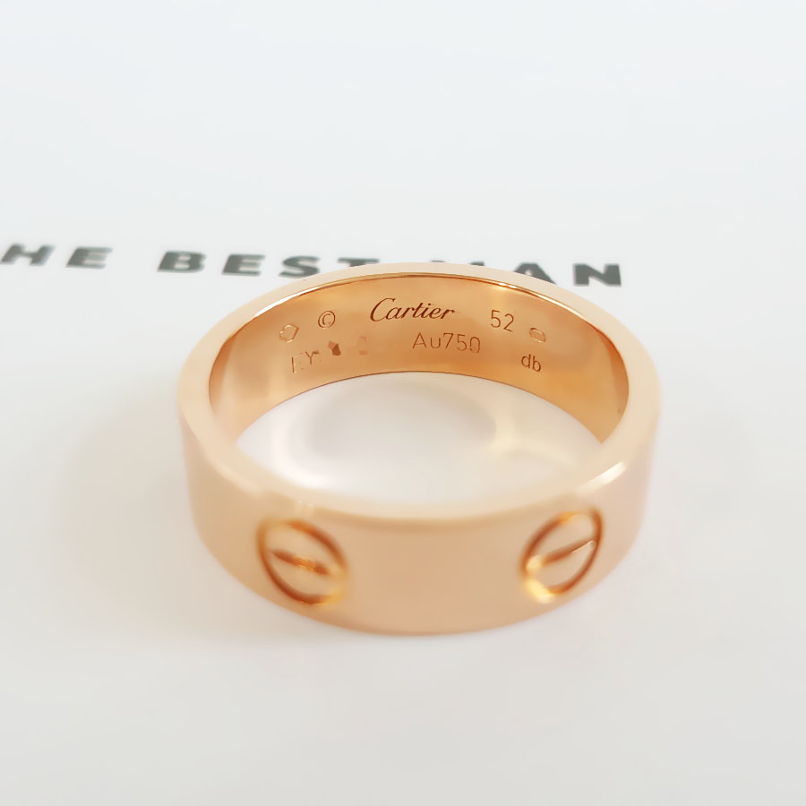 【95新】Cartier卡地亚LOVE系列18K玫瑰金宽版无钻LOVE戒指52号B4084852 现售价:6000!280825NJS10+