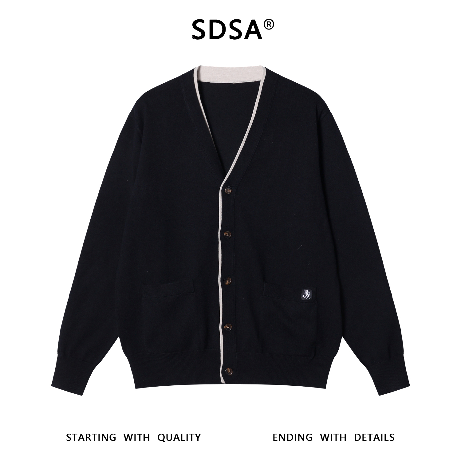 25FK068SDSA秋冬新款痞帅男装韩版简约撞色纽扣开衫V领假两件针织衫毛衣