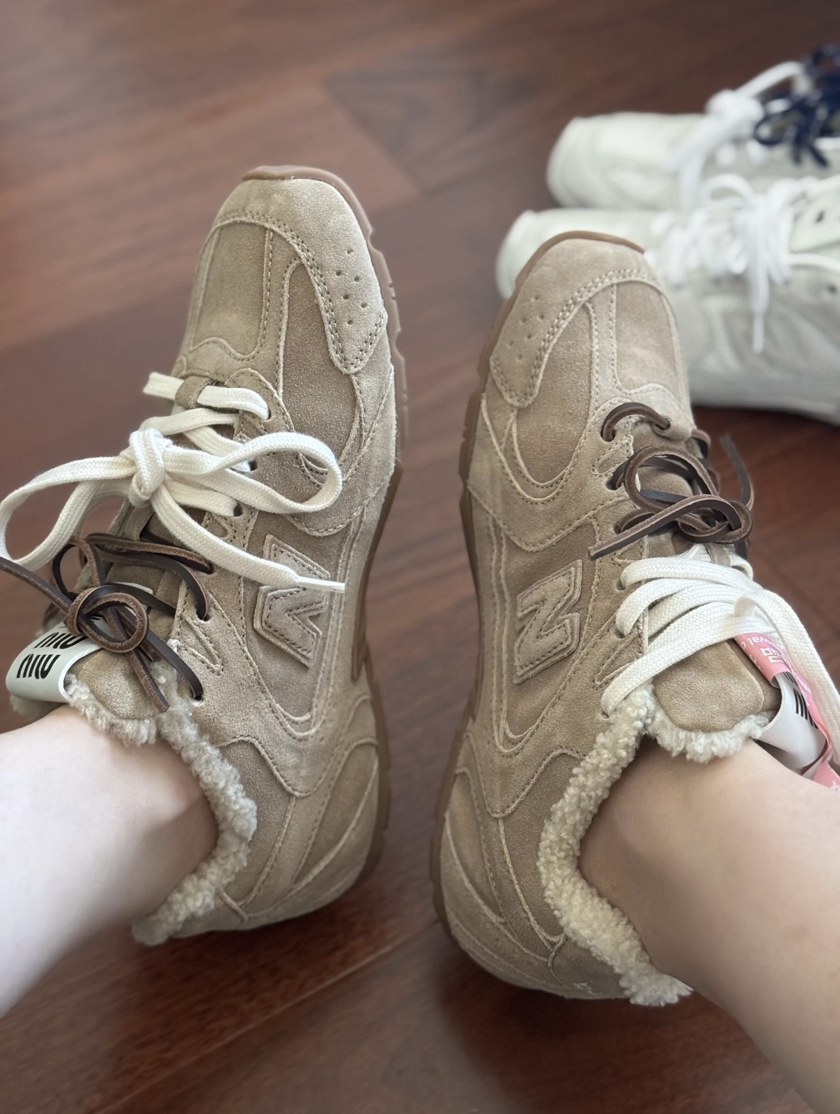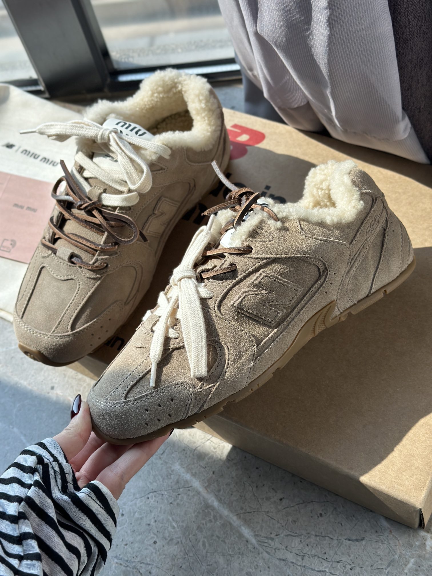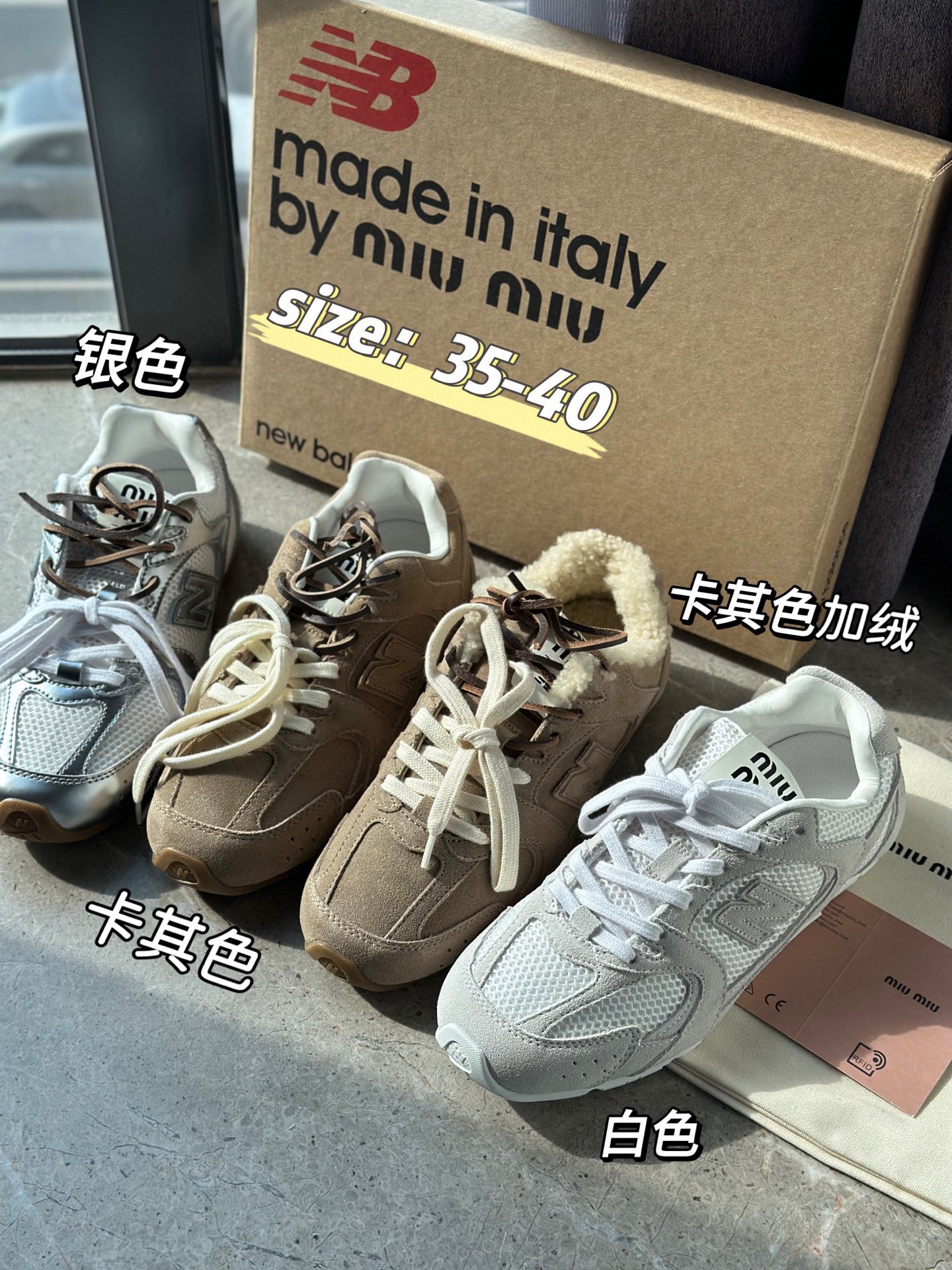 Miu携手NB打造的特别款运动鞋。
