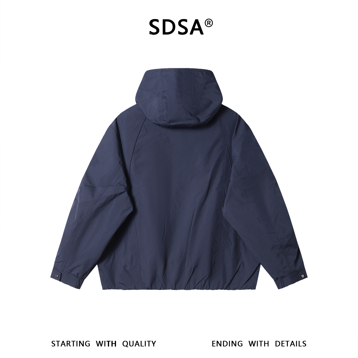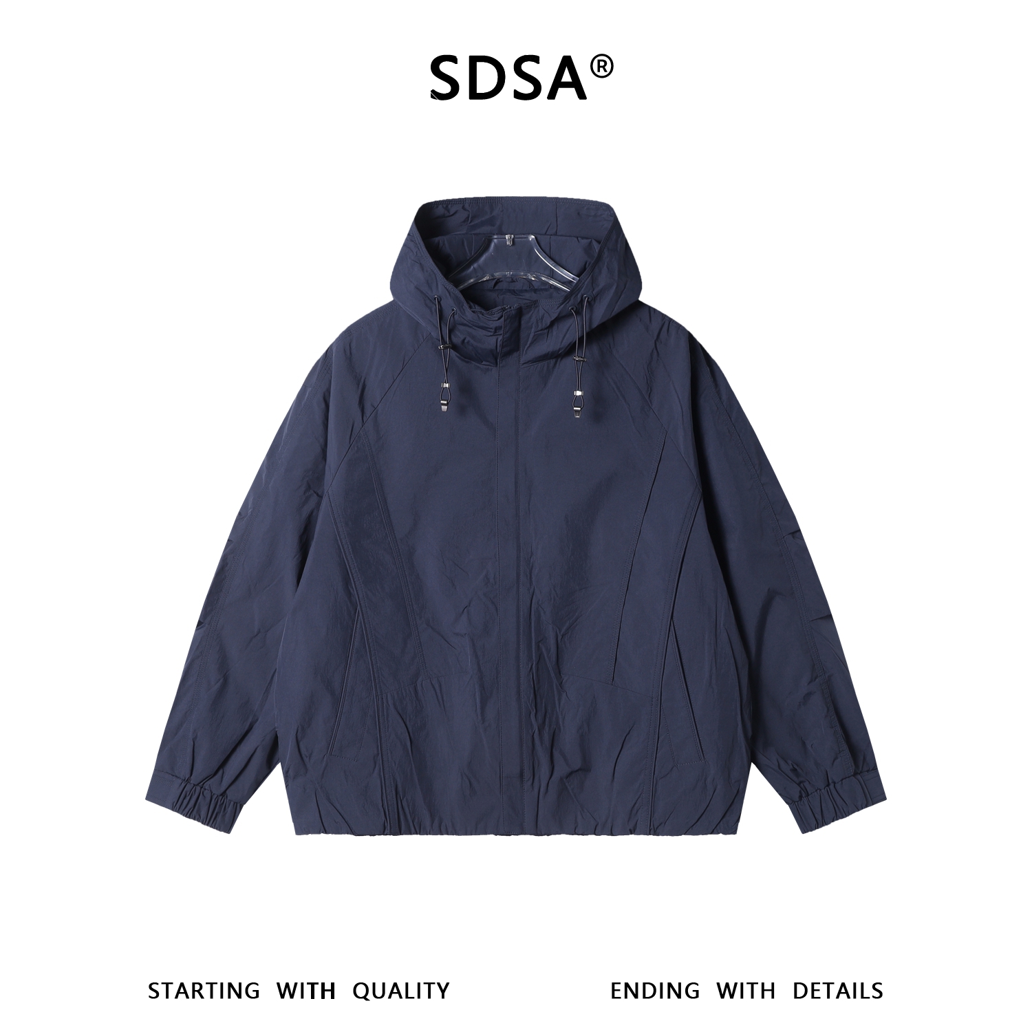 SDSA男士秋冬新款痞帅男装潮牌褶皱纯色拉链立领连帽夹克外套百搭