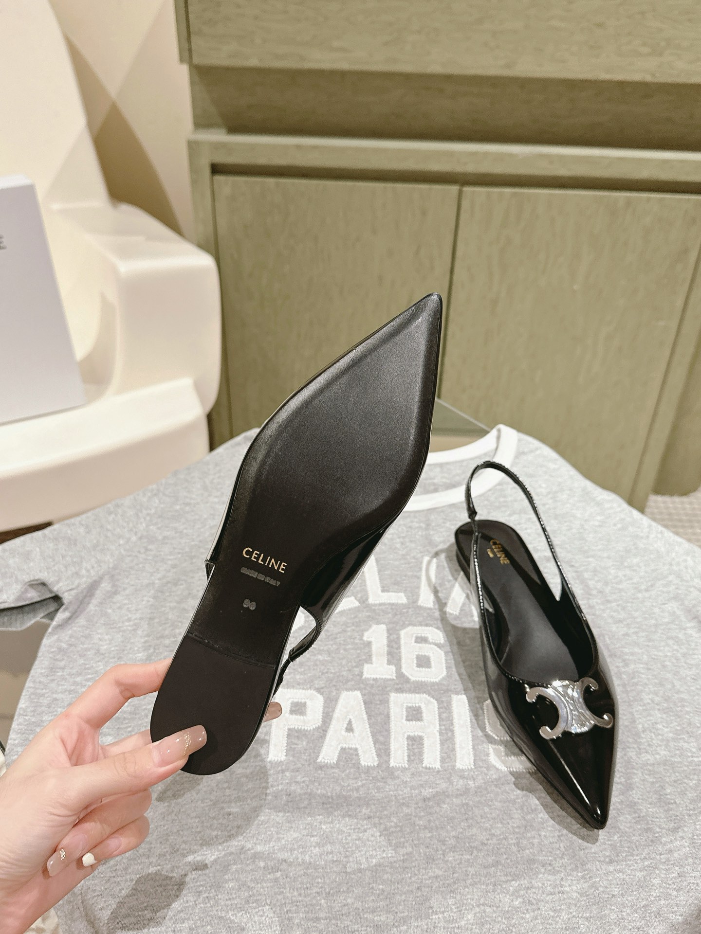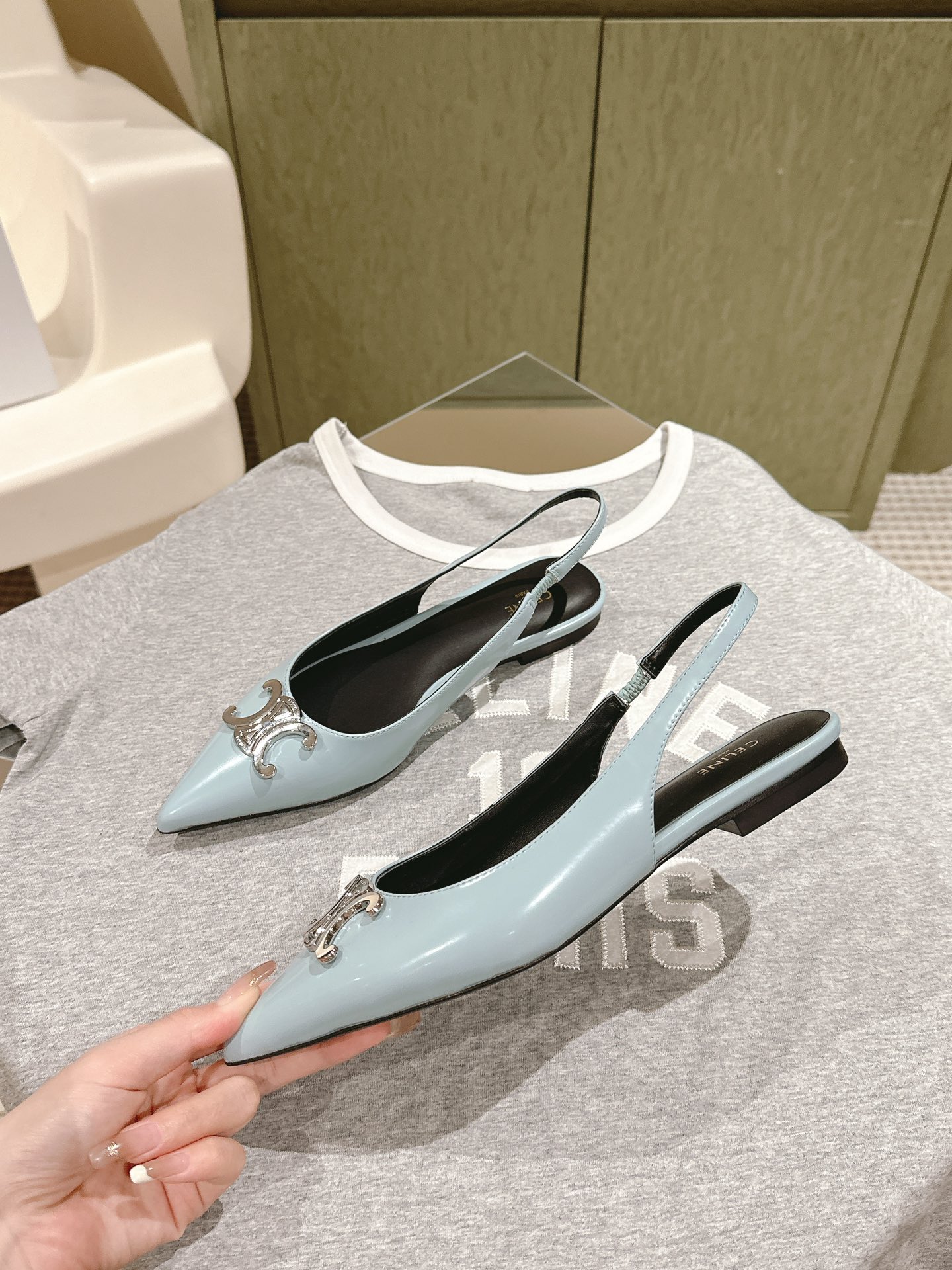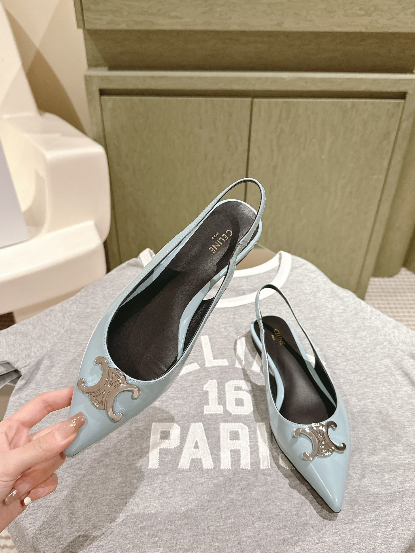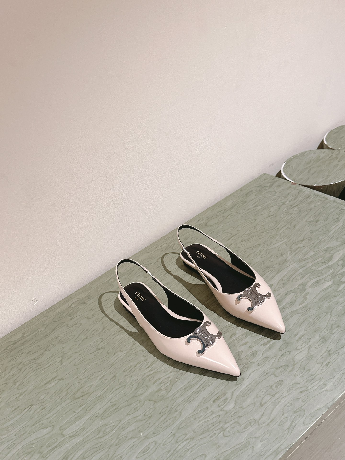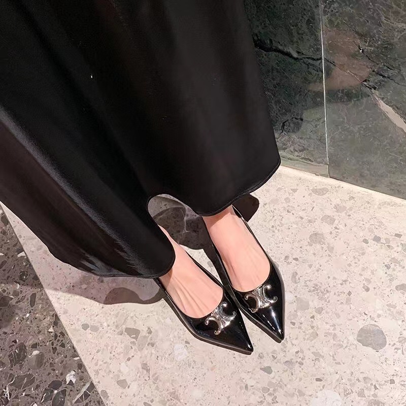CELINE 夏季银色凯旋门系列!思琳新款银色尖头高跟鞋 矮跟凯旋门鞋稀有的银色系列 好精致呀银色的凯旋门很低调黑色绝了,搭配小裙子牛仔裤都很不戳 你可以永远相信hedi的审美 传承经典法式美学的小猫跟 舒适度和美感upupup 大尺寸银色凯旋门也为经典造型注入了现代格调 牛皮/绸缎面 平底 意大利真皮大底