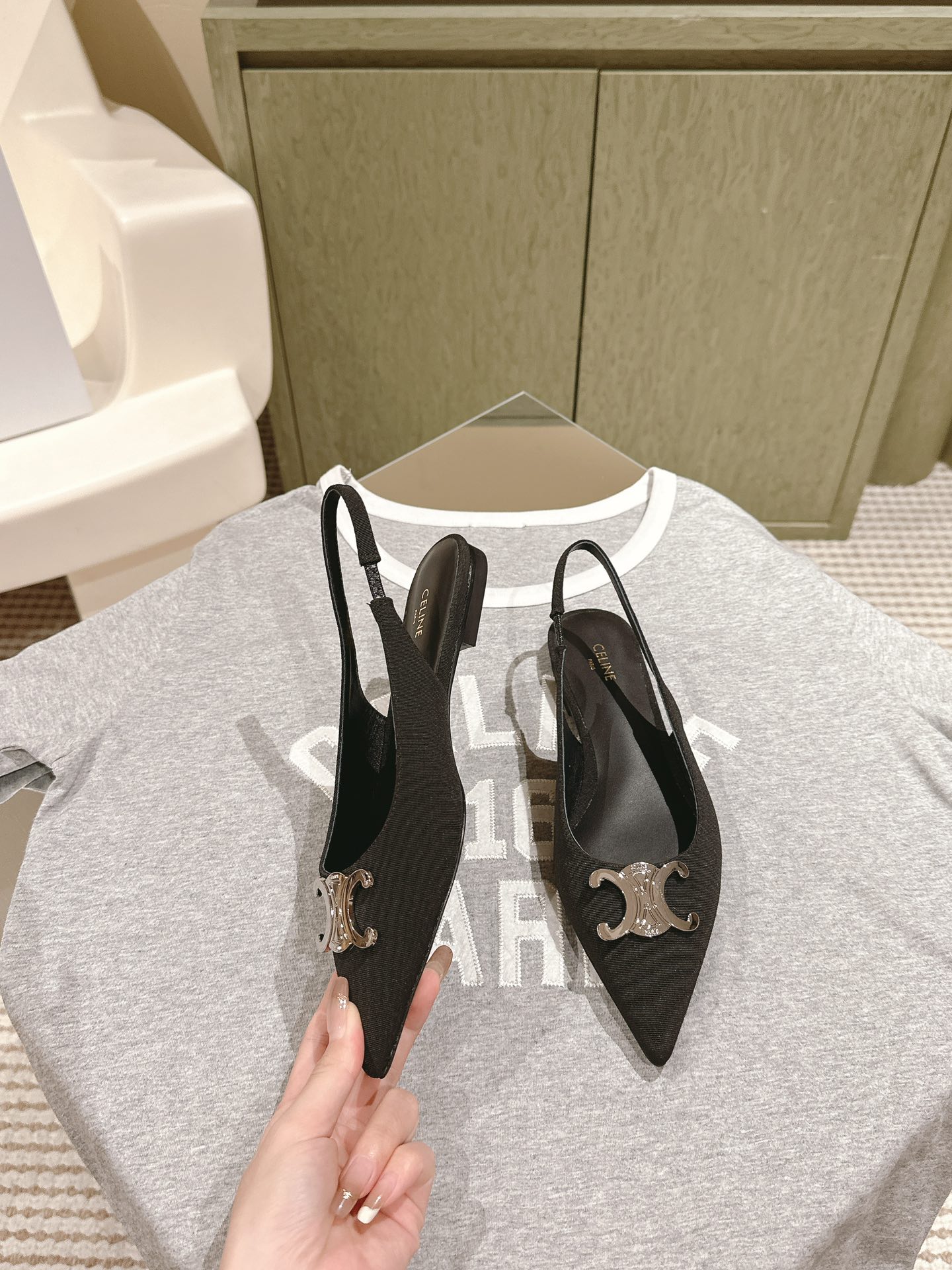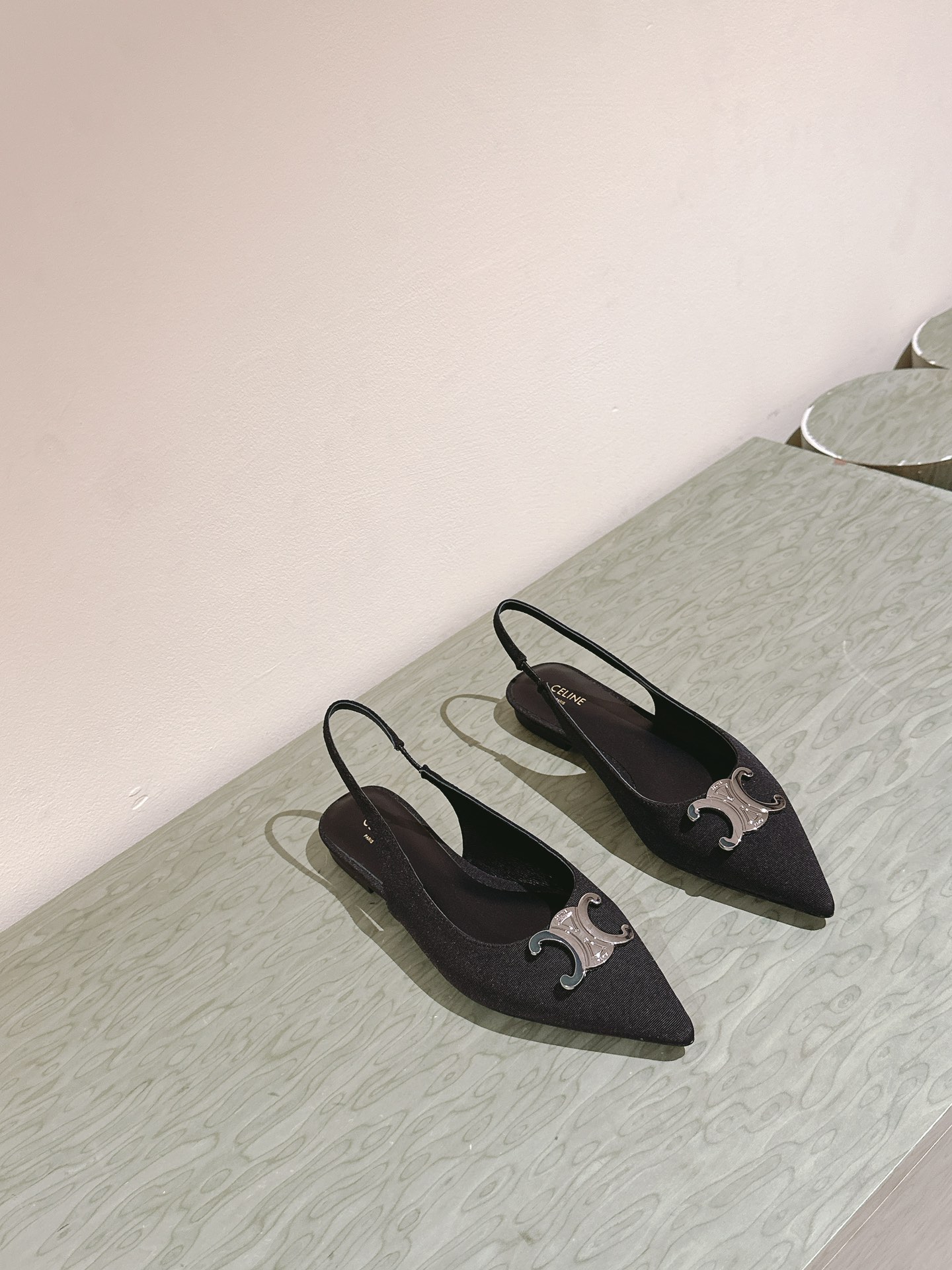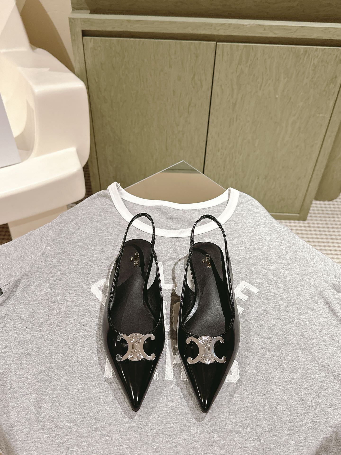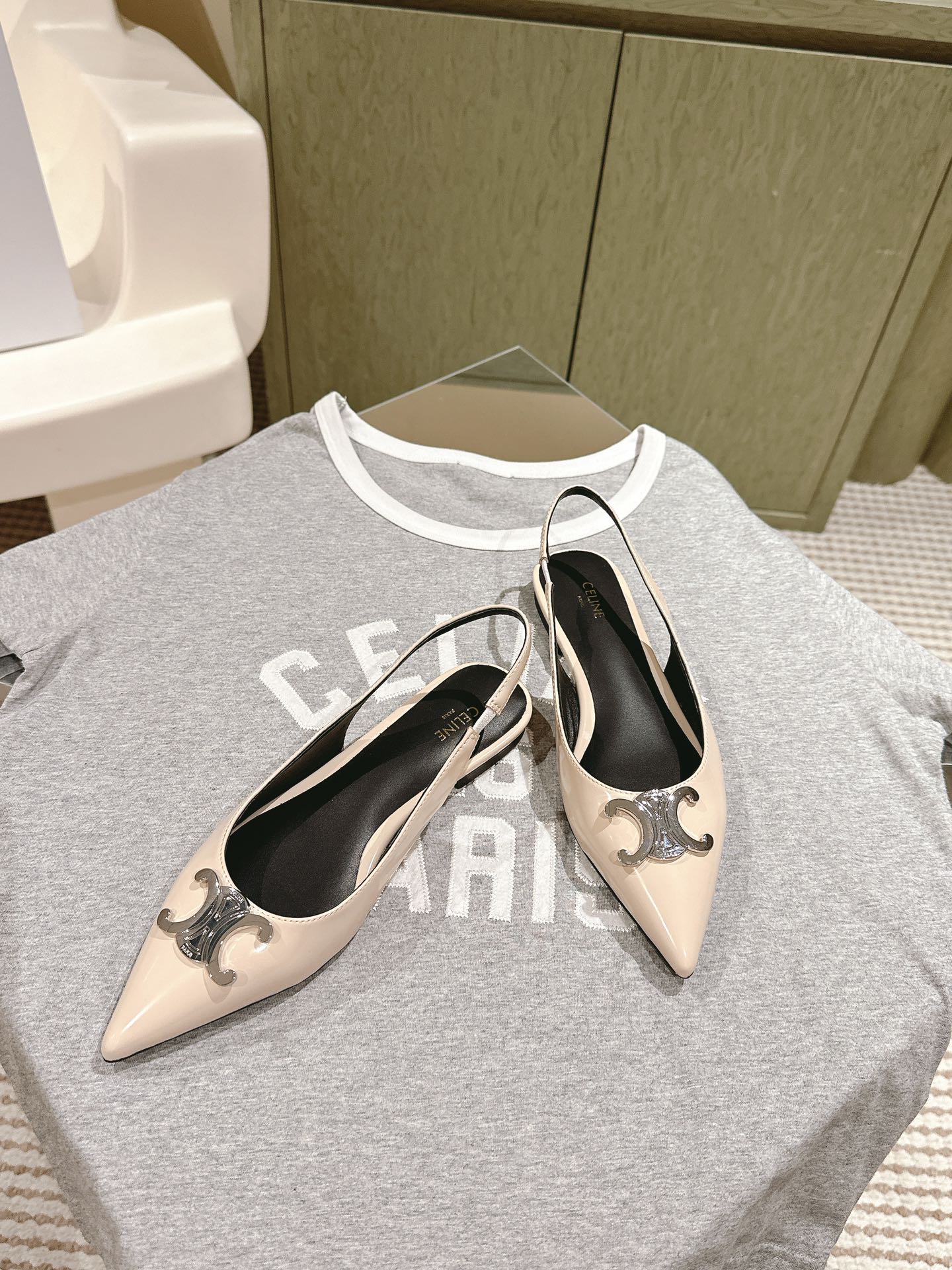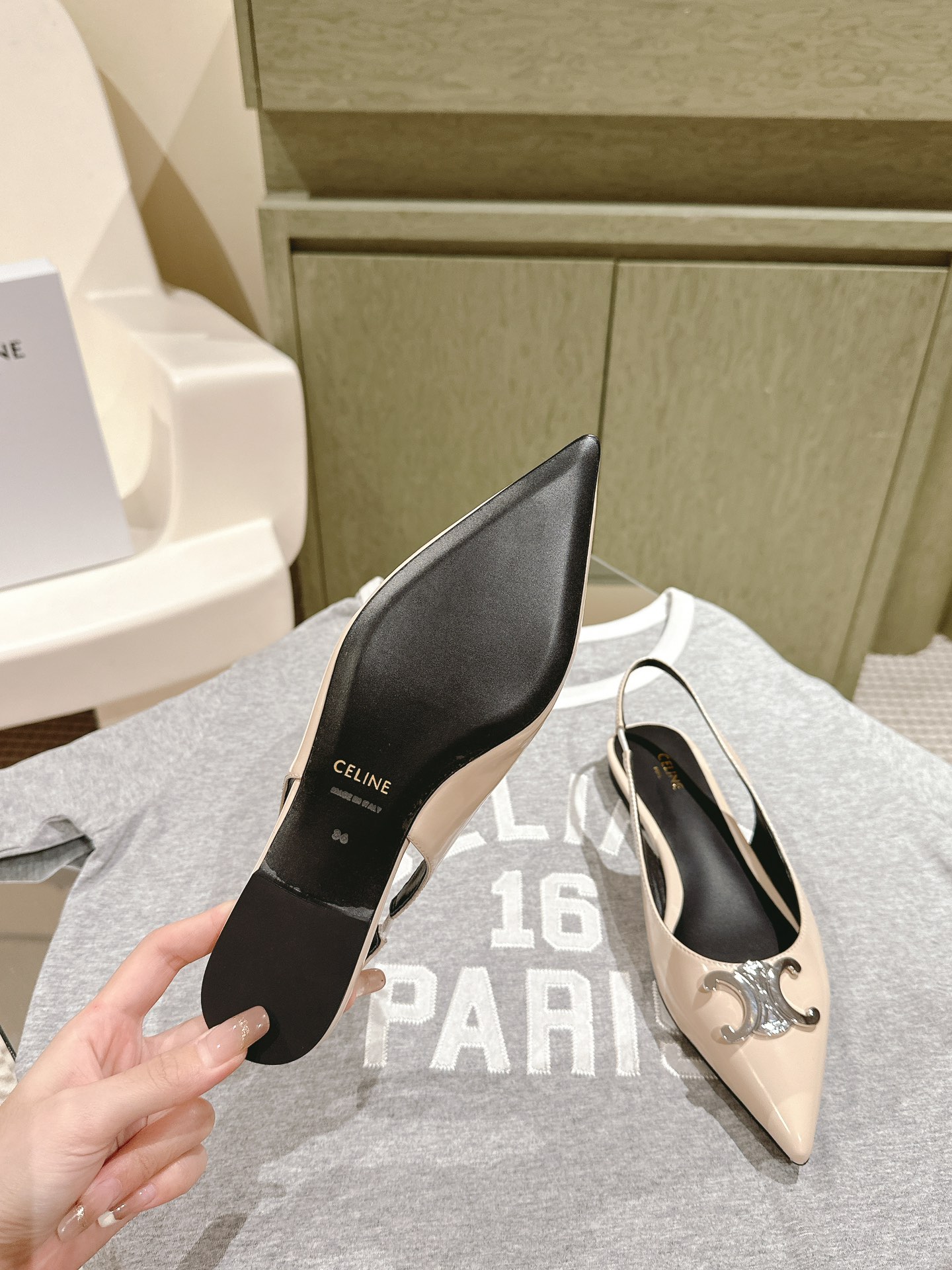 CELINE 夏季银色凯旋门系列!思琳新款银色尖头高跟鞋 矮跟凯旋门鞋稀有的银色系列 好精致呀银色的凯旋门很低调黑色绝了,搭配小裙子牛仔裤都很不戳 你可以永远相信hedi的审美 传承经典法式美学的小猫跟 舒适度和美感upupup 大尺寸银色凯旋门也为经典造型注入了现代格调 牛皮/绸缎面 平底 意大利真皮大底