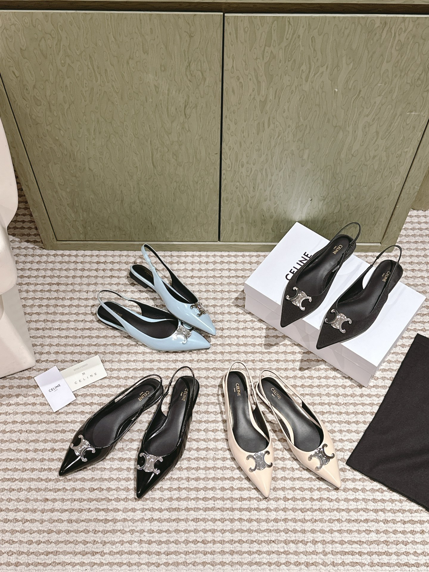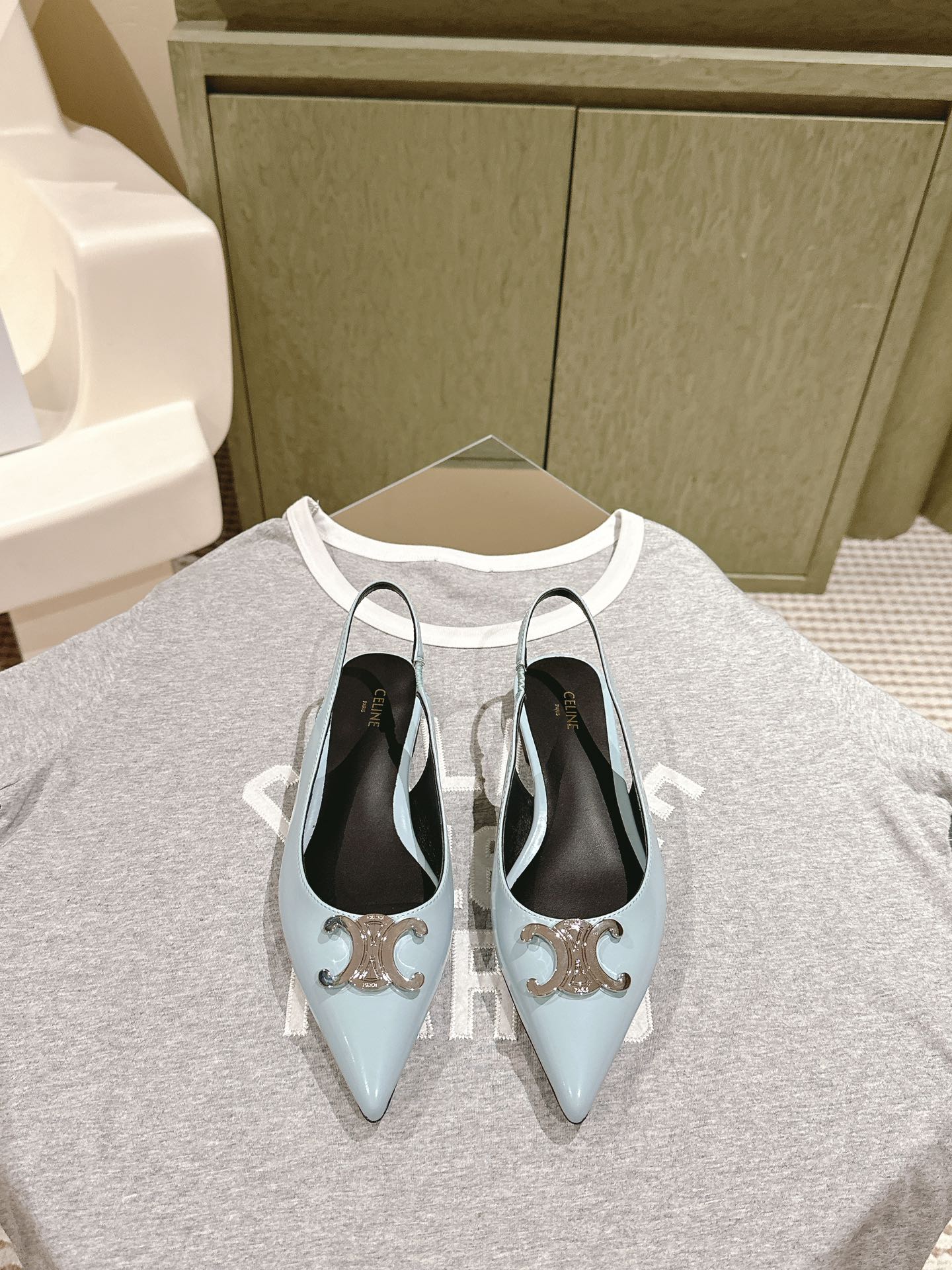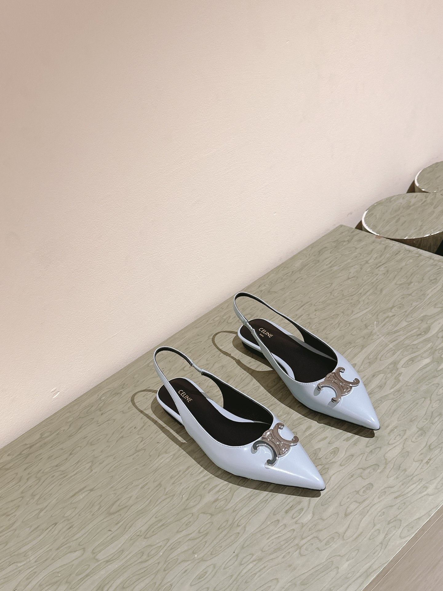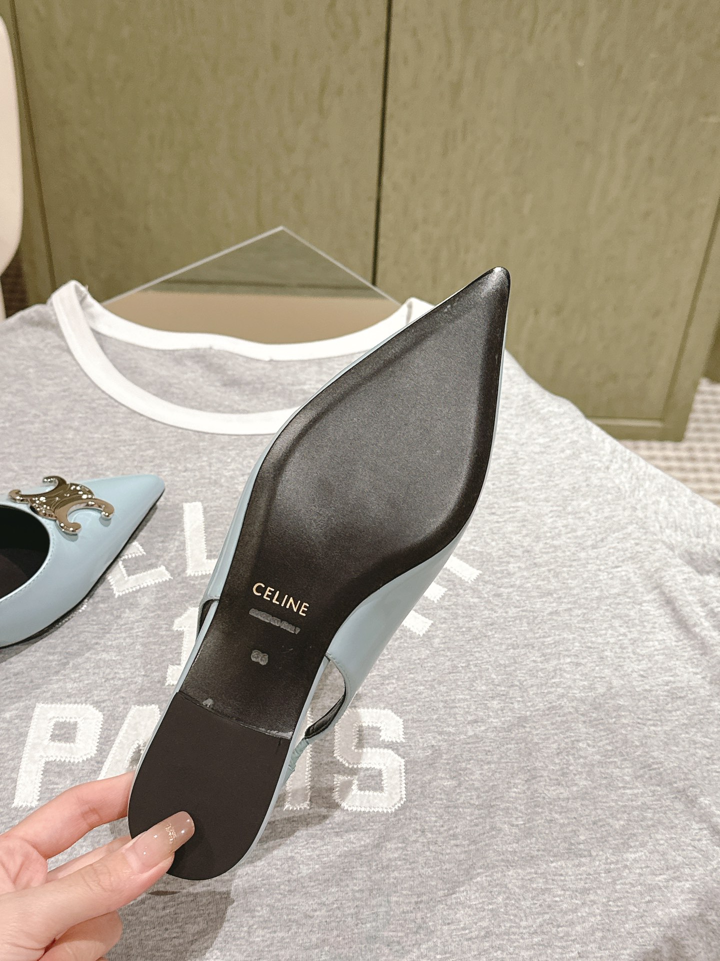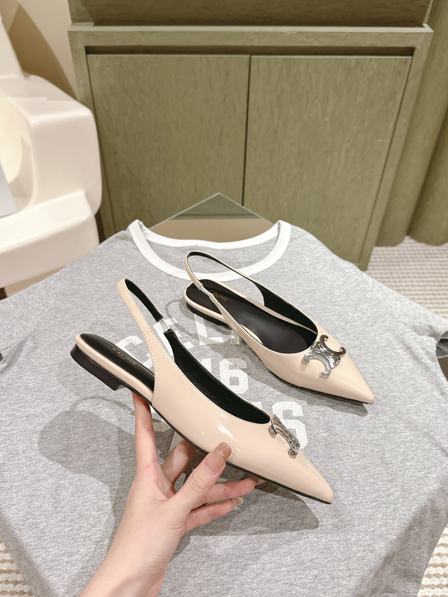 CELINE 夏季银色凯旋门系列!思琳新款银色尖头高跟鞋 矮跟凯旋门鞋稀有的银色系列 好精致呀银色的凯旋门很低调黑色绝了,搭配小裙子牛仔裤都很不戳 你可以永远相信hedi的审美 传承经典法式美学的小猫跟 舒适度和美感upupup 大尺寸银色凯旋门也为经典造型注入了现代格调 牛皮/绸缎面 平底 意大利真皮大底