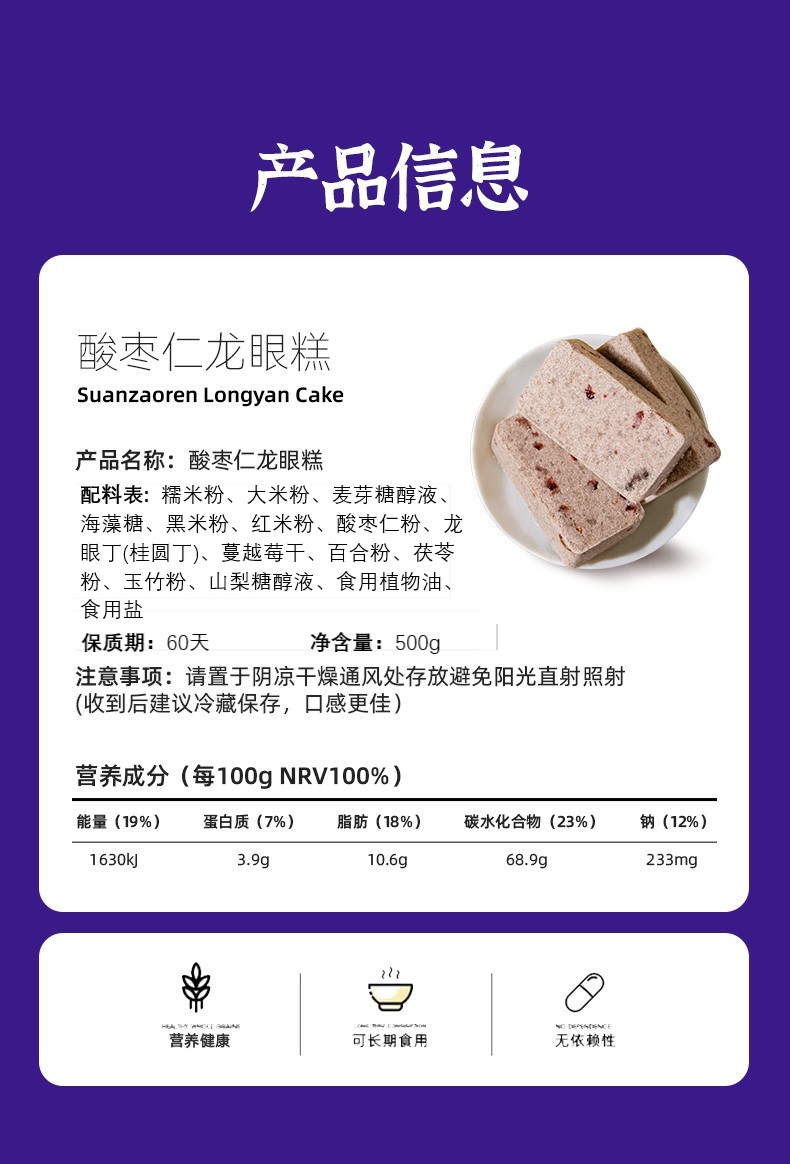 酸枣仁龙眼糕每晚安静守护 养生小零食 睡眠小能手 坚持古法 手工制作 不添加蔗糖健康零食代餐加班点心2包1kg