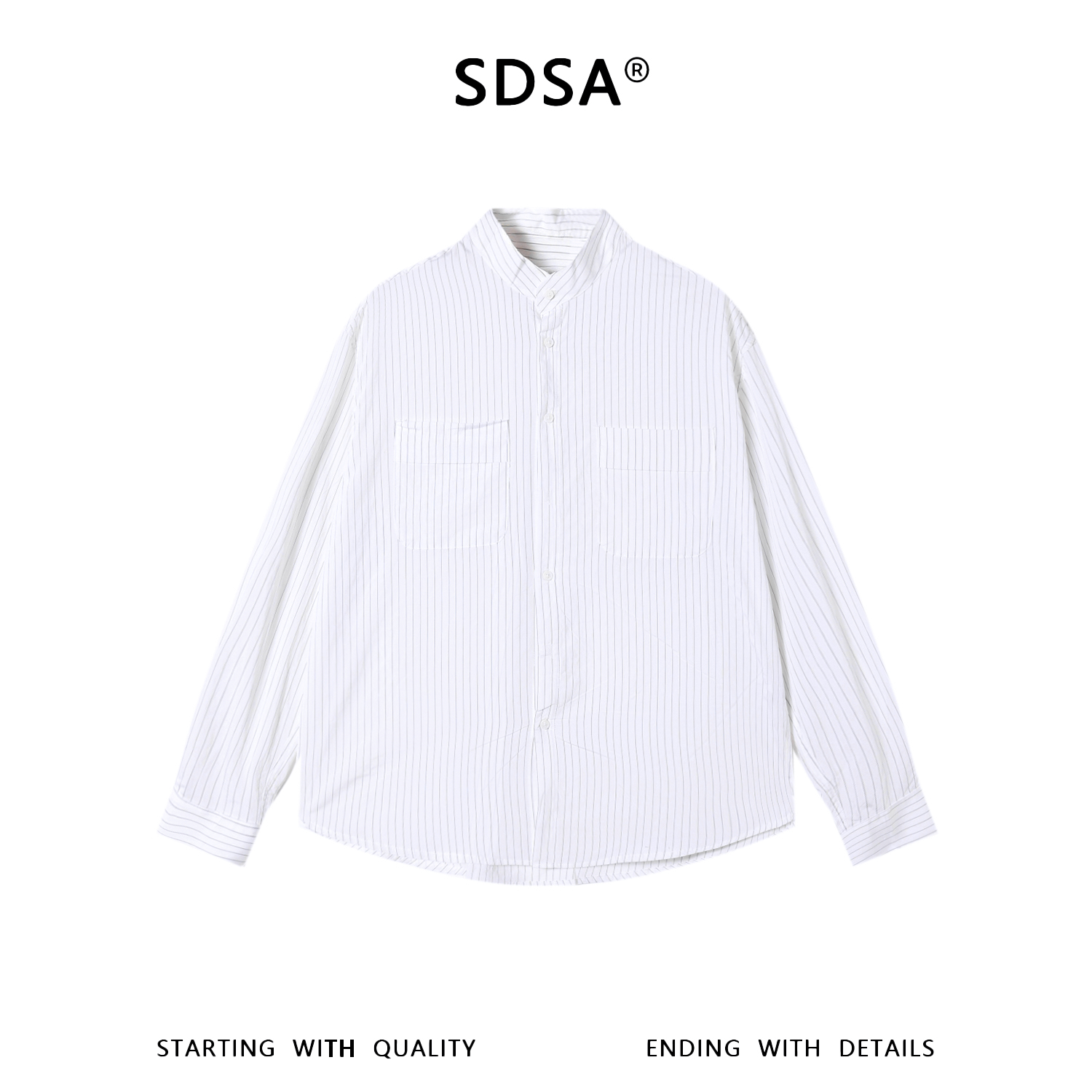 SDSA男装2026新款高贵轻奢日系复古撞色条纹立领长袖衬衫百搭休闲