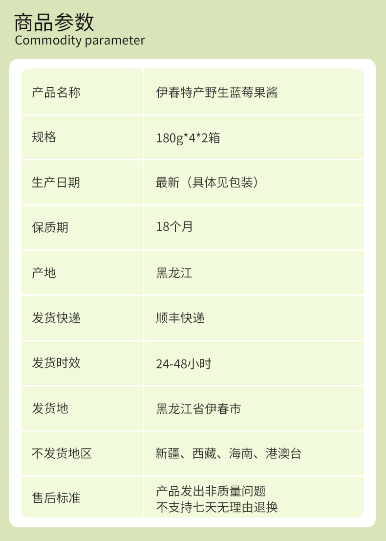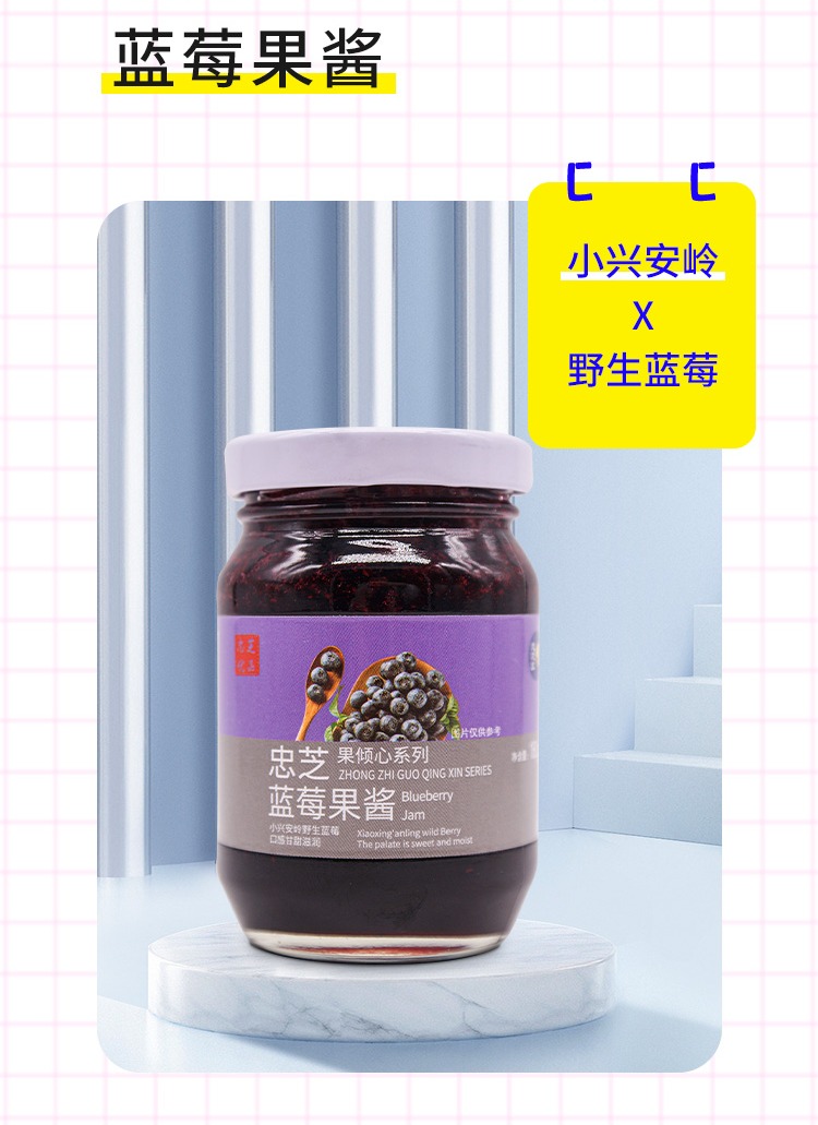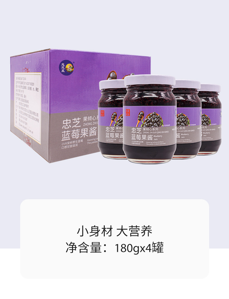 【东北特产】野生蓝莓果酱 小兴安岭东北伊春特产 180g*4罐*2箱 大颗粒果肉 解馋过瘾 0脂肪面包酱