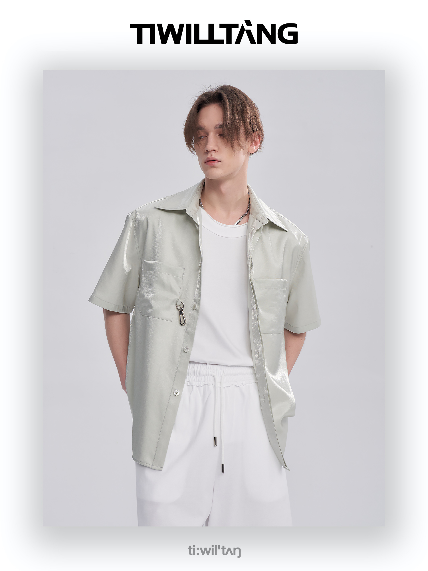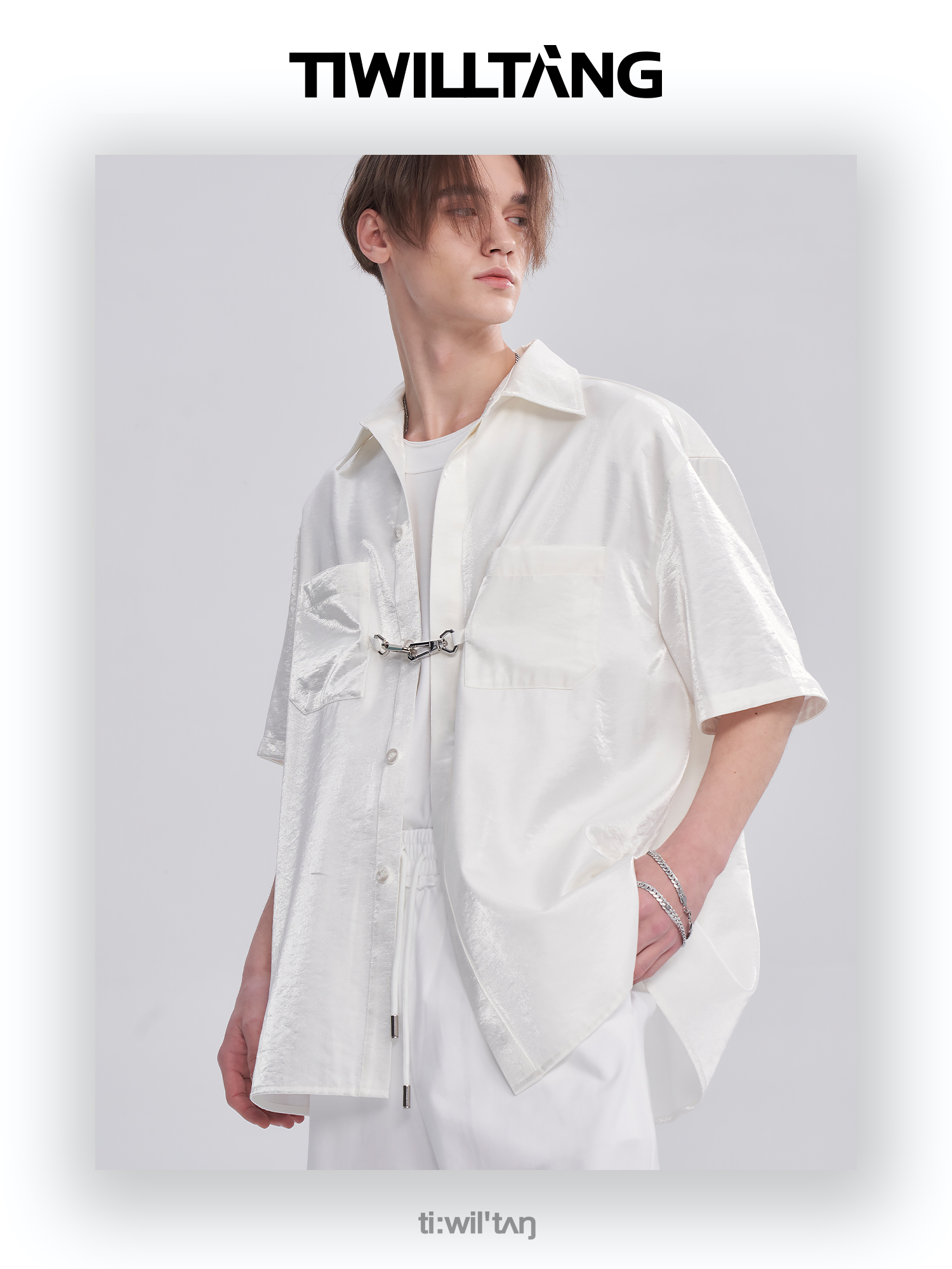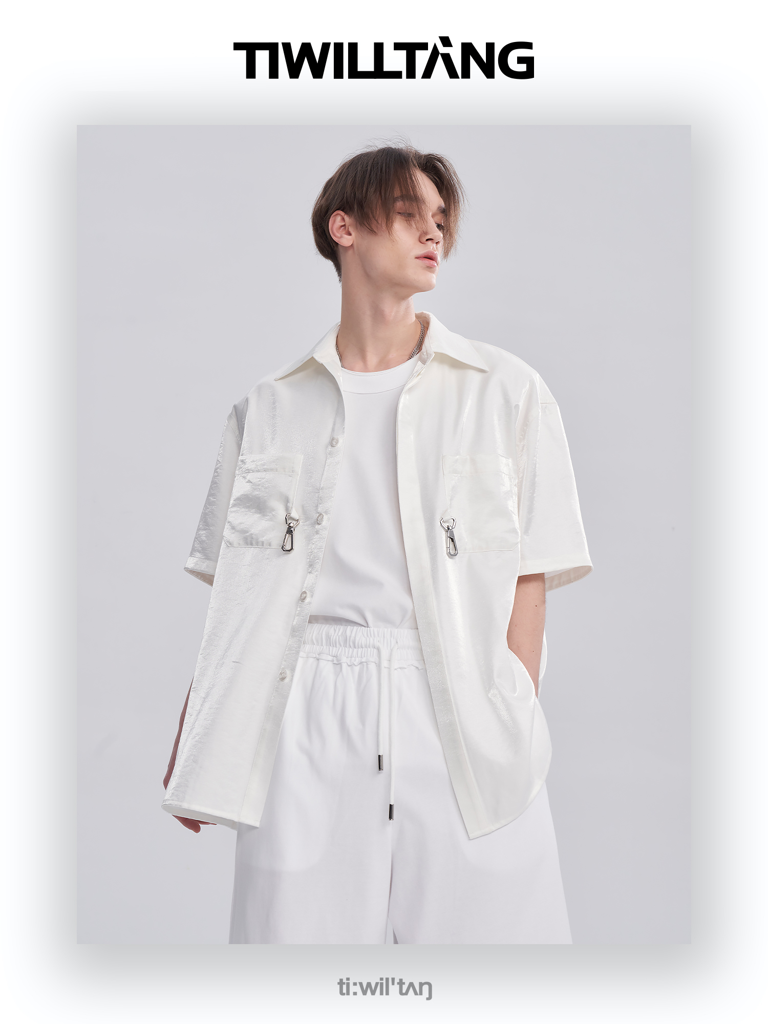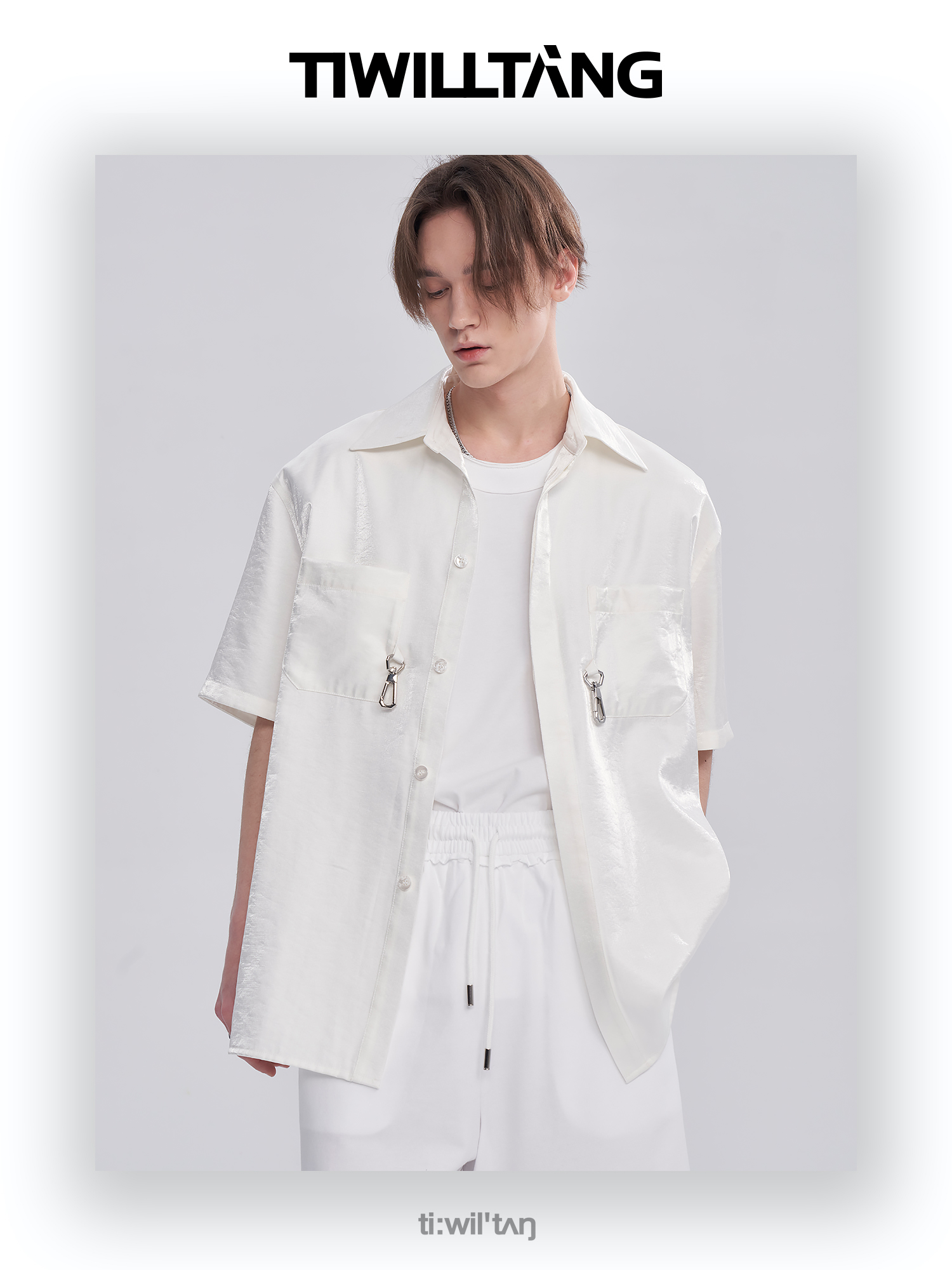 TIWILLTANG启世录ANEW 新中式流光衬衫质感套装男白色