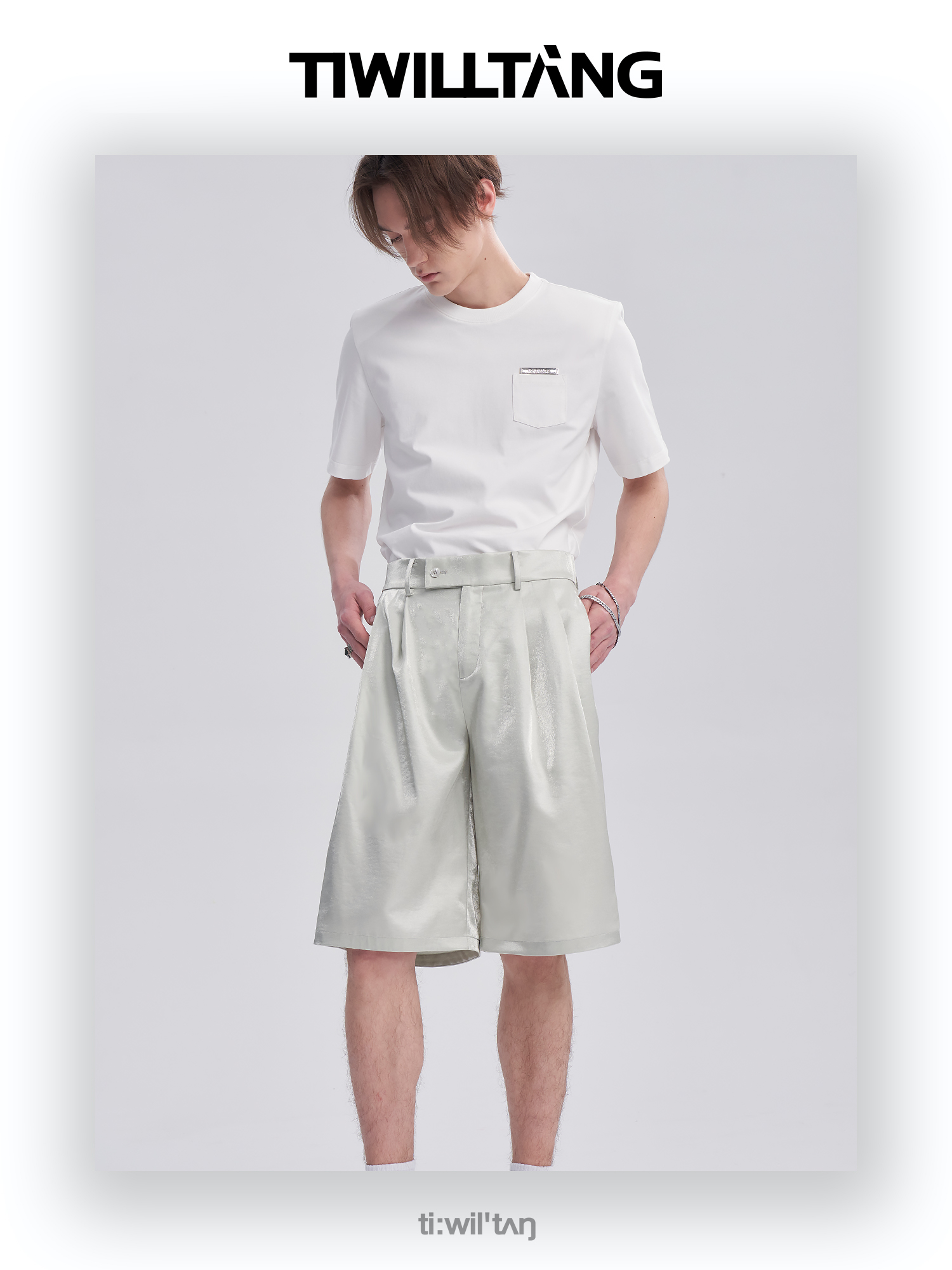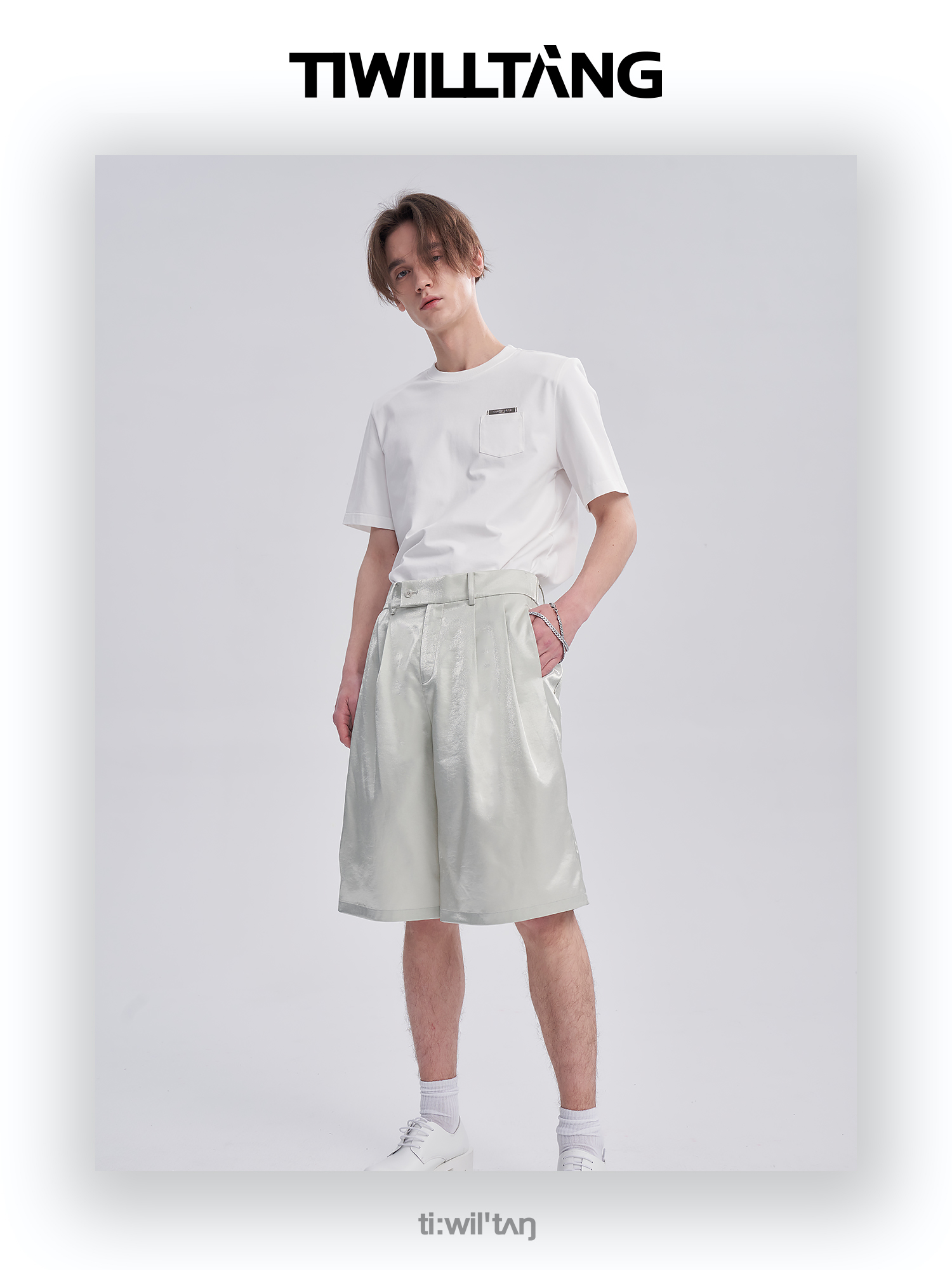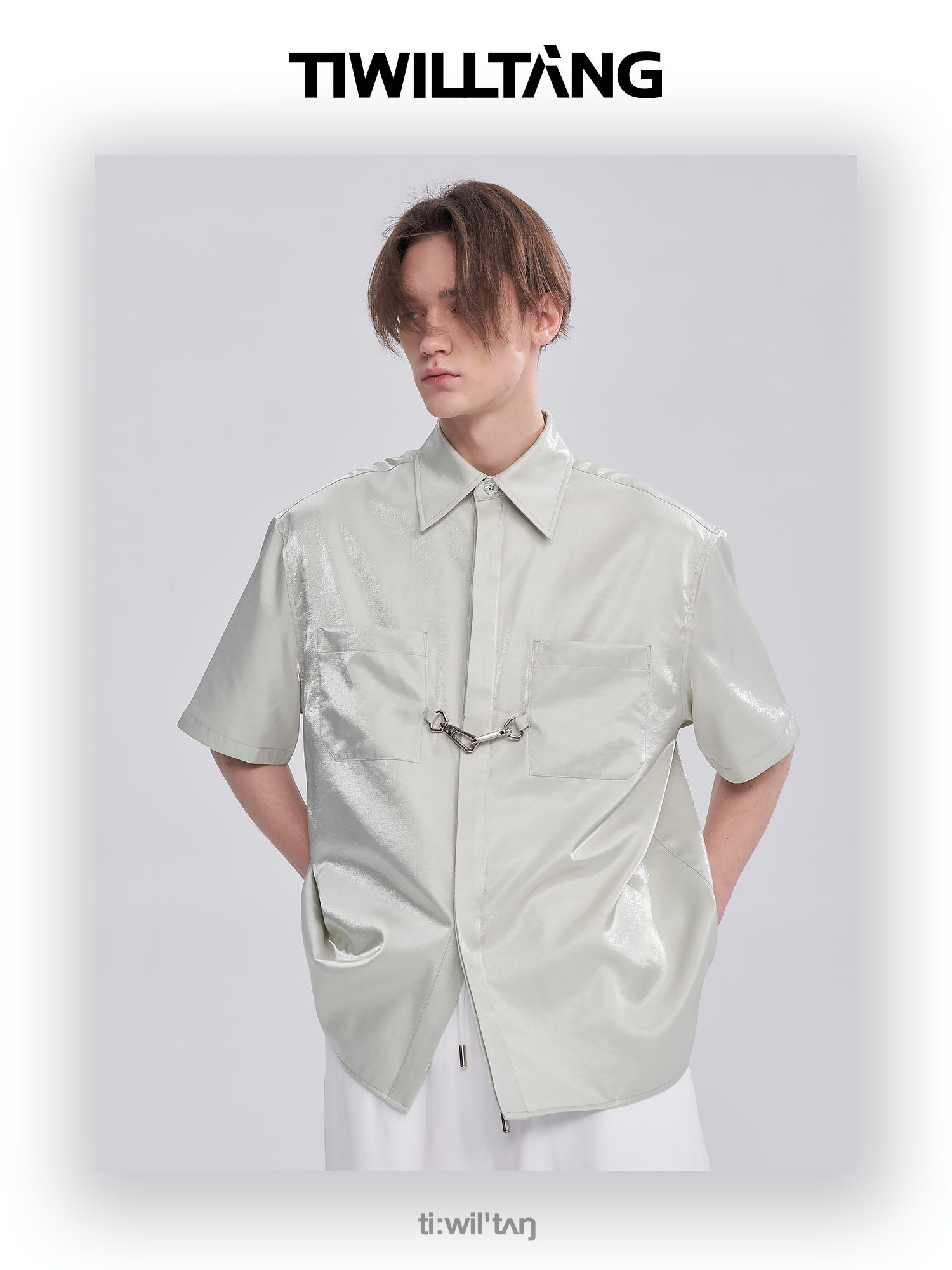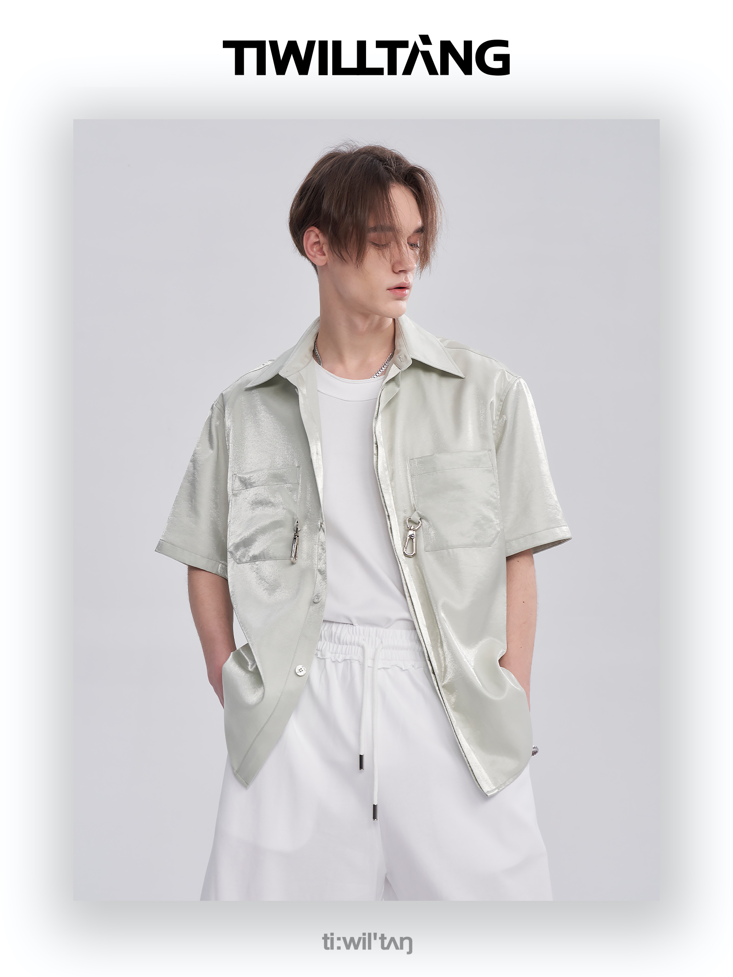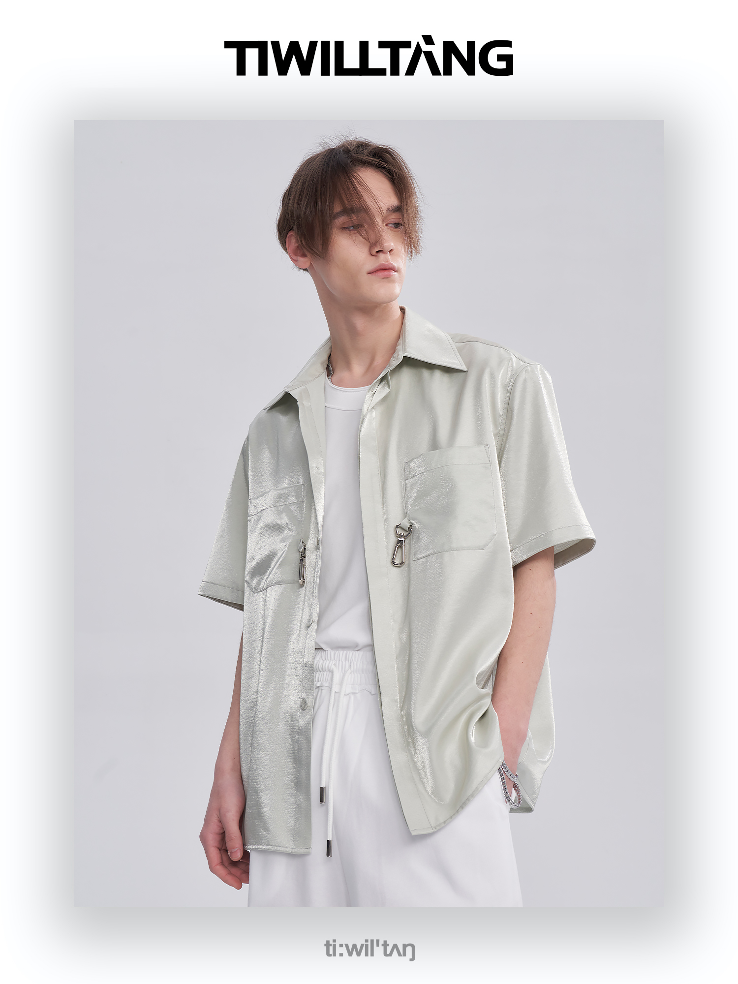 TIWILLTANG启世录ANEW 新中式流光衬衫质感套装男白色