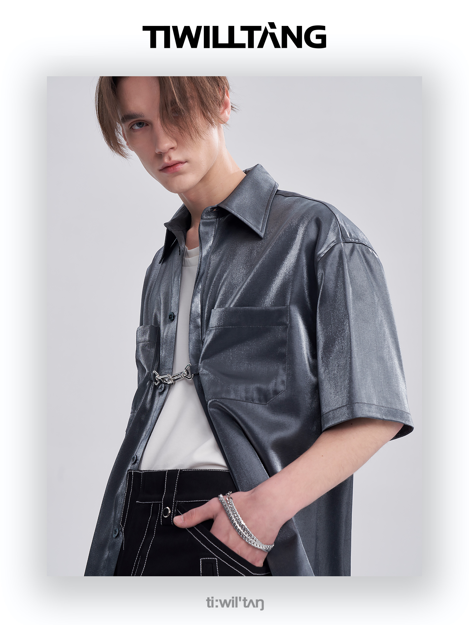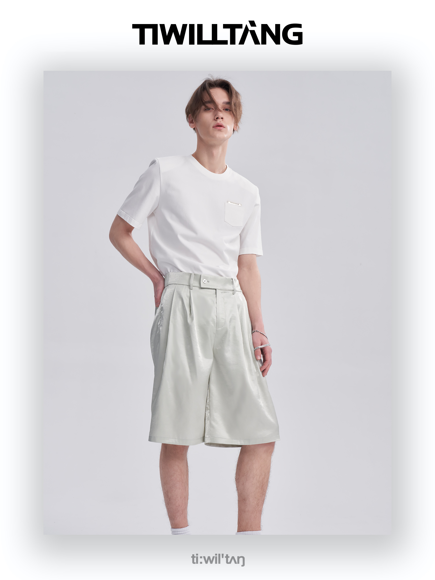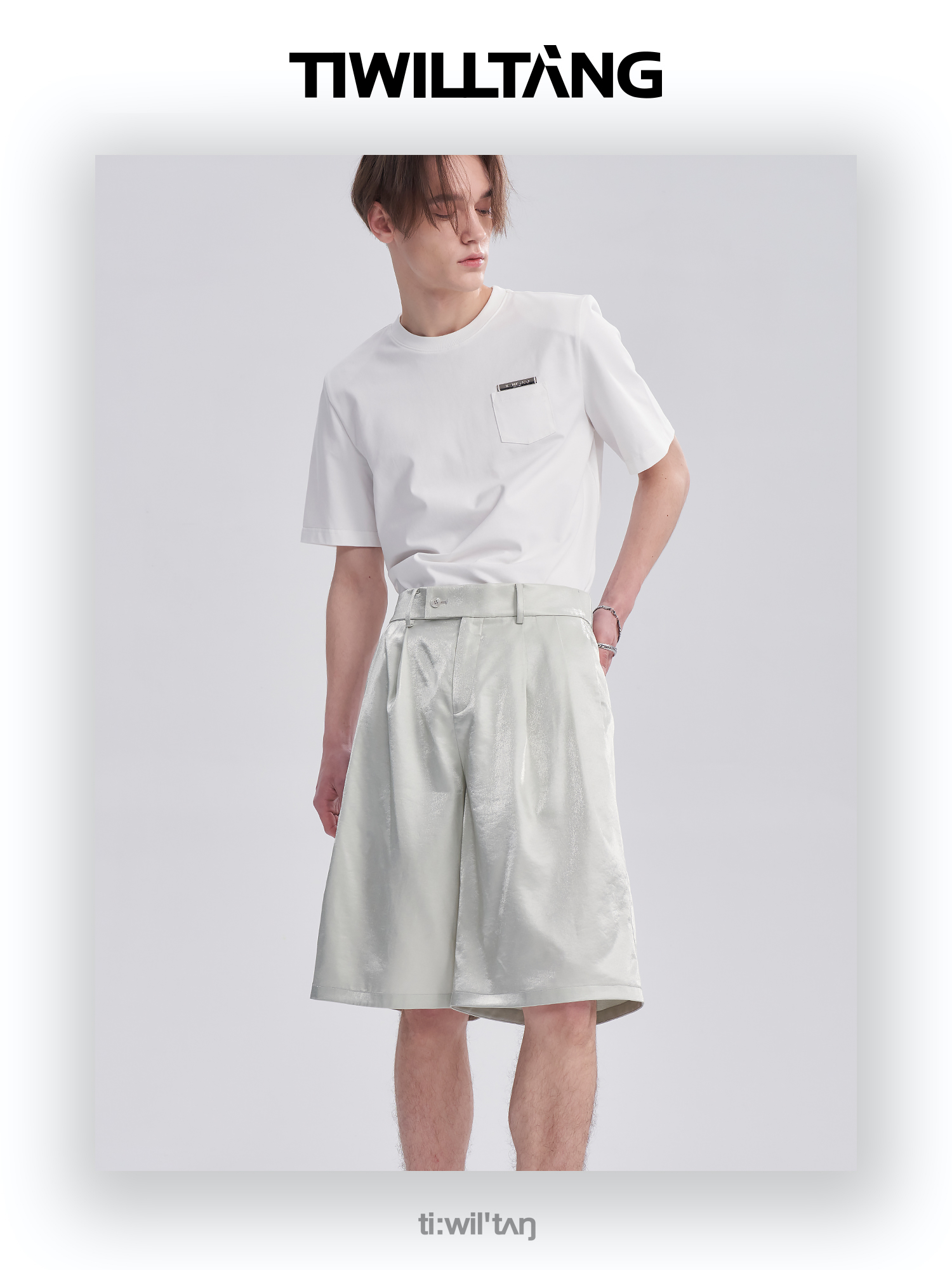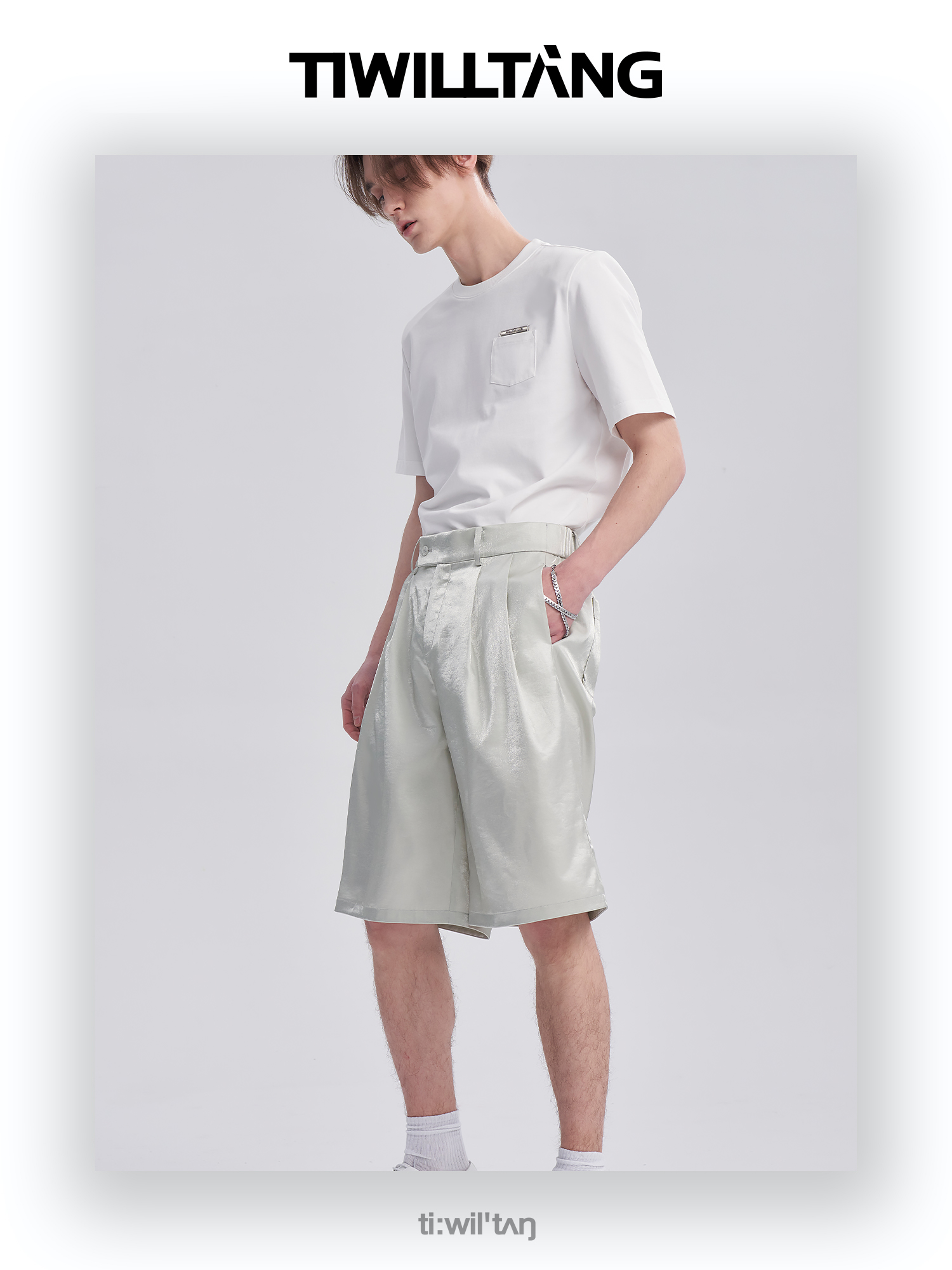 TIWILLTANG启世录ANEW 新中式流光衬衫质感套装男白色