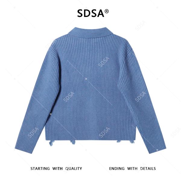 72500SDSA男士秋冬新款痞帅男装纯色polo领毛衣下摆流苏设计百搭针织衫
