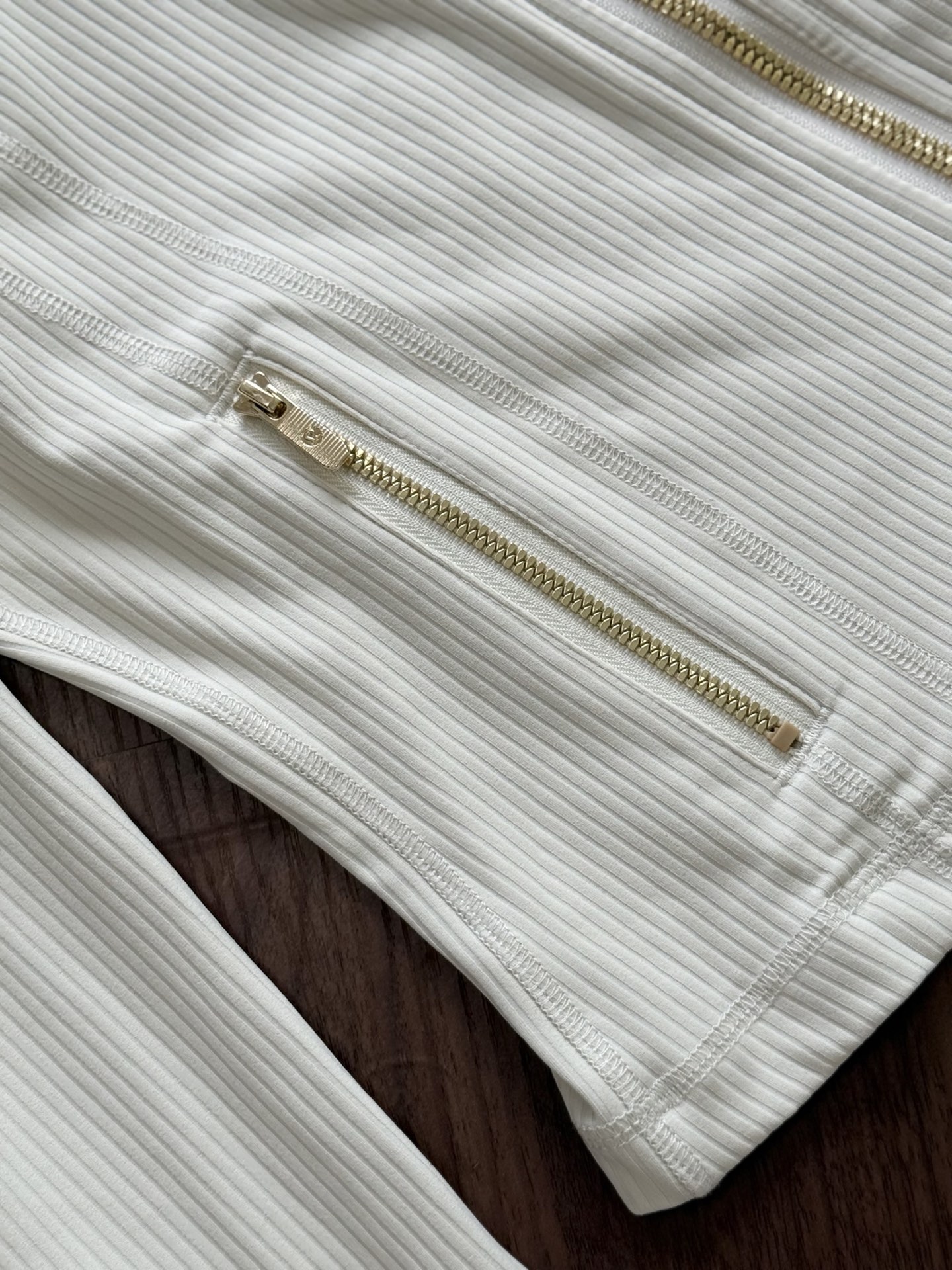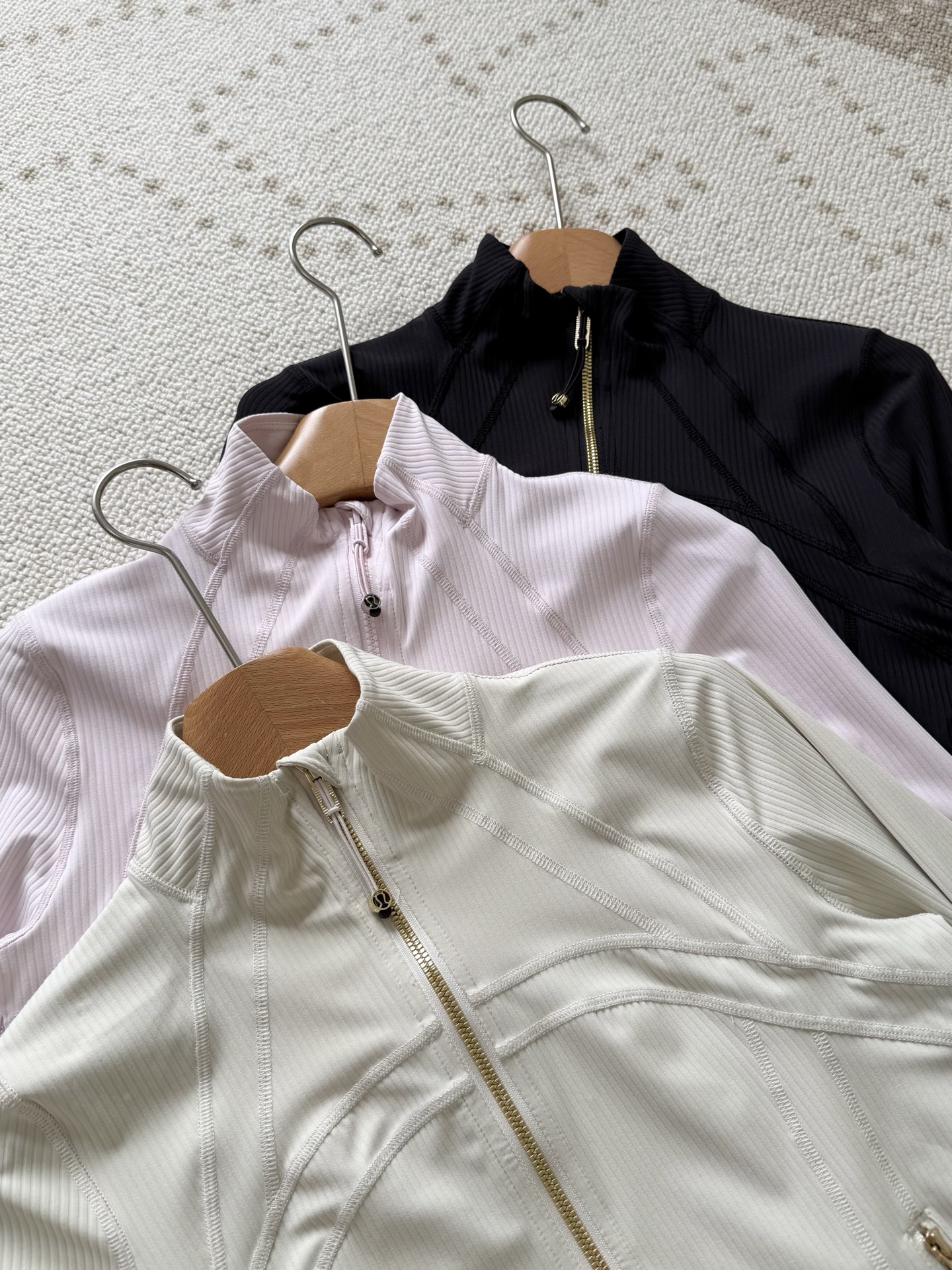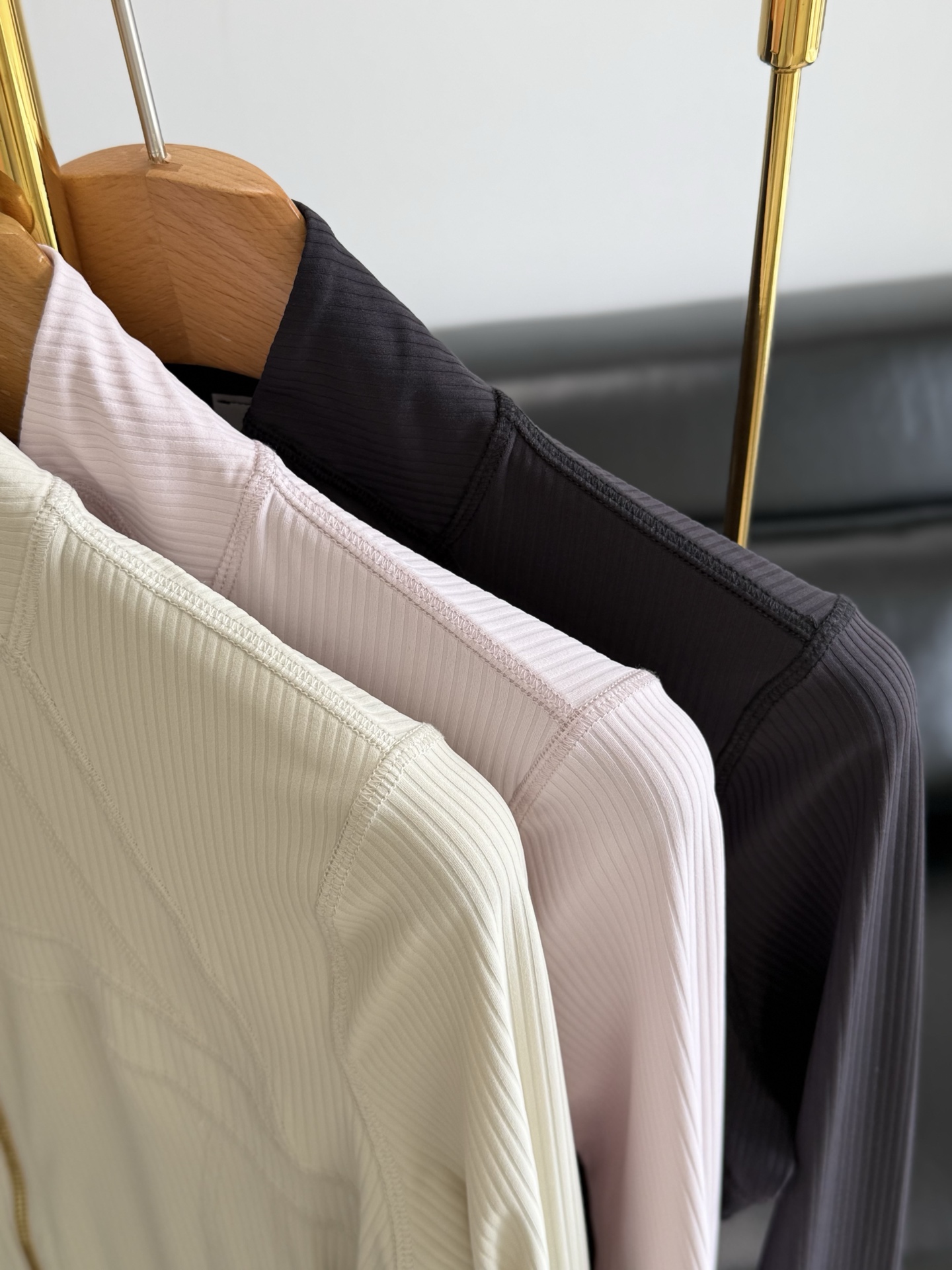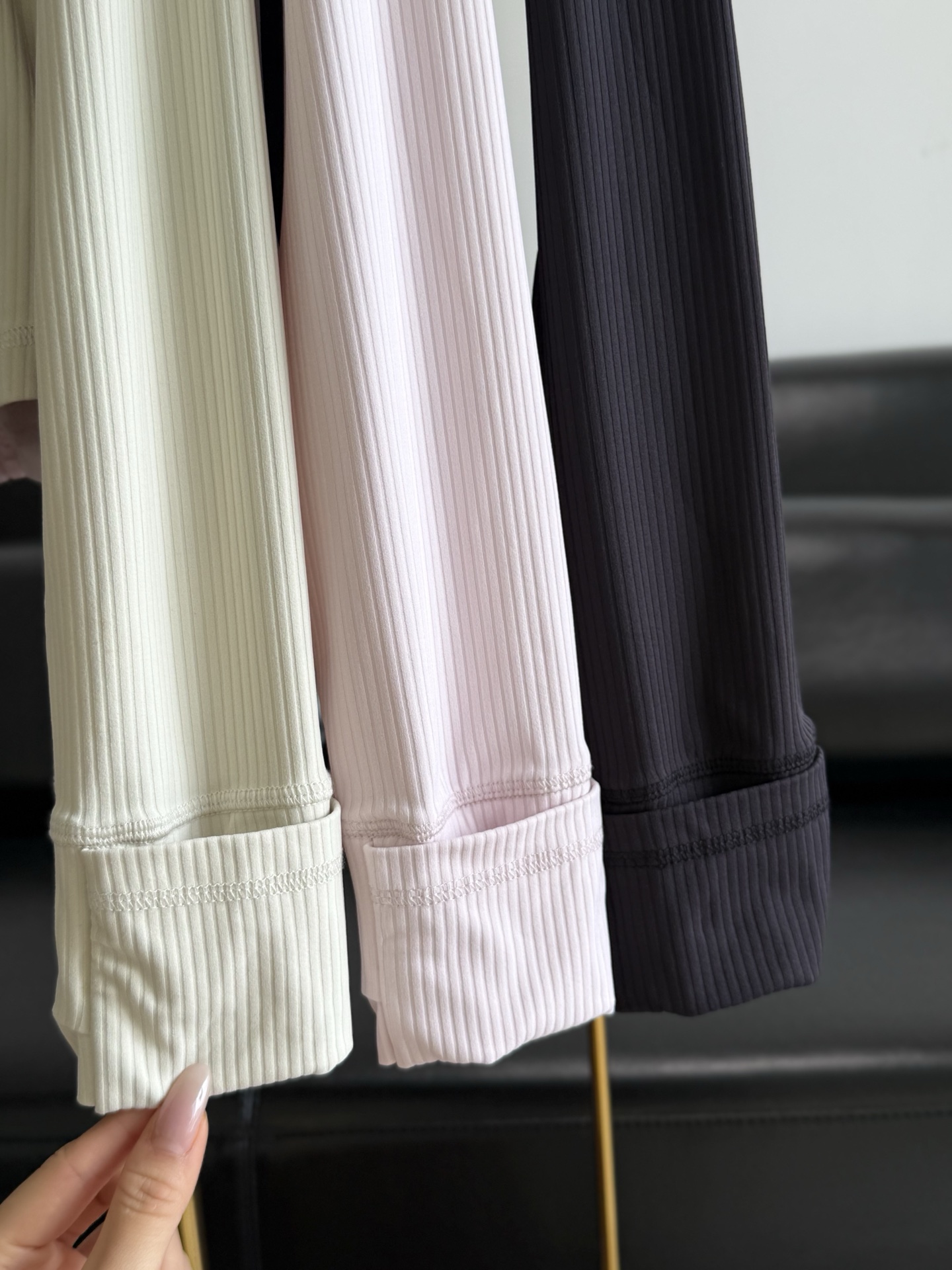 罗纹Nulu™面料触感柔滑,具有芯吸性能,带有四面弹力 添加Lycra氨纶,舒适伸展触感软糯顺滑,自带呼吸感,坑条紧密有型,上身足够亲肤同时吸湿透气,具有良好的回弹性,穿着舒适,久穿久洗不易变形褪色。
