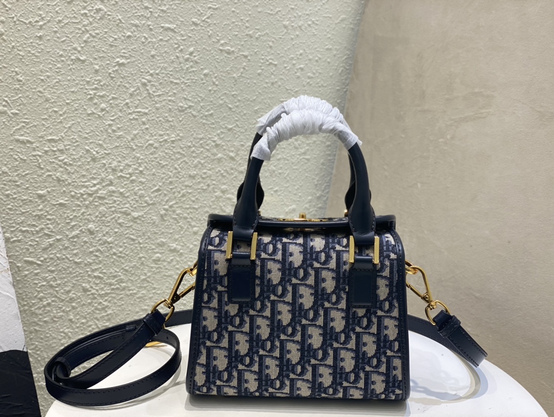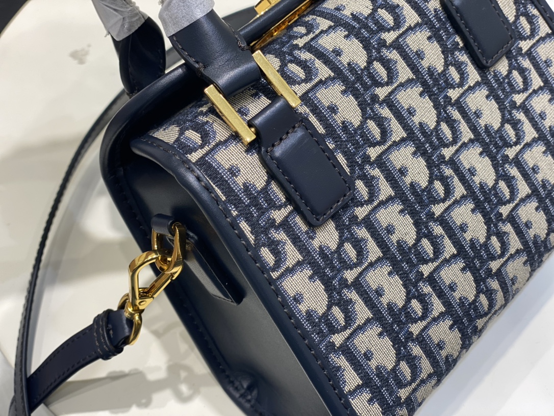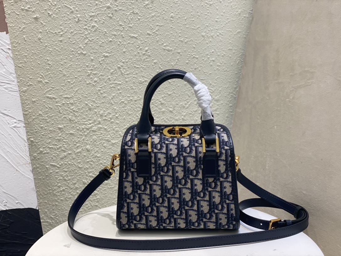 这款 CD 手袋是二零二三秋季成衣系列新品,实用高雅,丰富了旅行经典系列。采用蓝色 Oblipue 印花面料精心制作,顶部CD 五金锁扣,彰显 Dior 的精湛工艺。内部优雅宽敞,小号款式,搭配硬质皮革顶部手柄和可调节、可拆卸的肩带,可手提、肩背或斜挎,是日常的理想良伴.