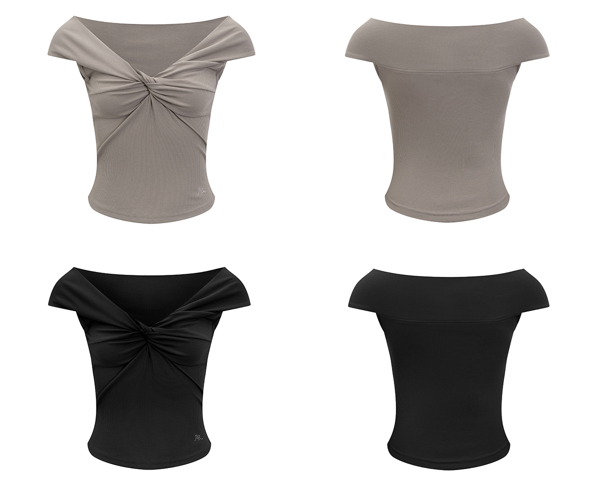Ariseism 美式复古设计感露肩短袖t恤女夏季新款修身一字肩上衣