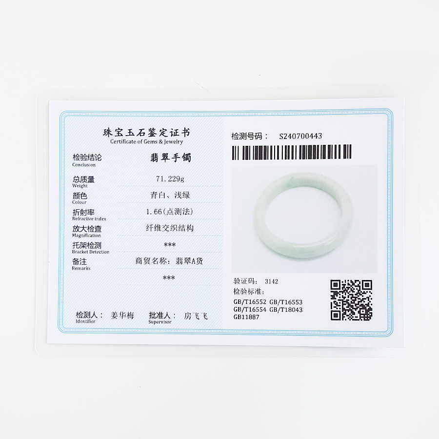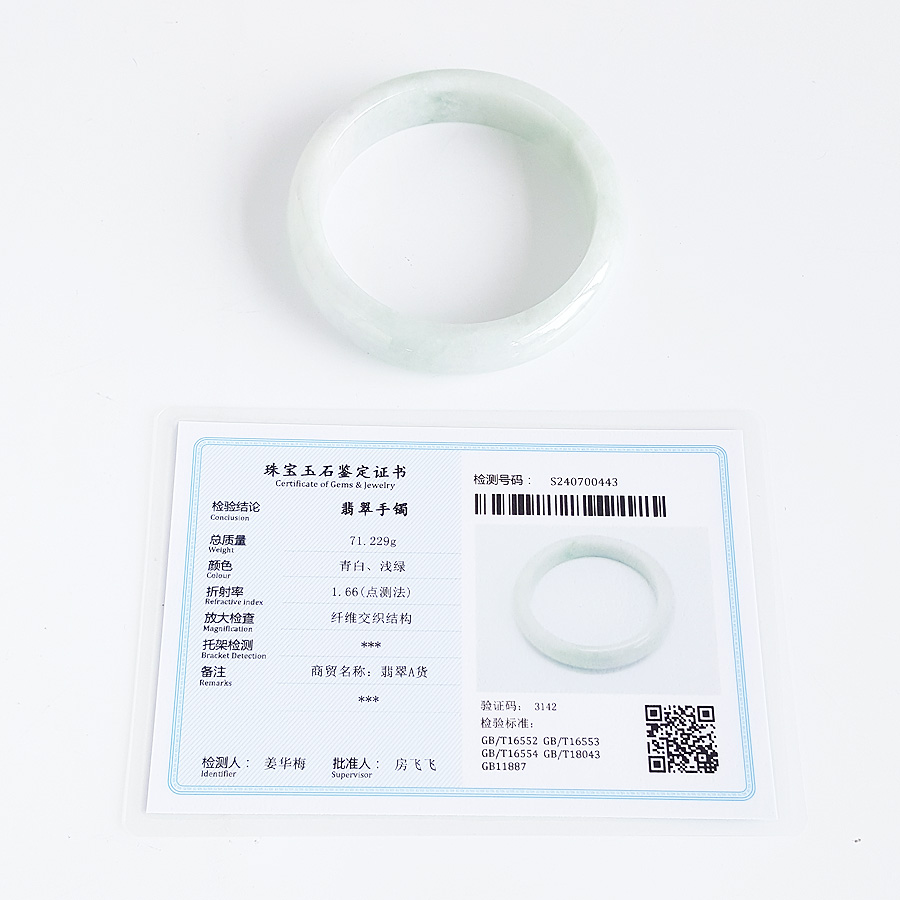 名称 | 天然细腻无杂裂糯种浅绿底61.5号翡翠手镯 |