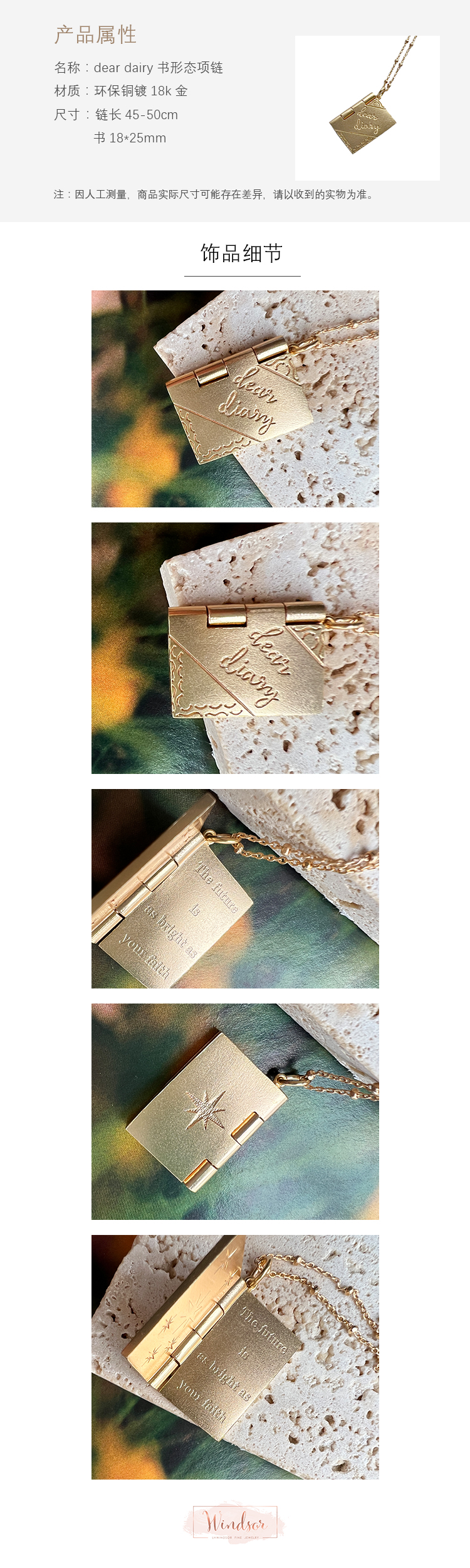 温莎珠宝 dear dairy书形态项链原创设计创意项链