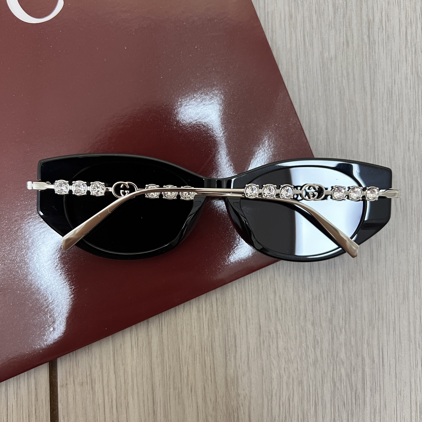 2025-2026Gucci大爆款墨镜,倪妮海报官宣款 早秋眼镜系列将品牌典藏设计中的别致廓形与现代精髓巧妙糅为一体。这款猫眼造型太阳眼镜采用贴合设计,以黑色醋纤和银色调金属打造,匠心融蕴水晶铆钉和镂空互扣式双G。咱们家仍然是代工厂实力渠道,专柜同宗货源。品质完美,物超所值,这就是最好的说服力 商品细节 •黑色跟玳瑁色光泽感黑色进口醋酸纤维板材面框.是棉花的提取物 •银色光泽感银色调金属镜腿,饰水晶铆钉和镂空互扣式双G •纯灰色镜片 • 100% UVA/UVB防护 • GG1970SA 尺寸:54-19-145