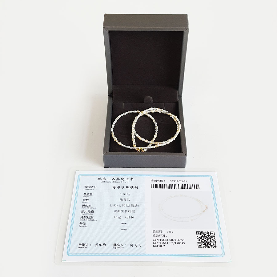 名称 | AU750黄金镶天然混彩巴洛克海水珍珠小米珠项链 |