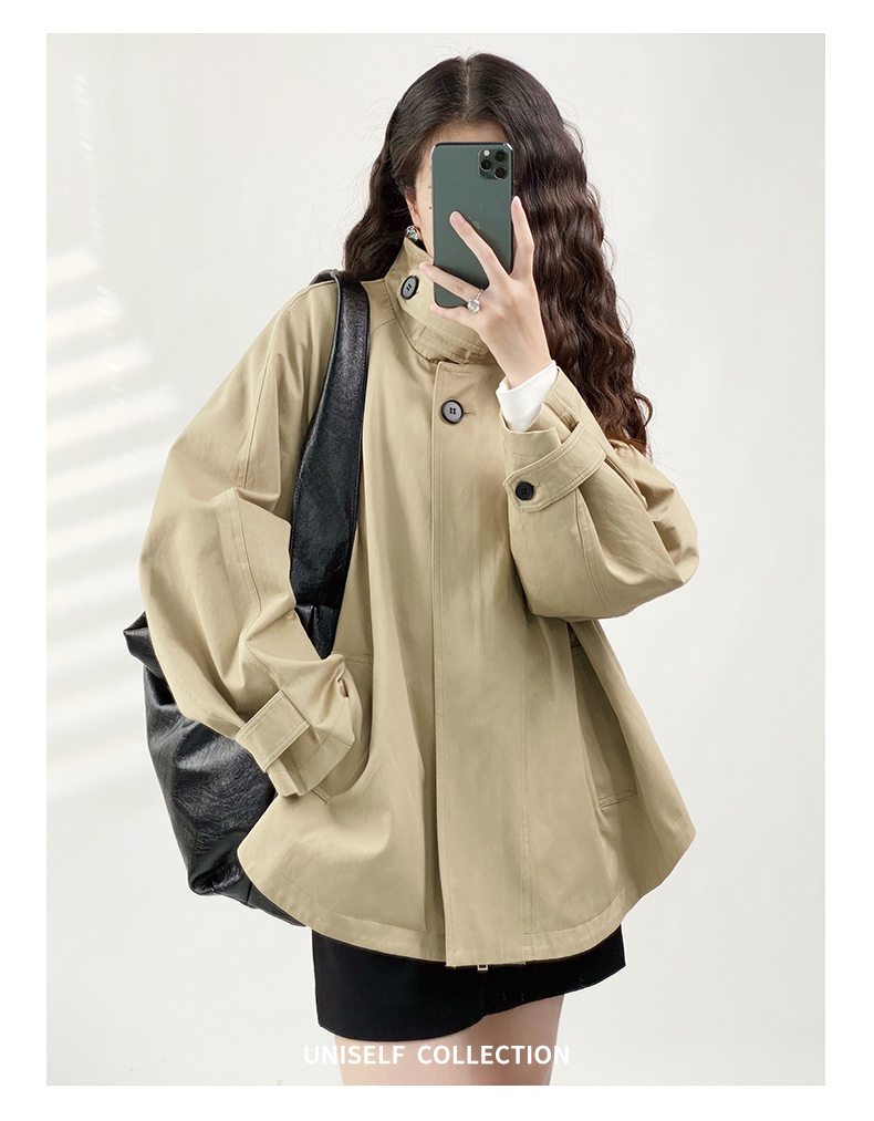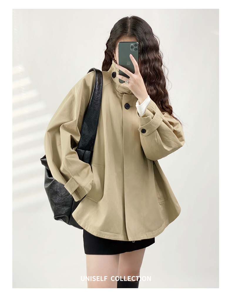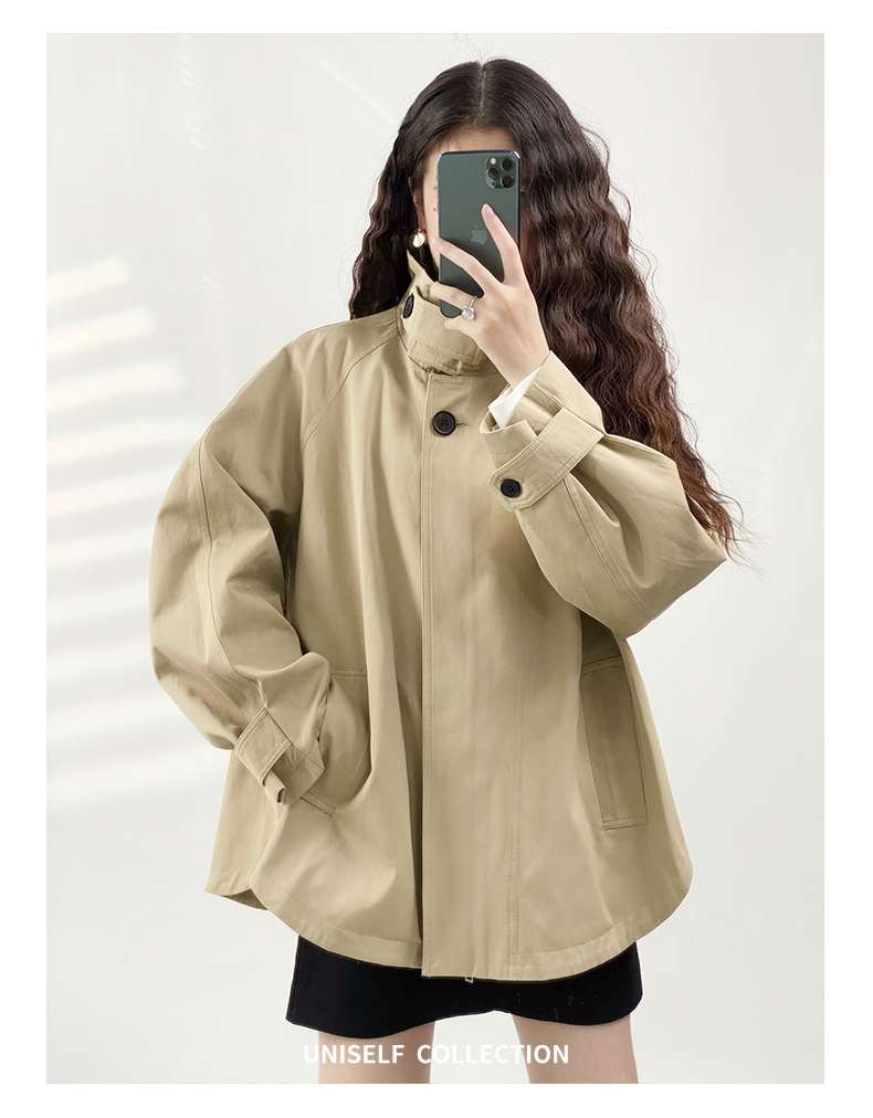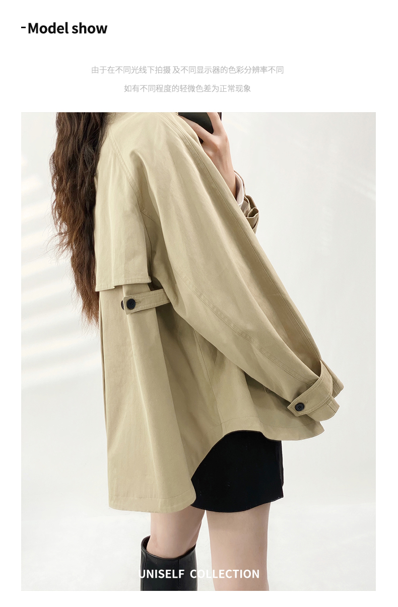 YX【定制17天】斗篷式A字风衣插肩袖外套女2023秋季新款小个子复古时尚短款上衣