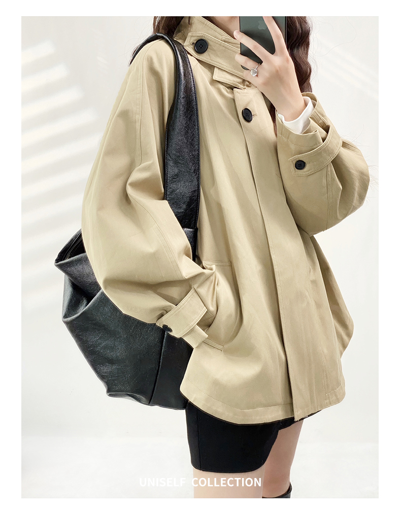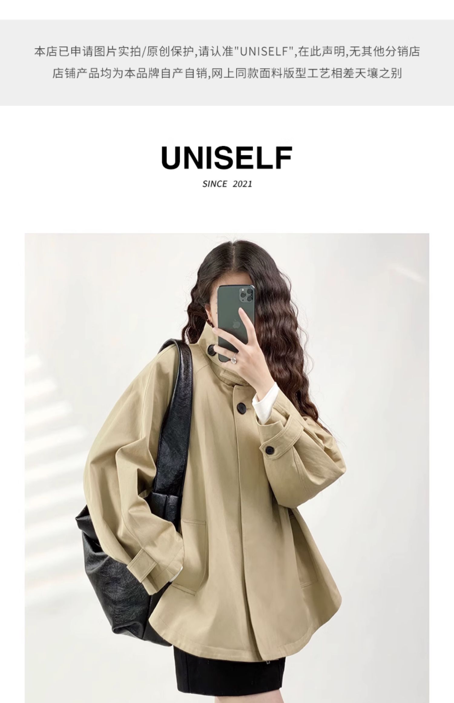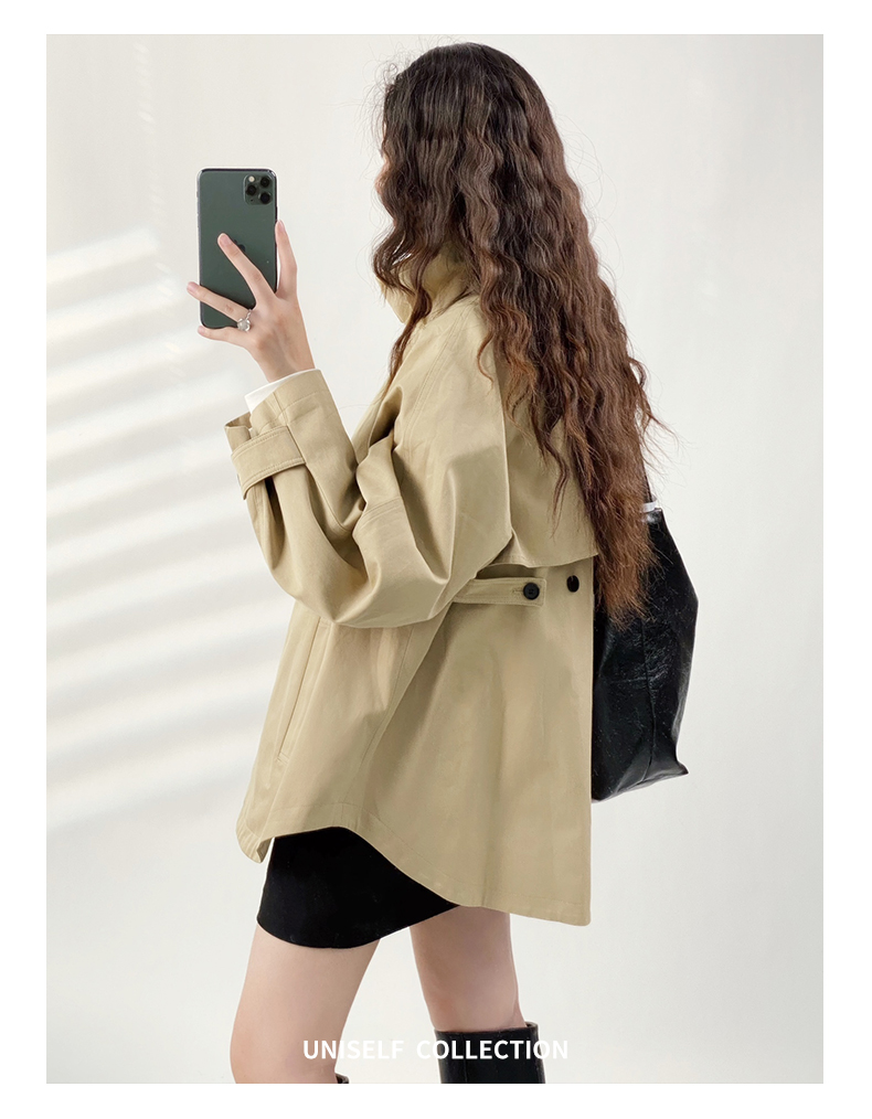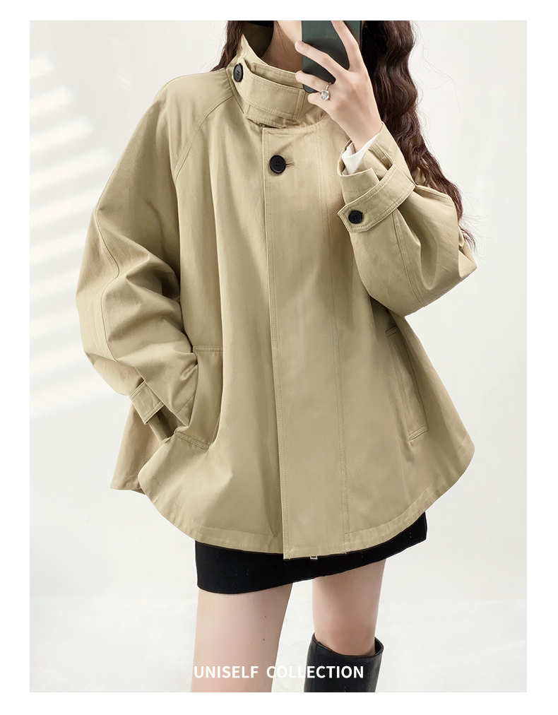 YX【定制17天】斗篷式A字风衣插肩袖外套女2023秋季新款小个子复古时尚短款上衣