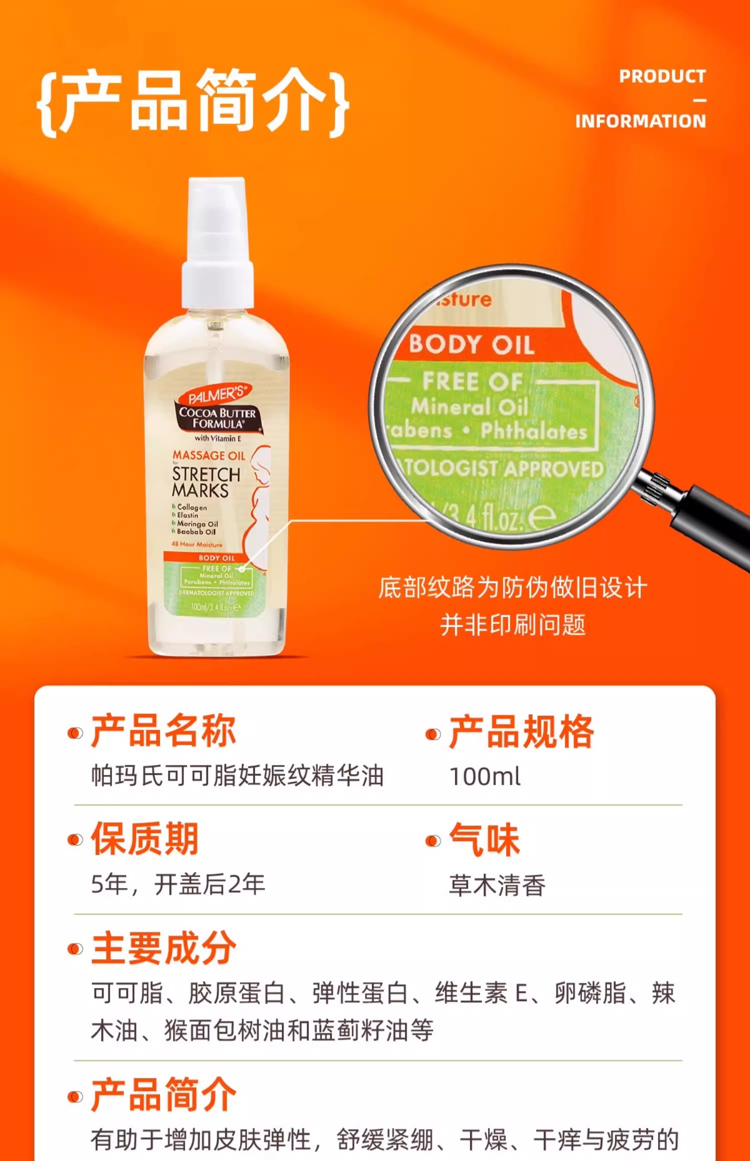 【保税仓】帕玛氏妊娠纹护理精华按摩油100ml