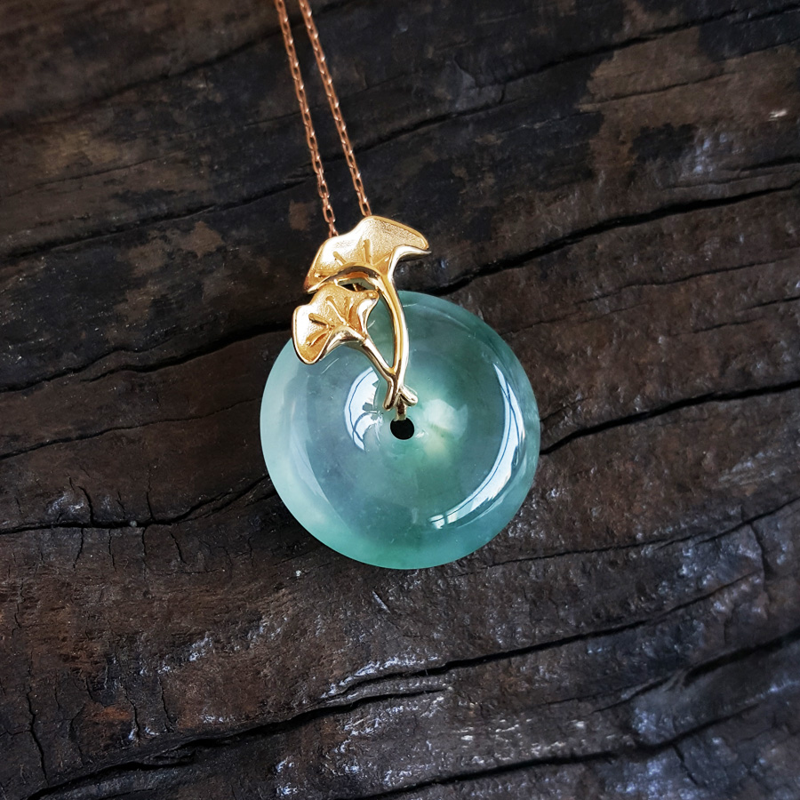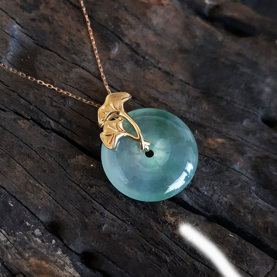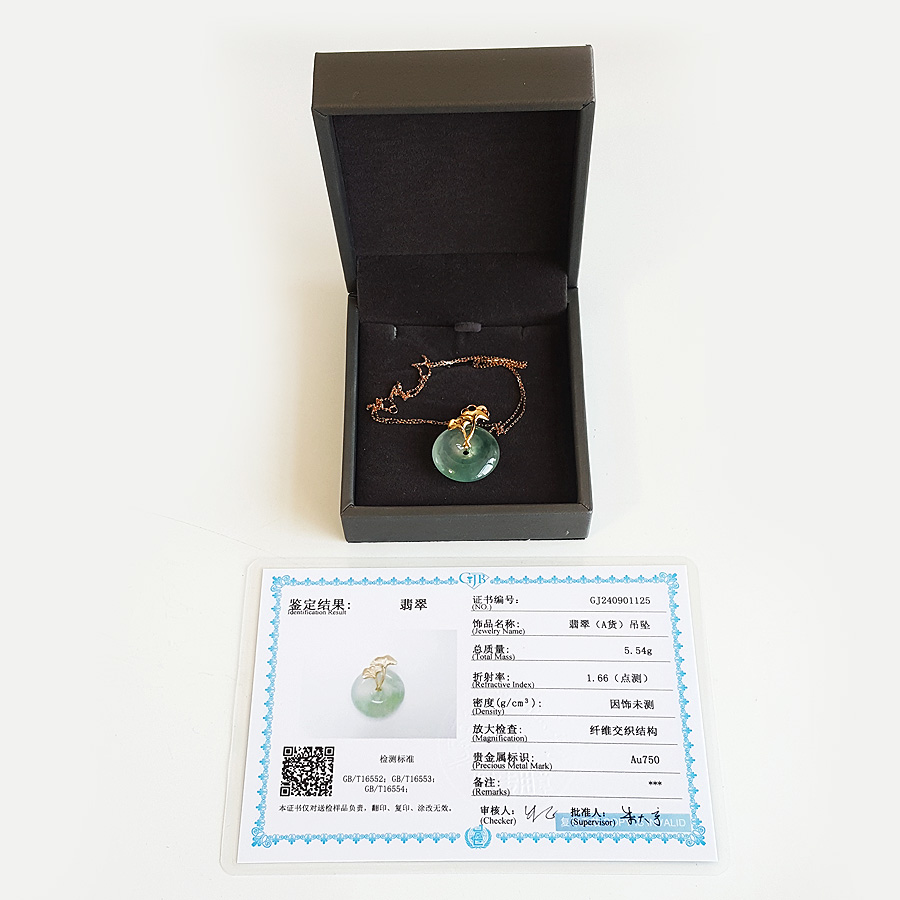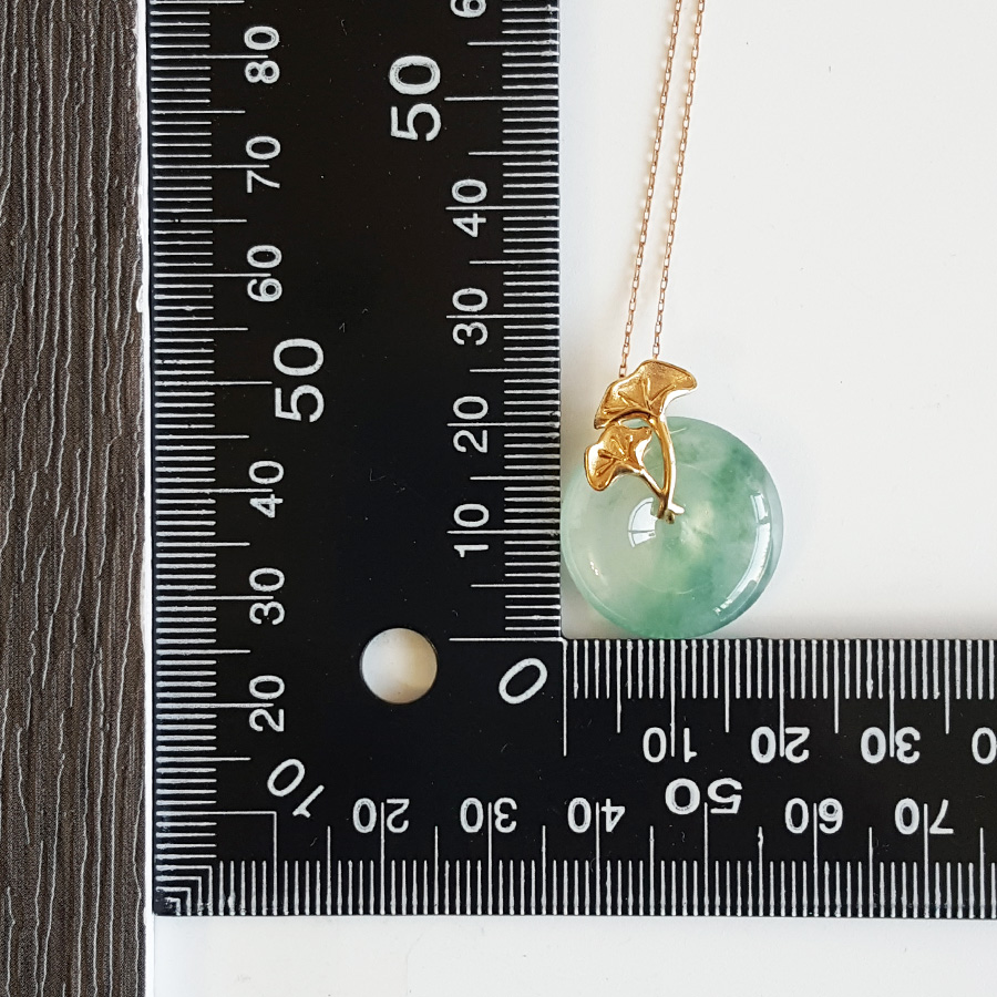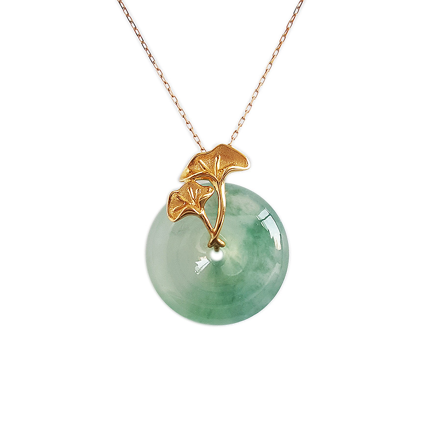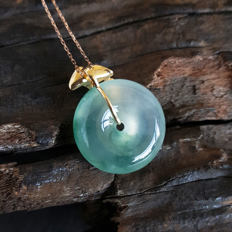 名称 | AU750精品黄金镶天然冰种飘花平安扣翡翠(吉祥、如意)吊坠项链 |