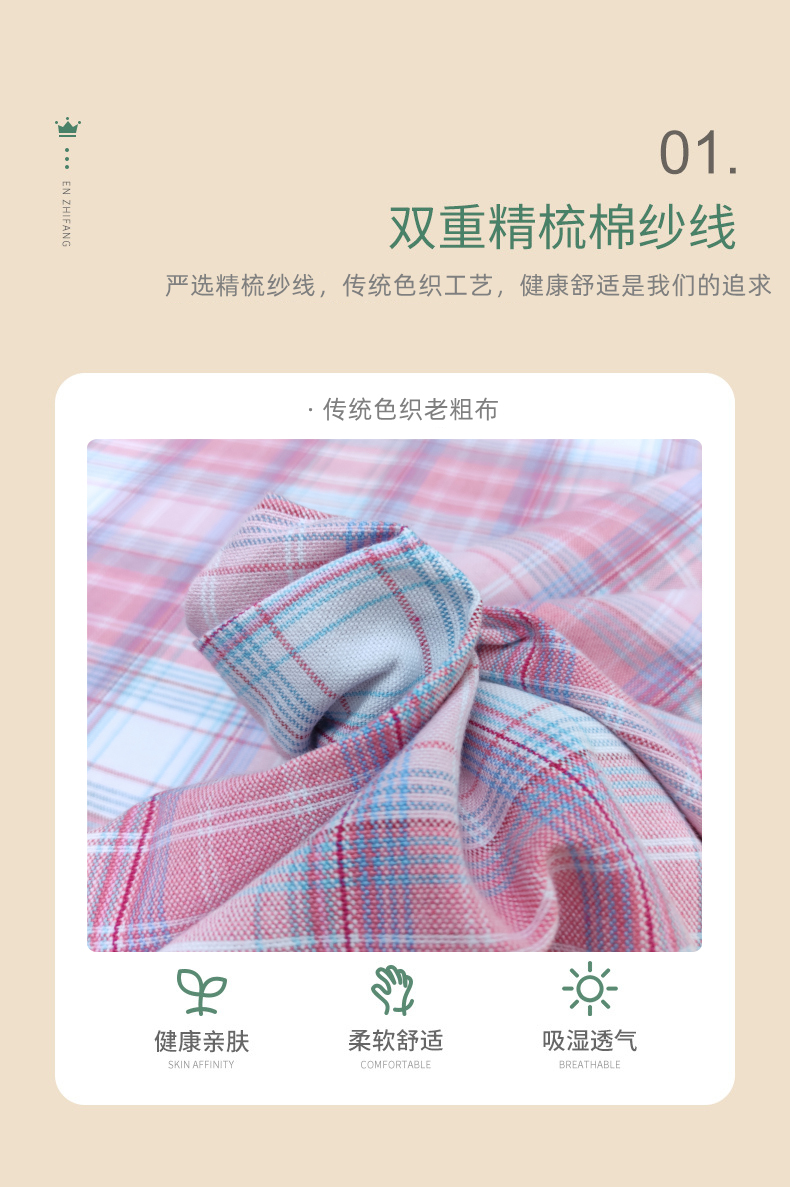 鲁锦老粗布凉席床单三件套 | 简约条纹格子 绵软舒适 透气吸汗 质地柔软 凉而不冰 四季可用 多色可选
